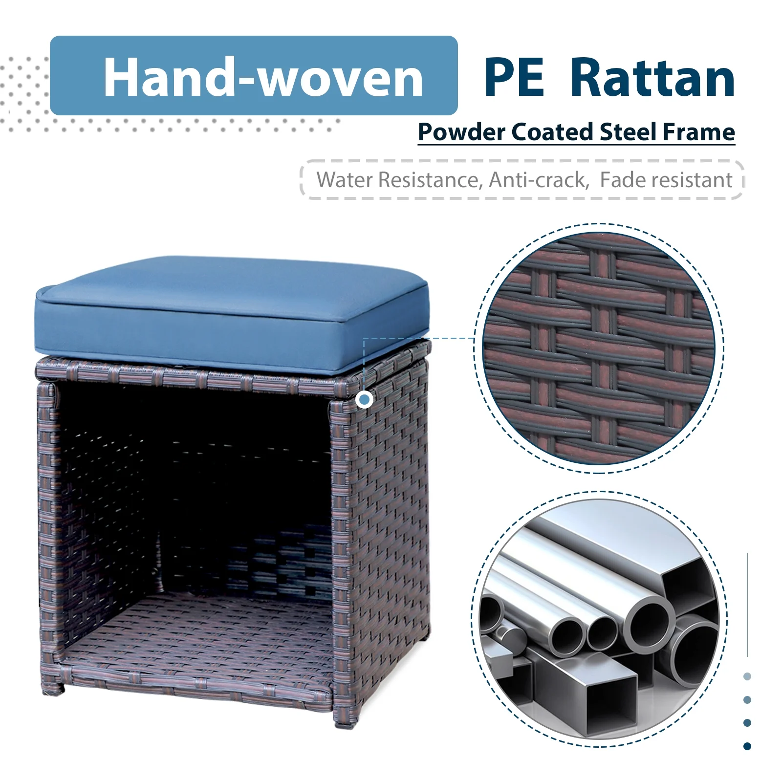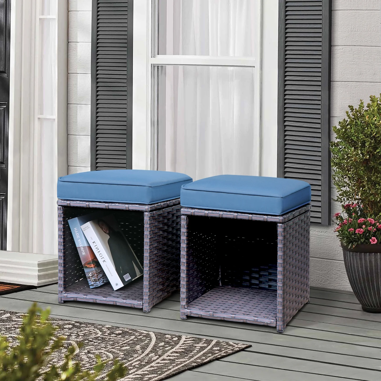 Dextrus 5-Piece Outdoor Wicker Furniture Set, 2 Outdoor Patio Chairs With 2 Ottomans and Coffee Table