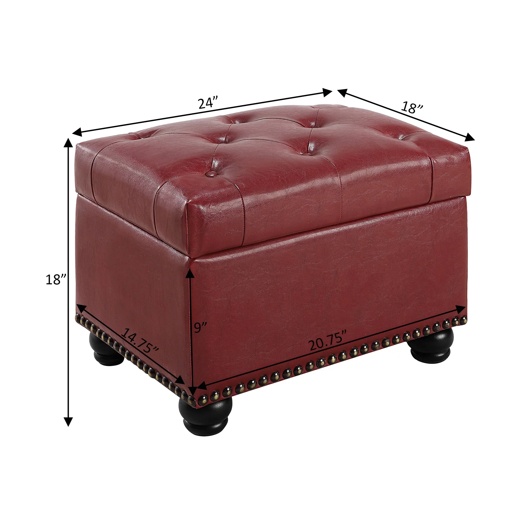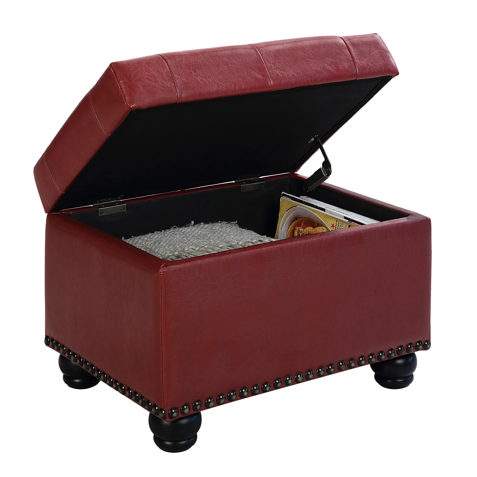 Convenience Concepts Designs4Comfort 5th Avenue Storage Ottoman, Burgundy Faux Leather