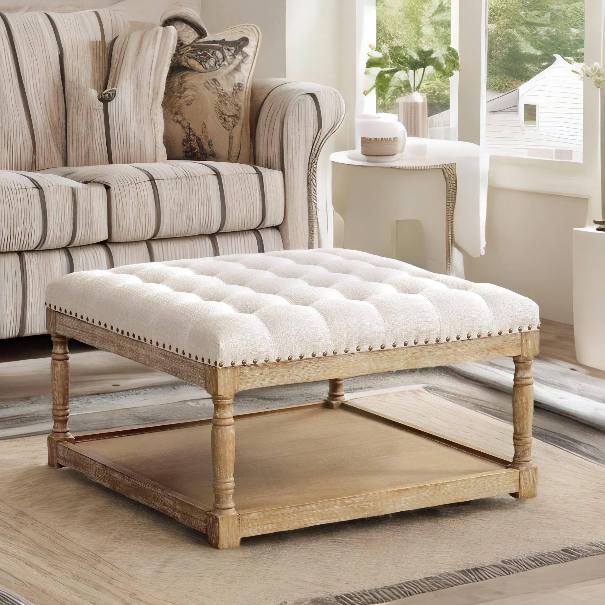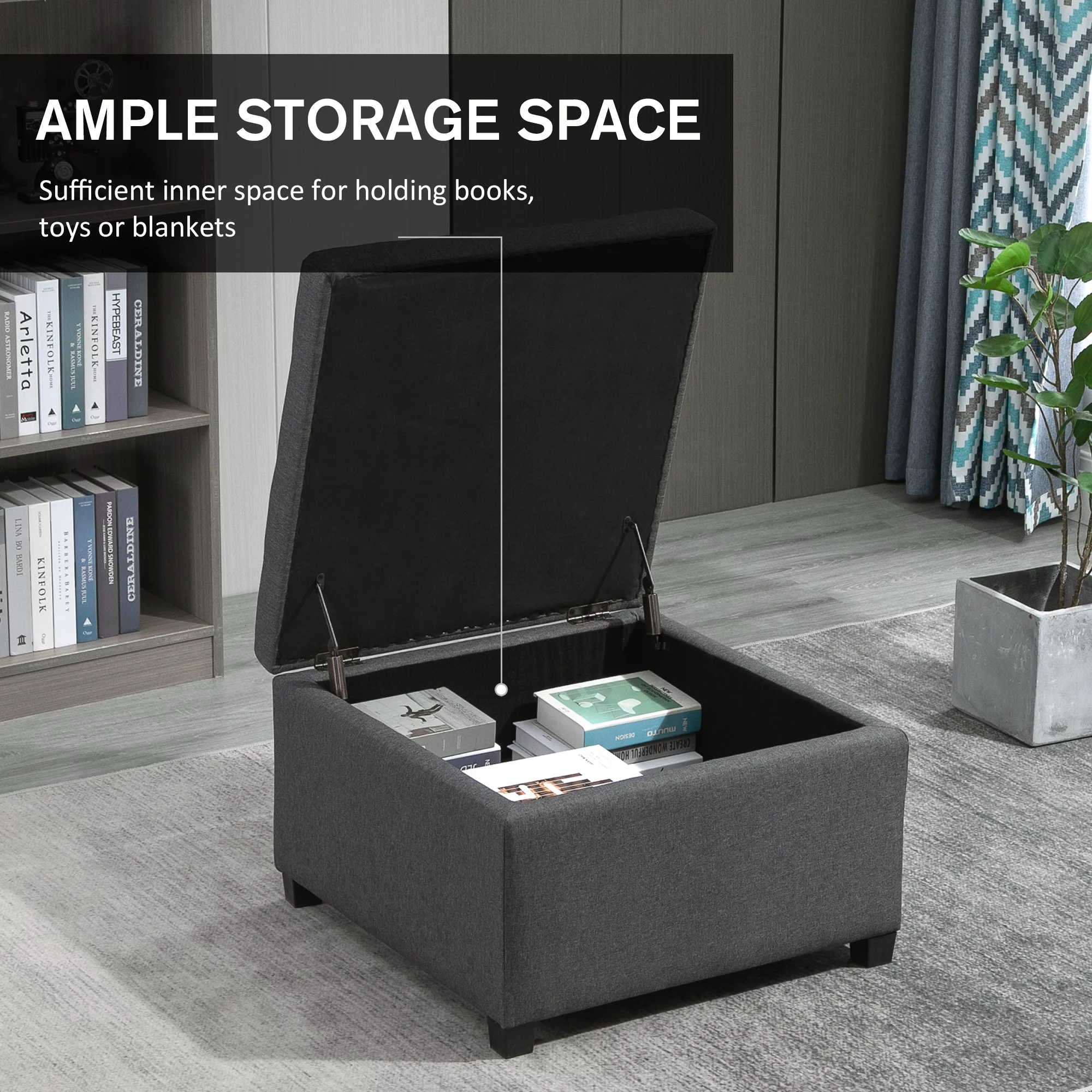 HOMCOM Fabric Tufted Storage Ottoman w/Flip Top Seat Lid and Metal Hinge