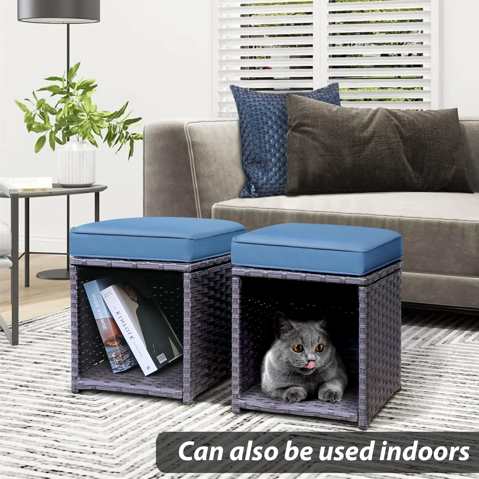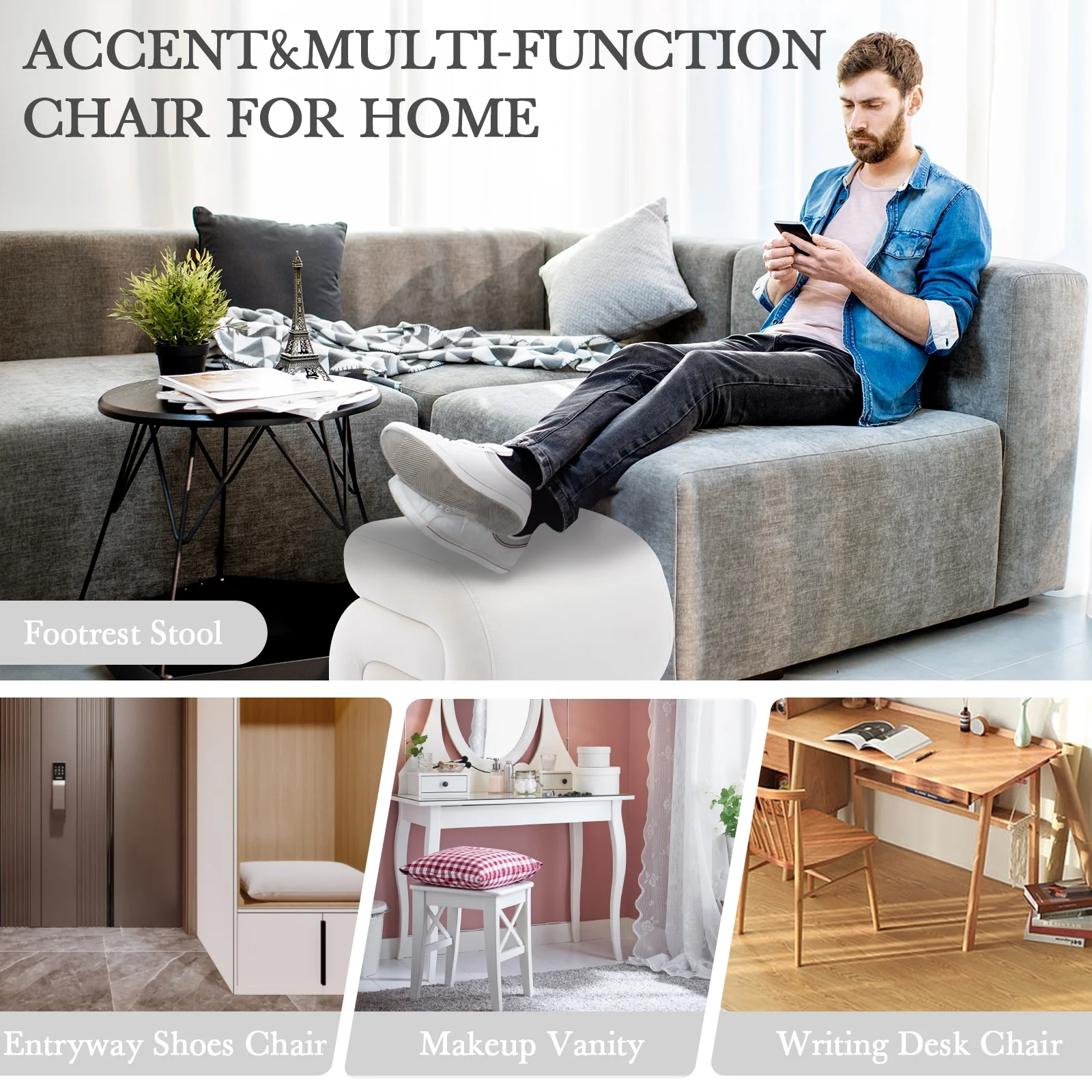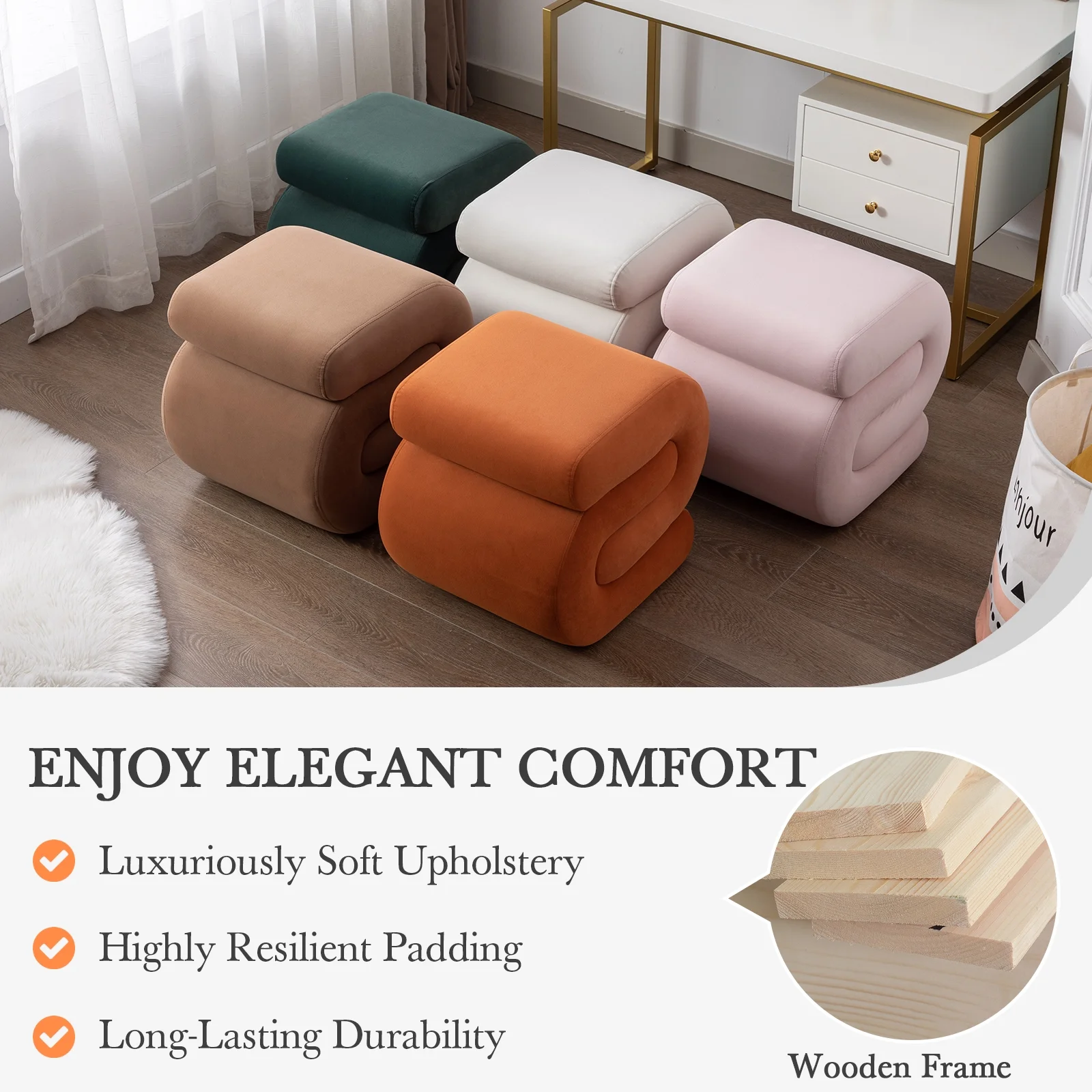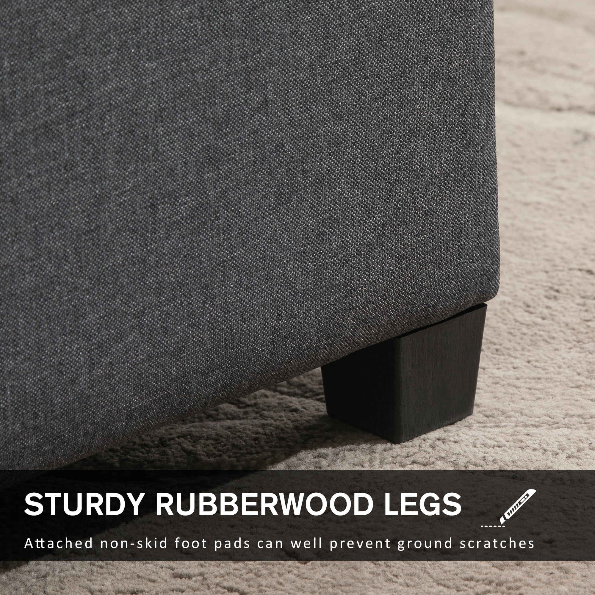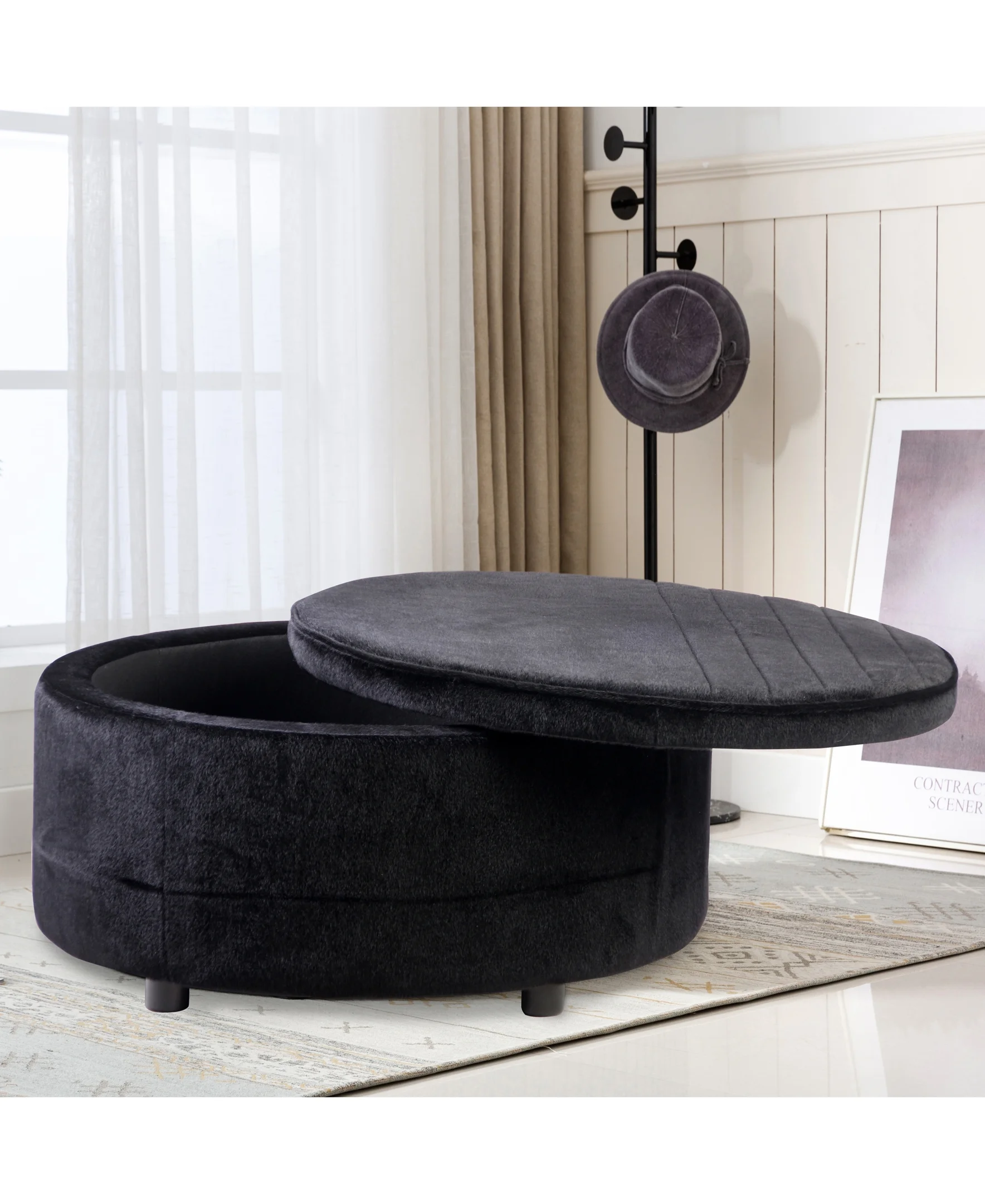 Hofitlead Storage Bench , Velure Rolled Arm Ottoman Storage Sofa , with 2 Ottoman Footstool,Black