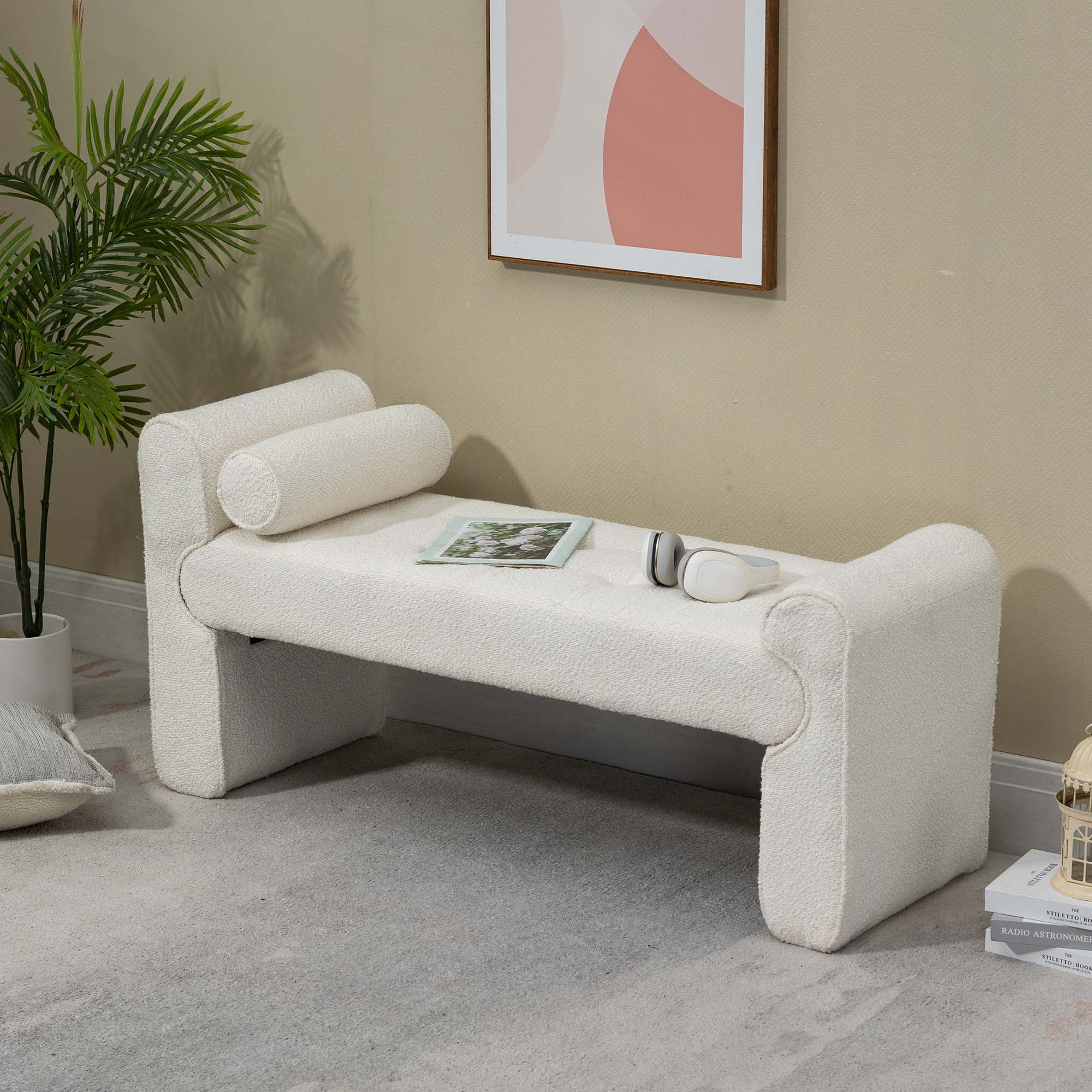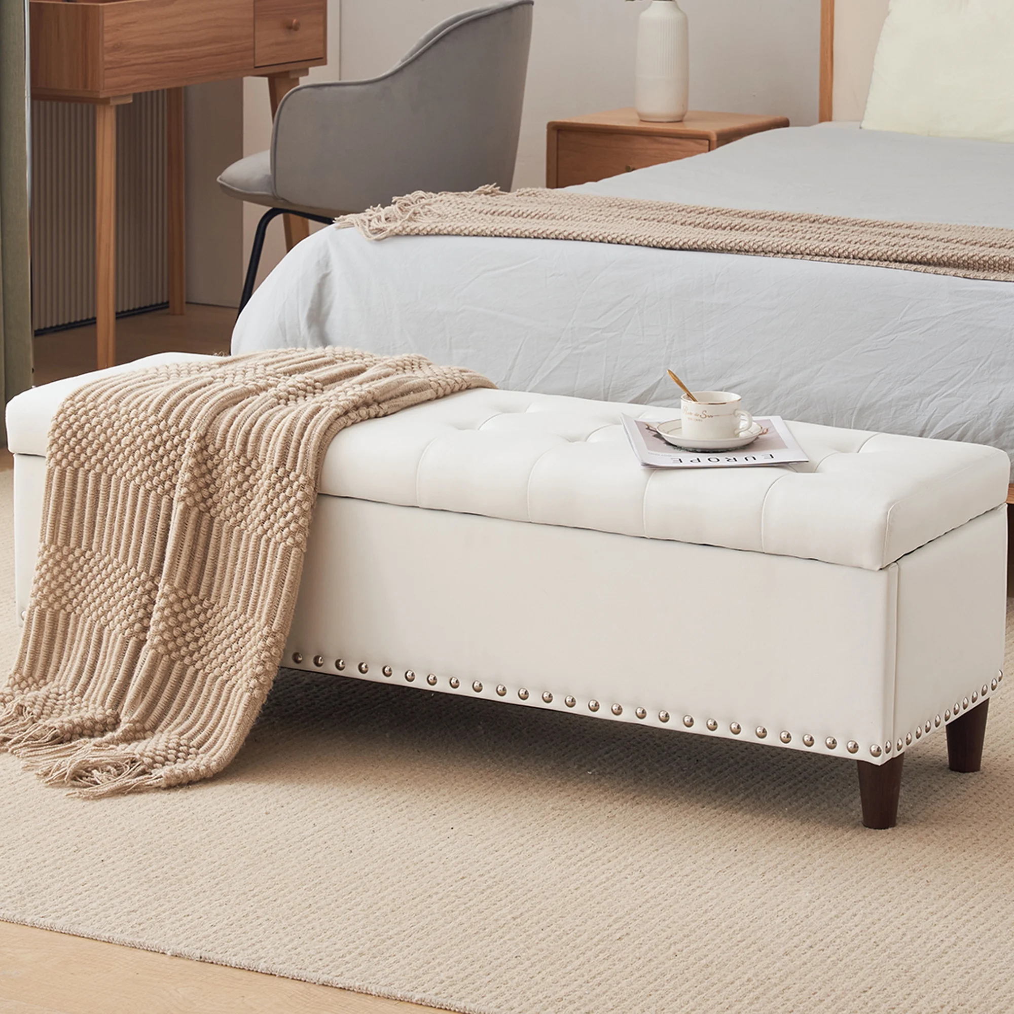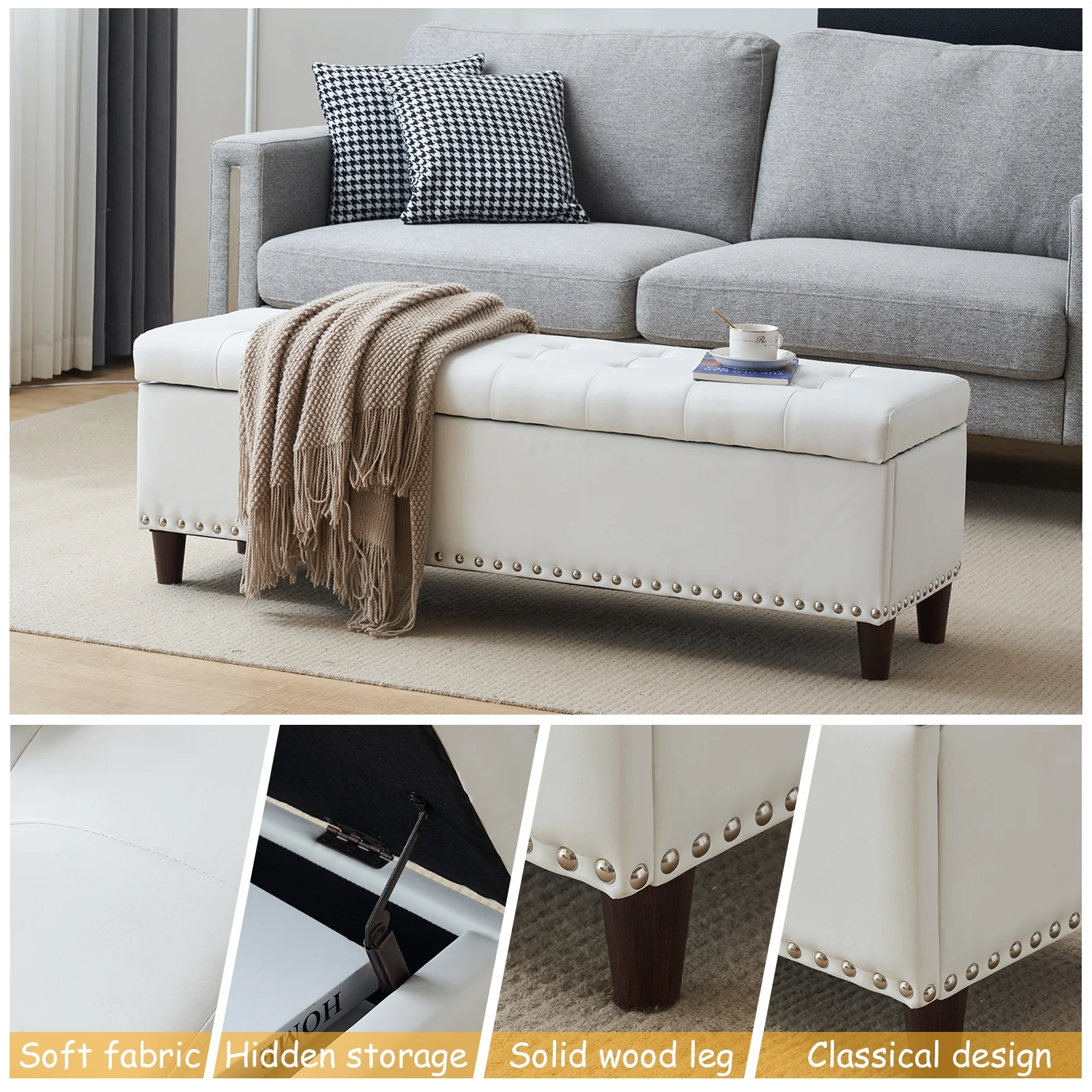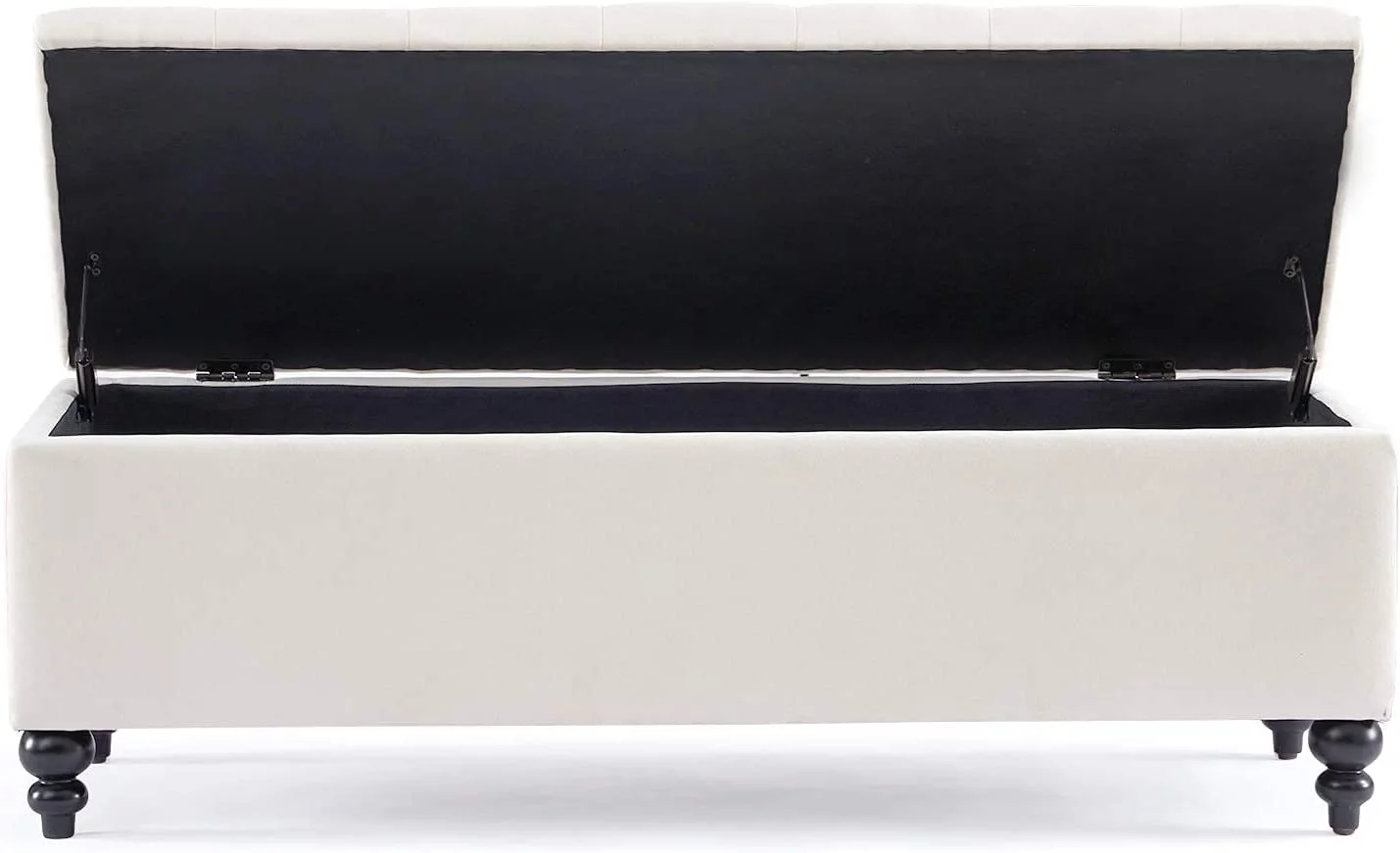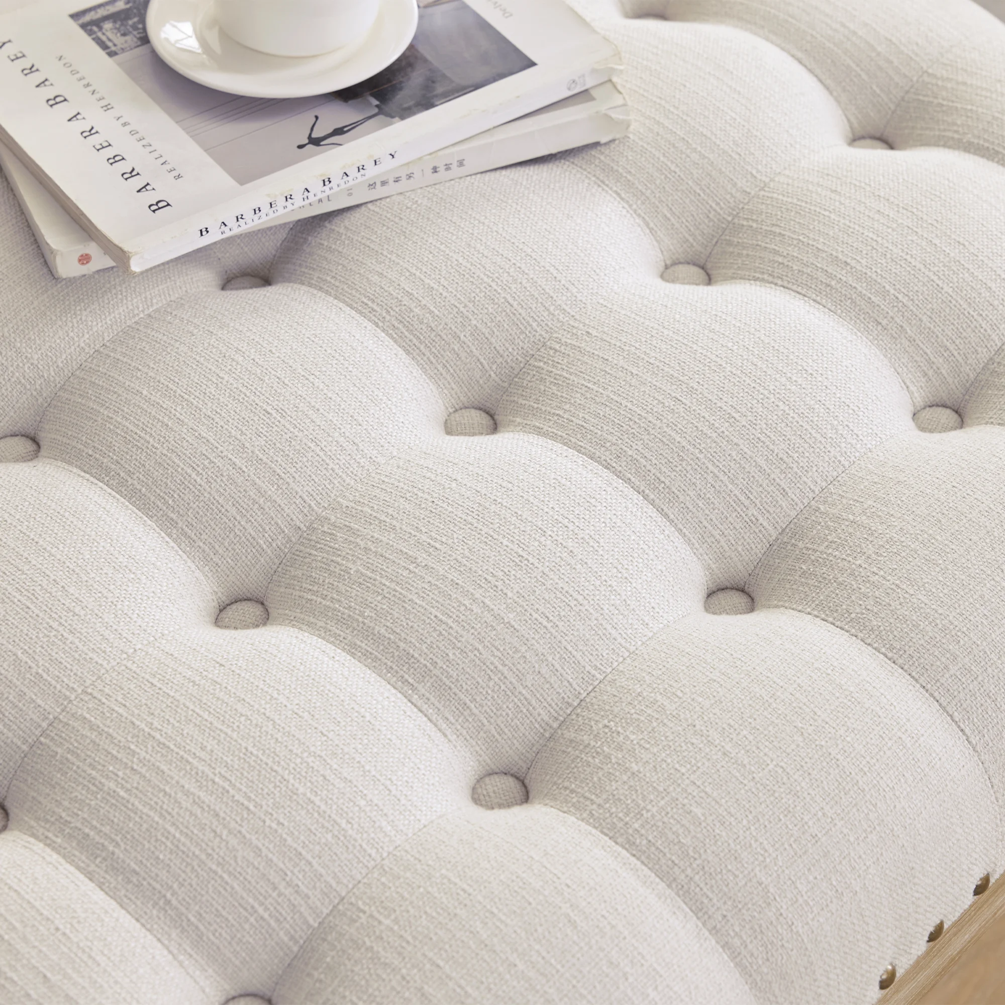 Homebeez 43.5" Half Moon Storage Ottoman Bench,Lift Top Button Bedroom Bench for Entryway Living Room,Beige