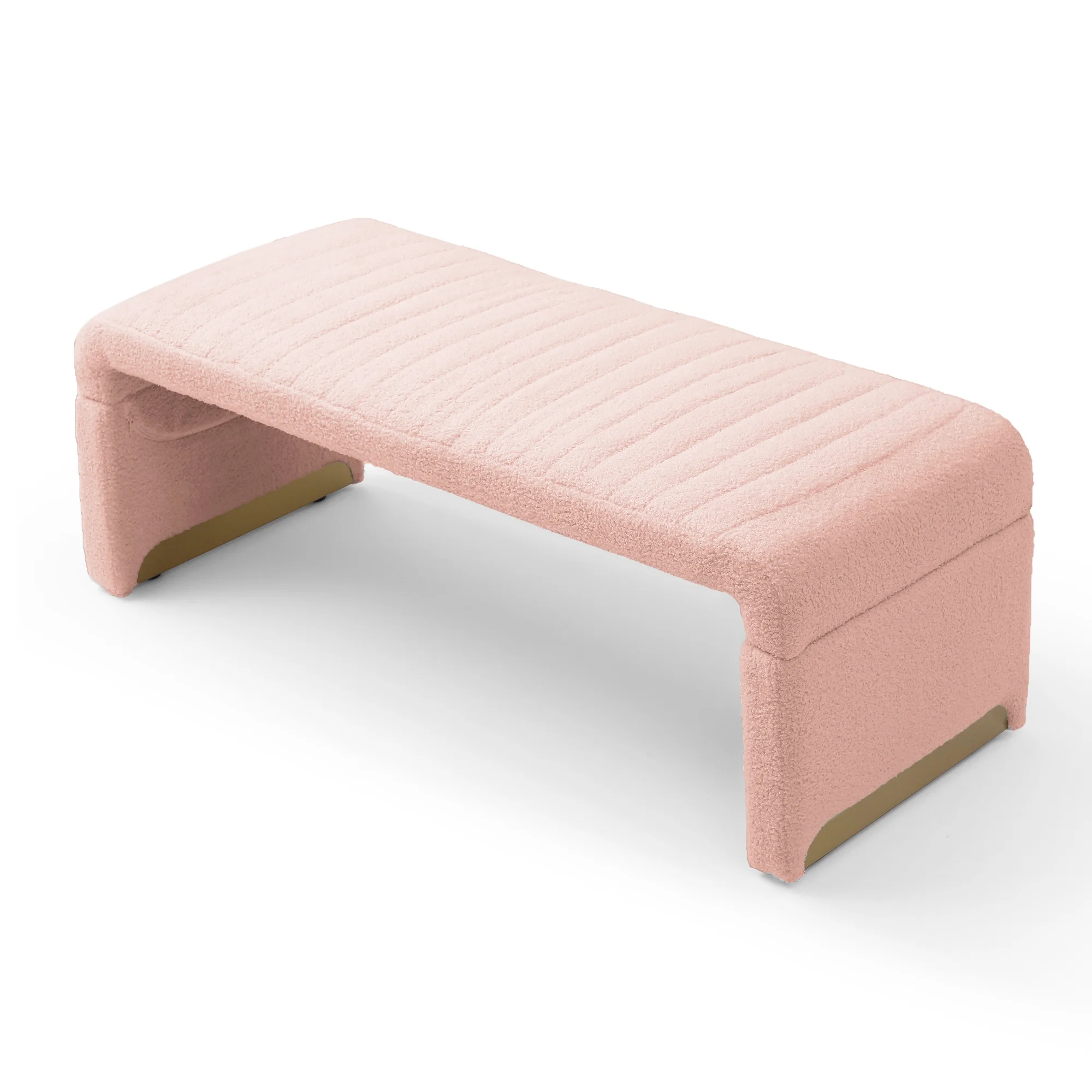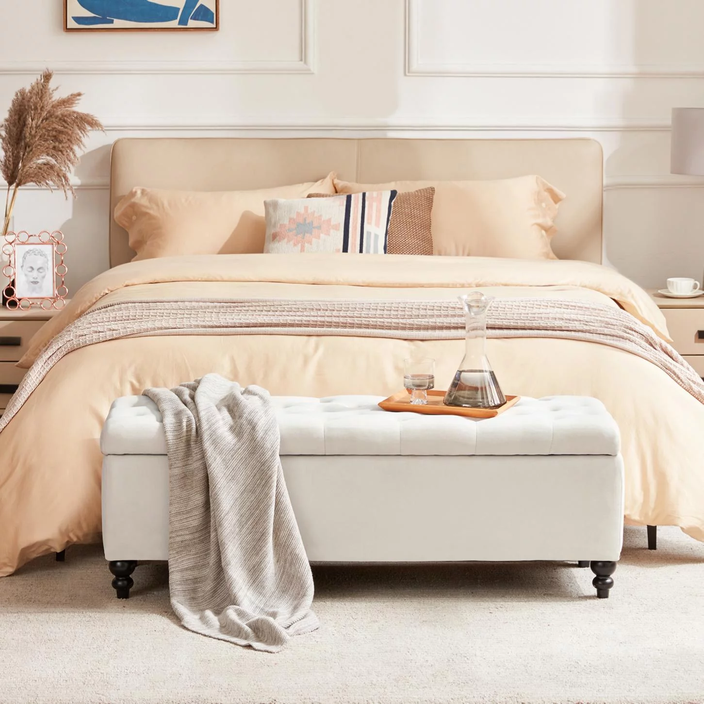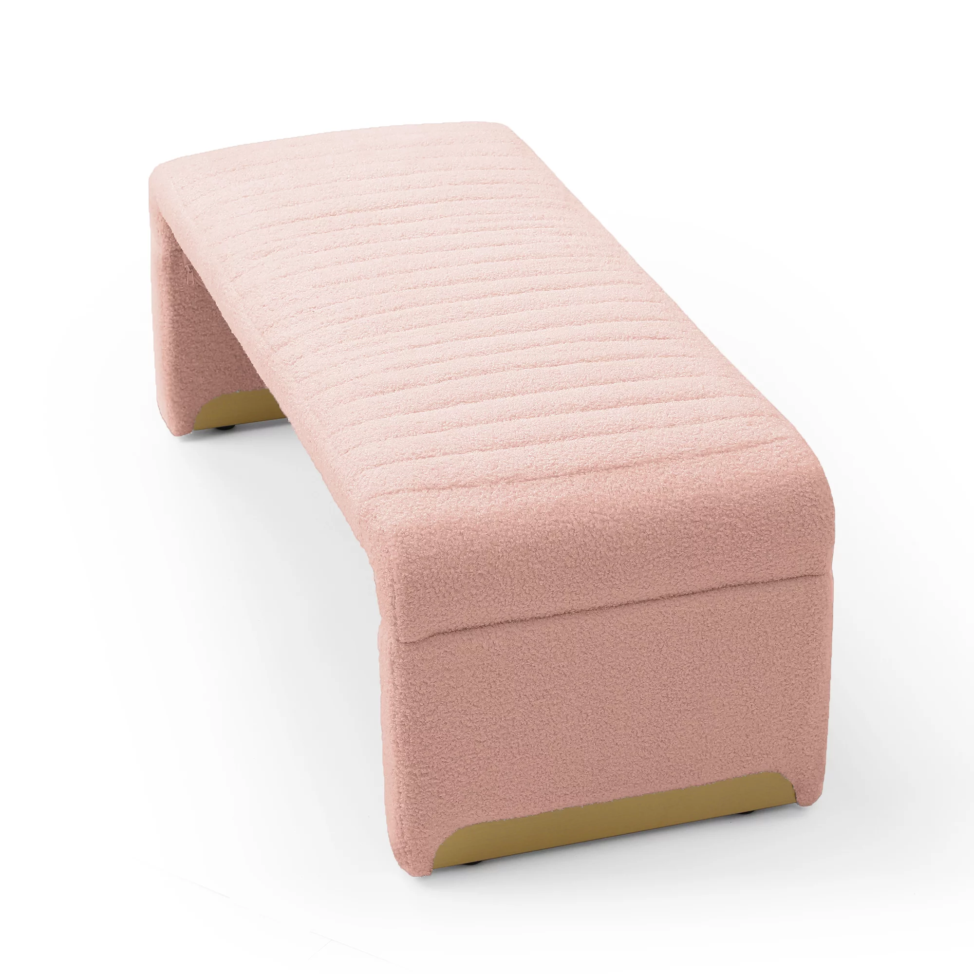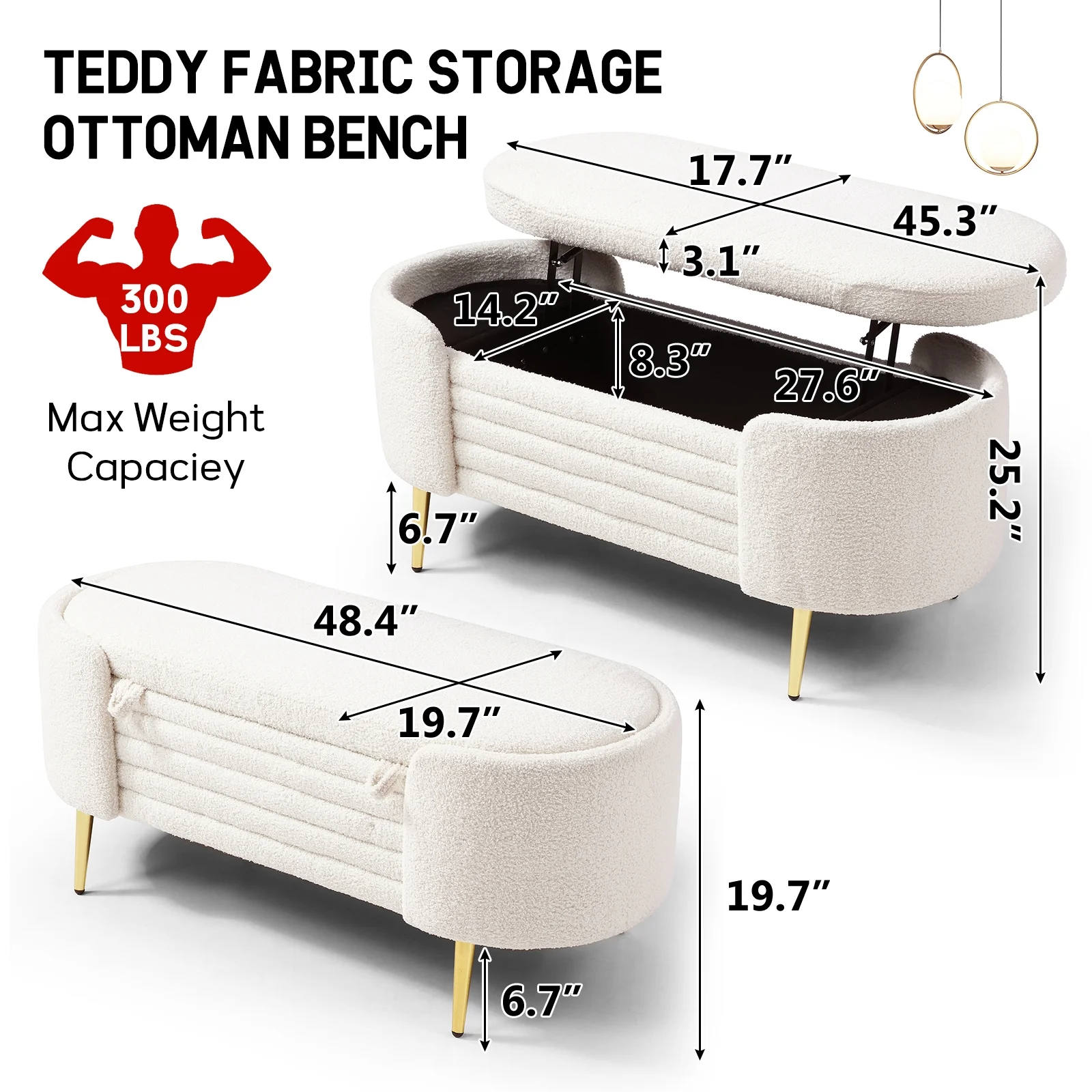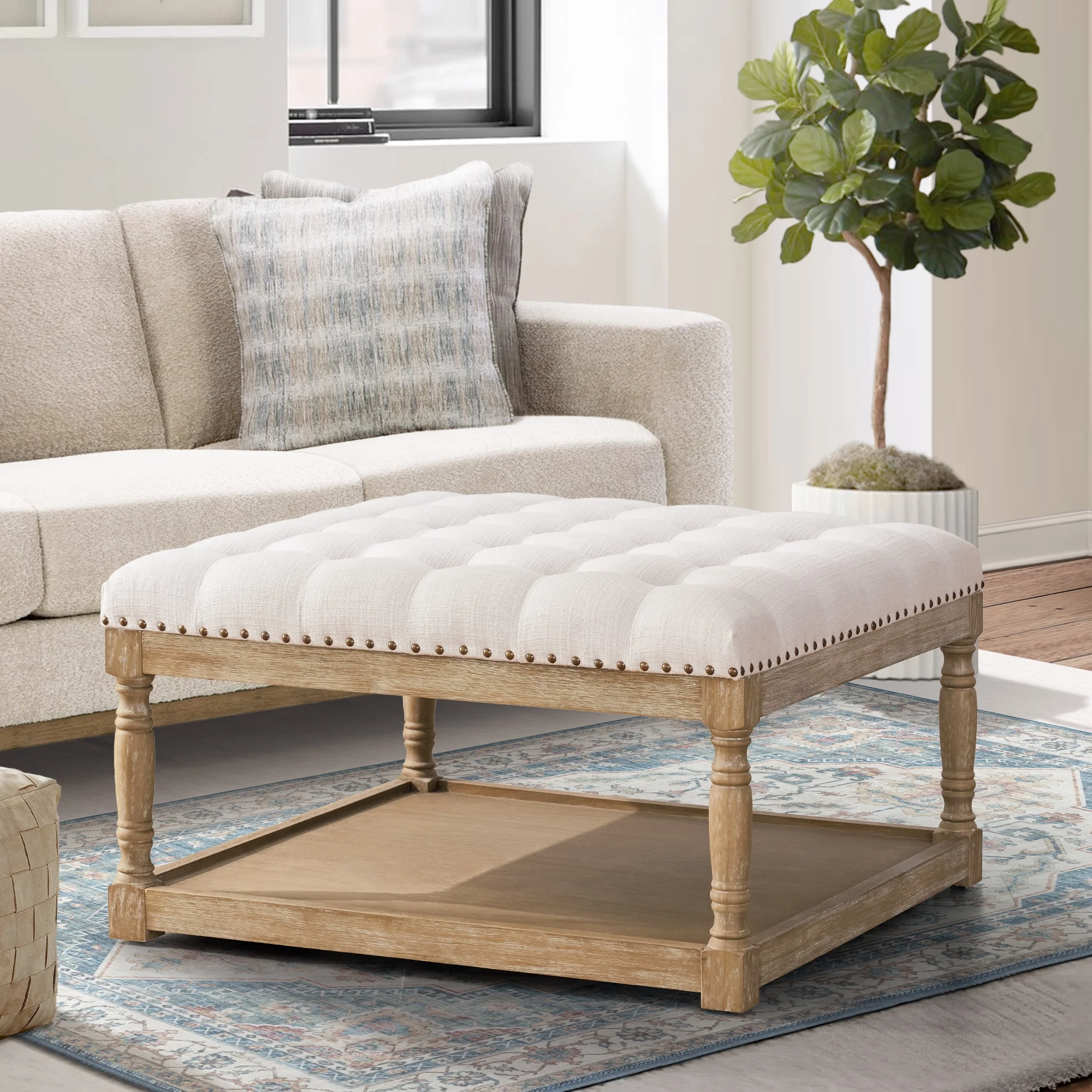 Homebeez 43.5" Half Moon Storage Ottoman Bench,Lift Top Button Bedroom Bench for Entryway Living Room,Beige