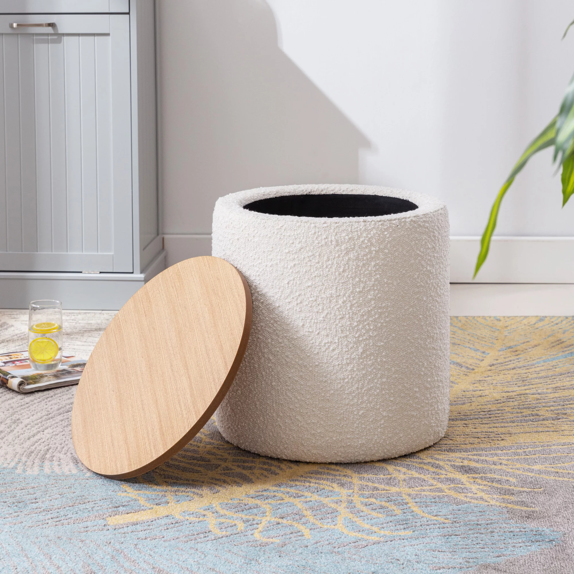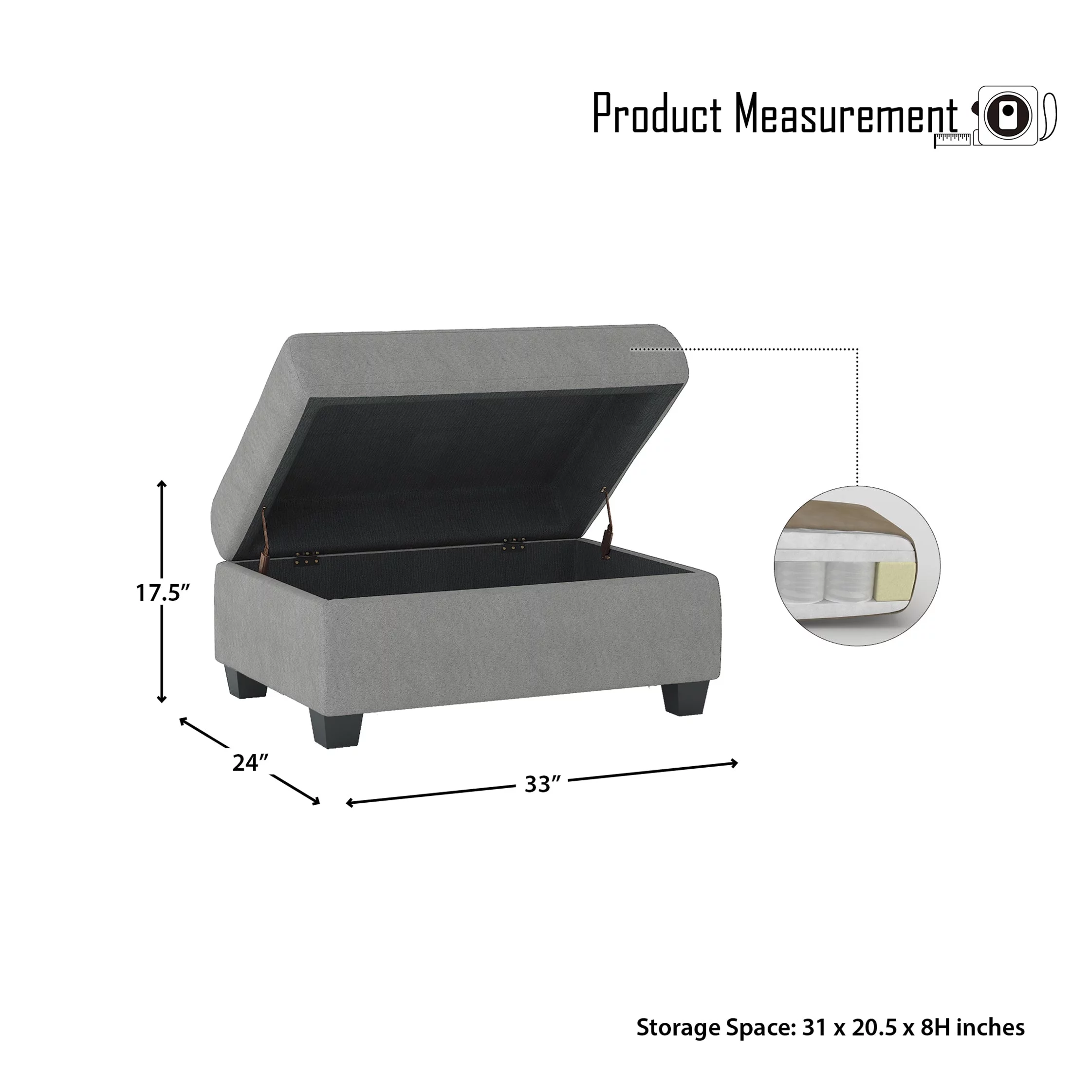 OakvillePark Granby Microfiber Fabric Upholstered Storage Ottoman, Light Gray