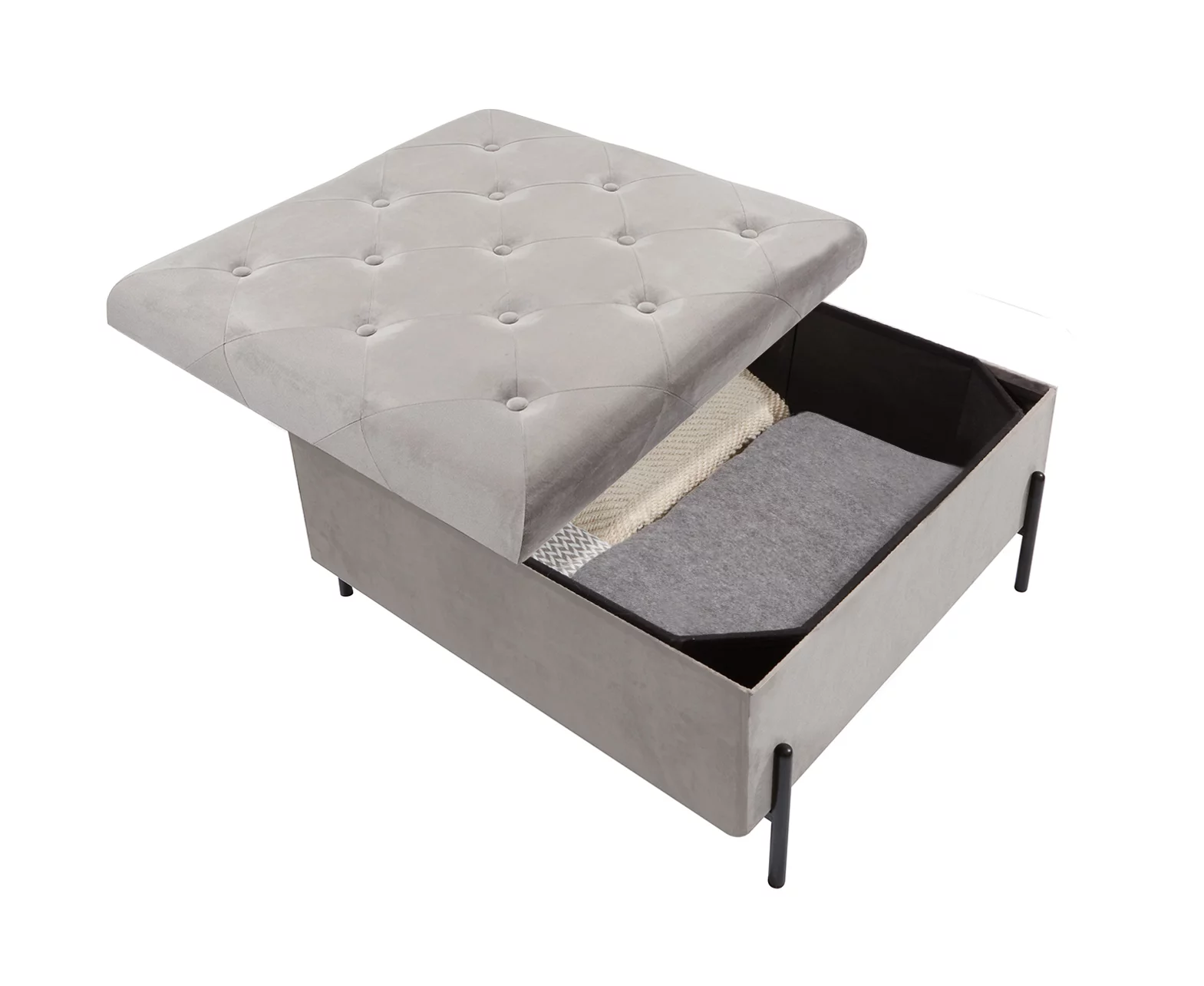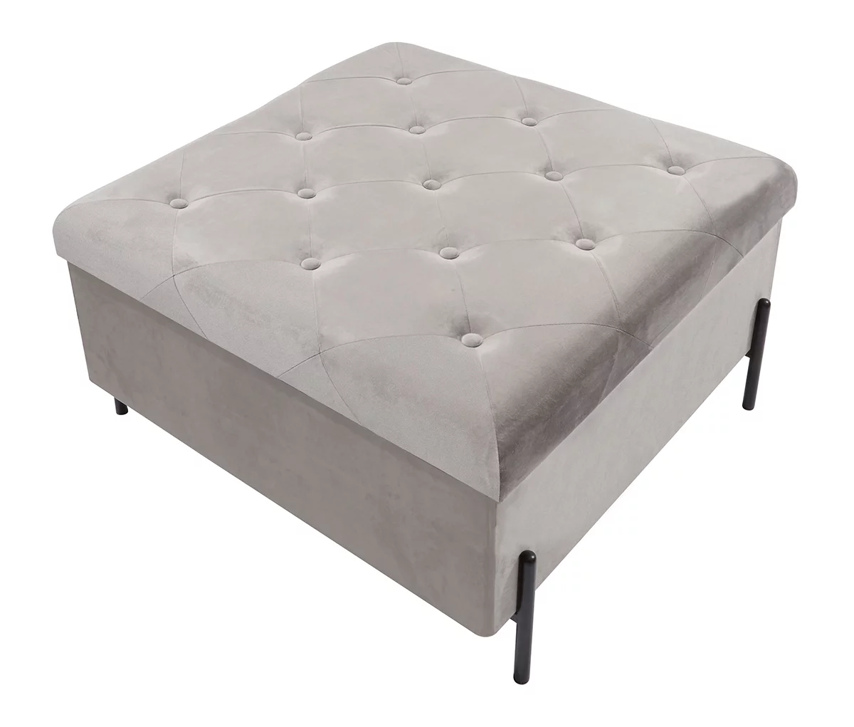 Fresh Home Elements - Large Storage Ottoman with Metal Legs; Grey Velvet Upholstery