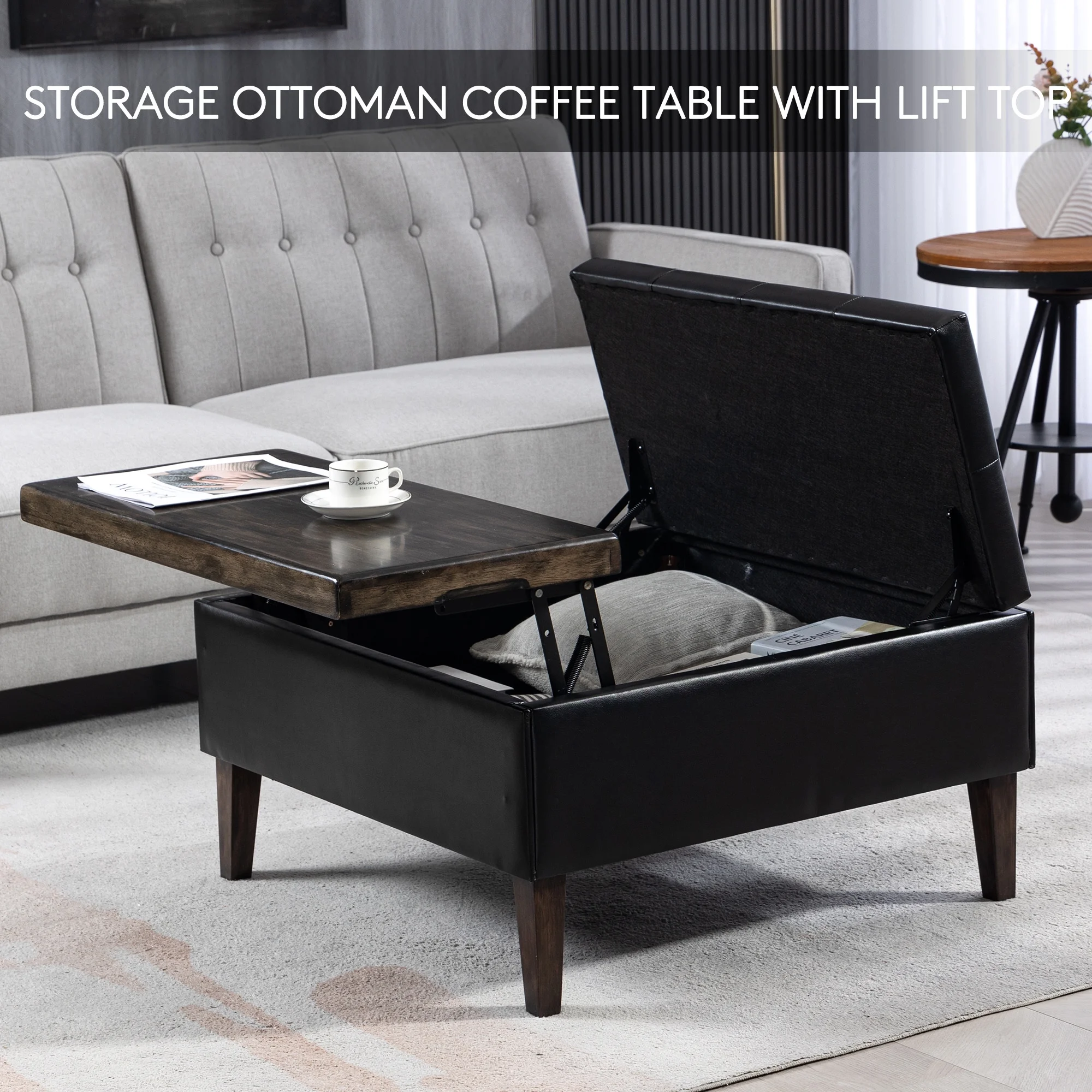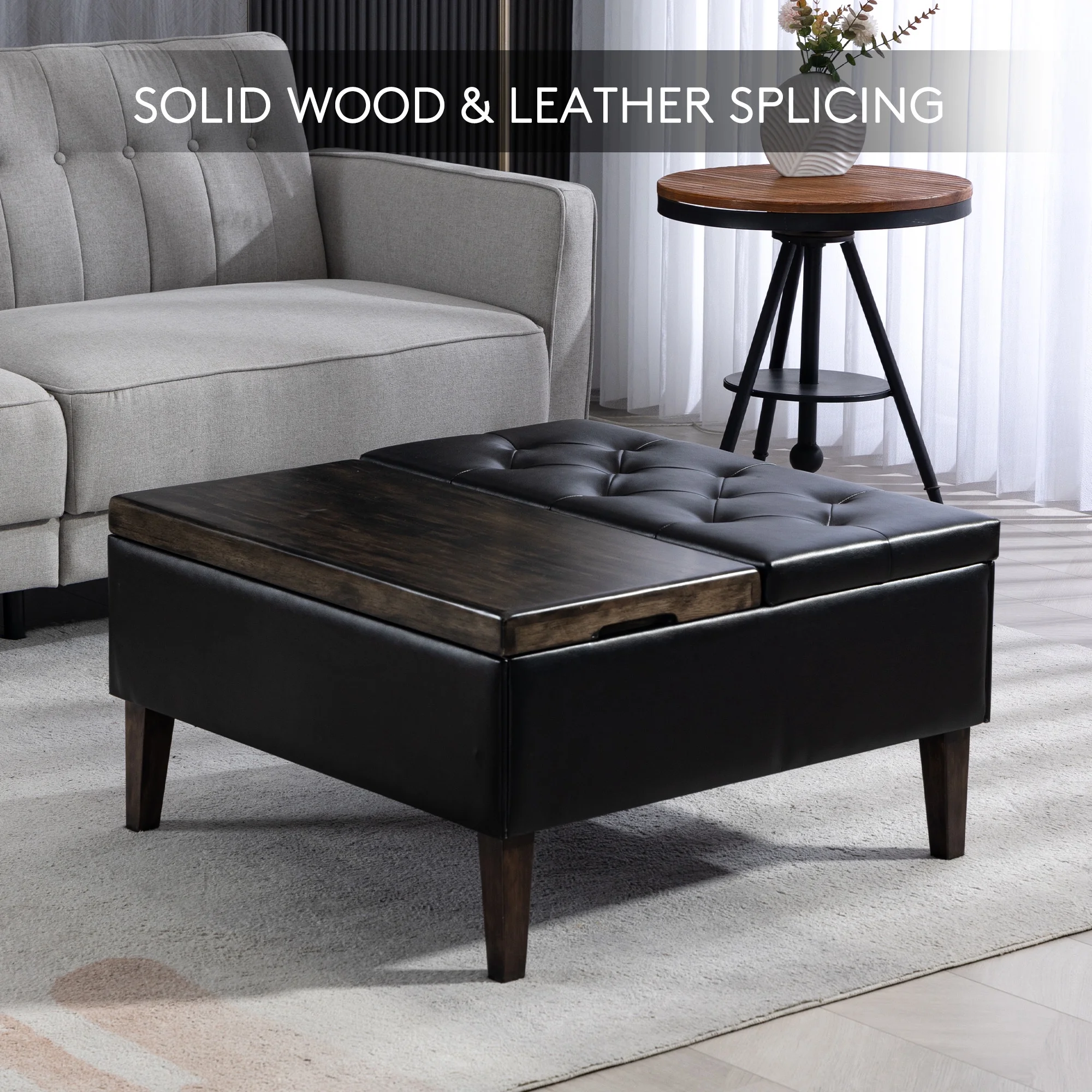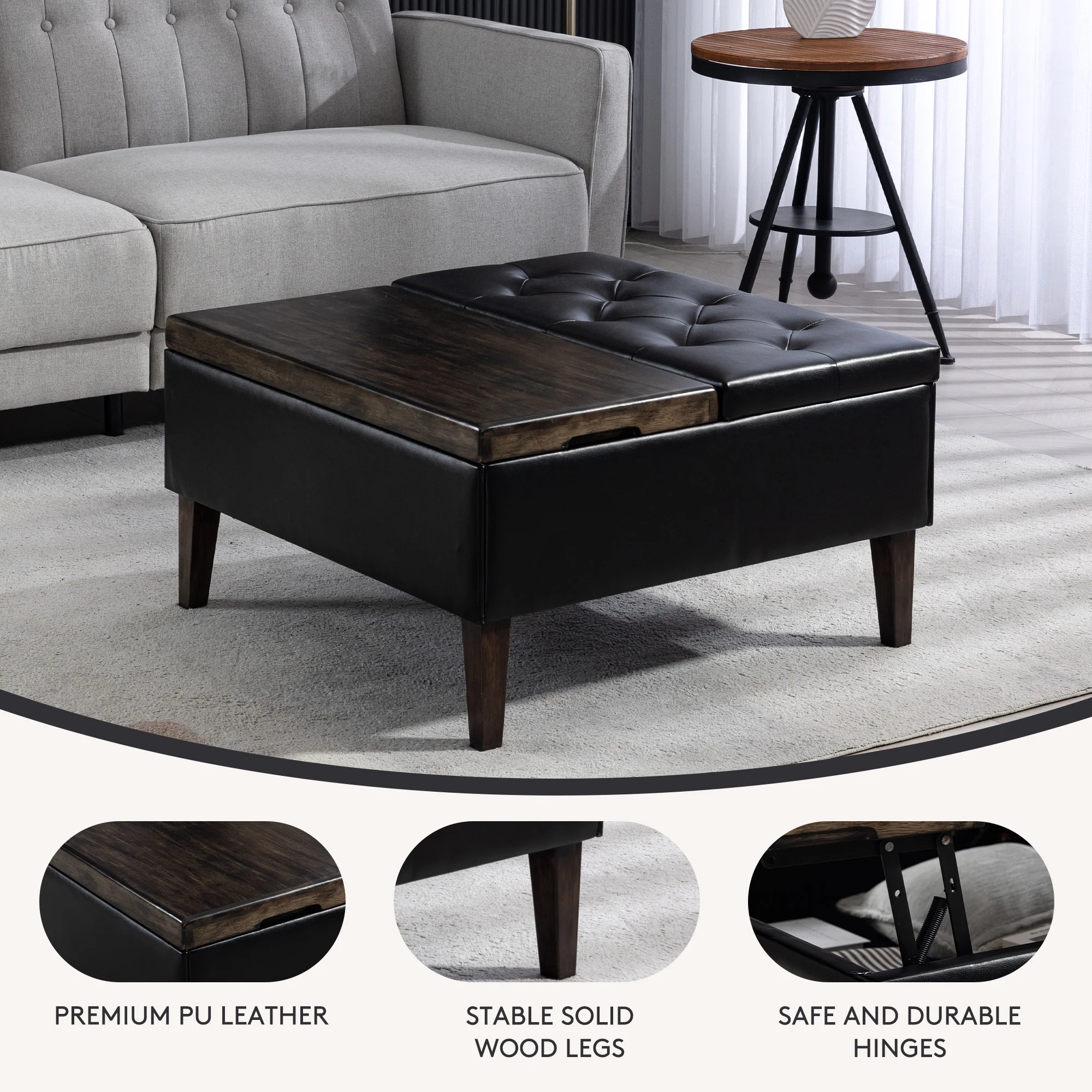 SERWALL Square Storage Ottoman, 31.5" Large Ottoman Bench Lift Top Coffee Table for Bedroom Living Room, Black
