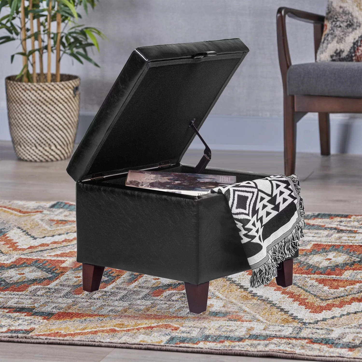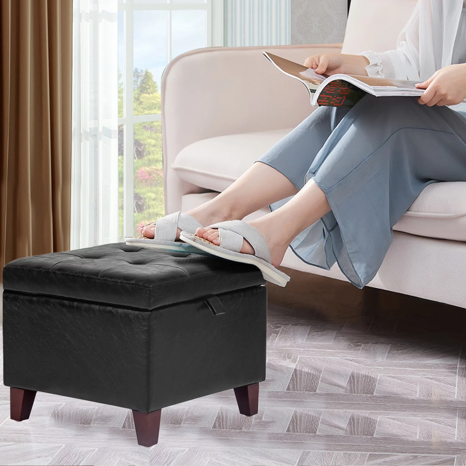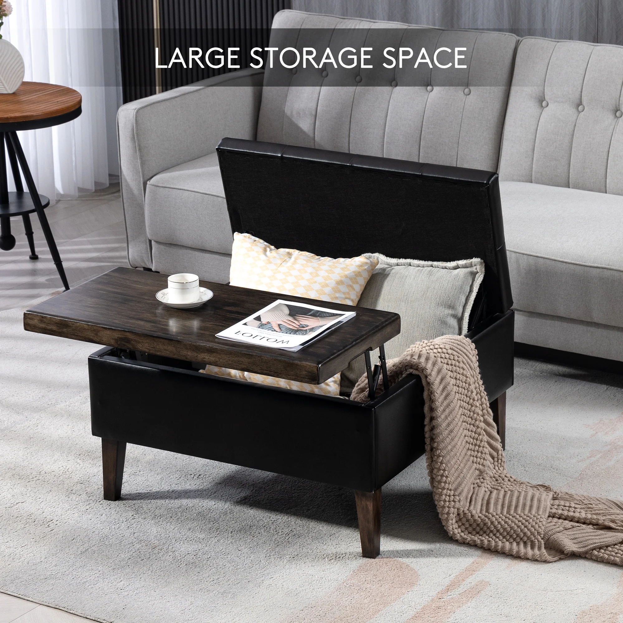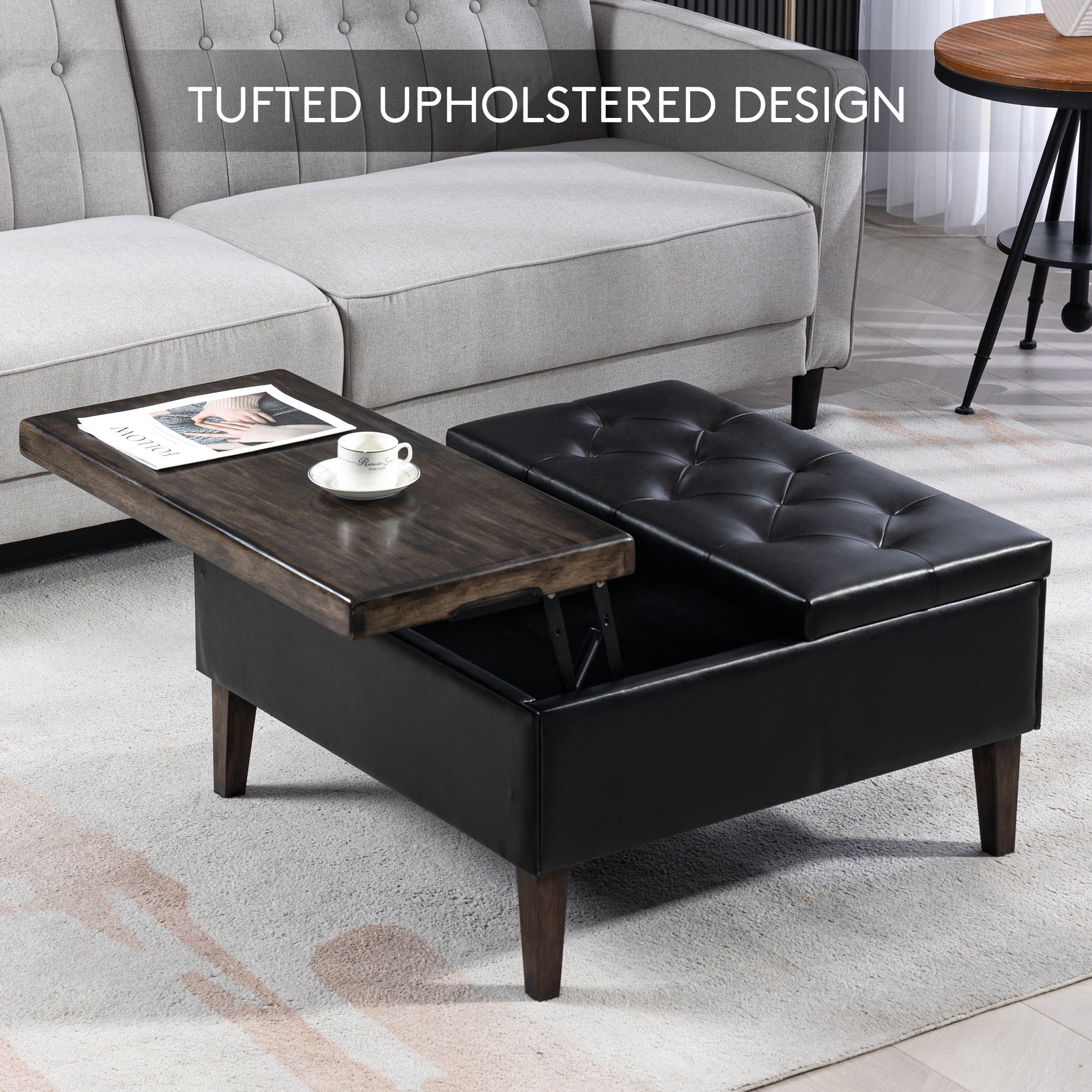 SERWALL Square Storage Ottoman, 31.5" Large Ottoman Bench Lift Top Coffee Table for Bedroom Living Room, Black