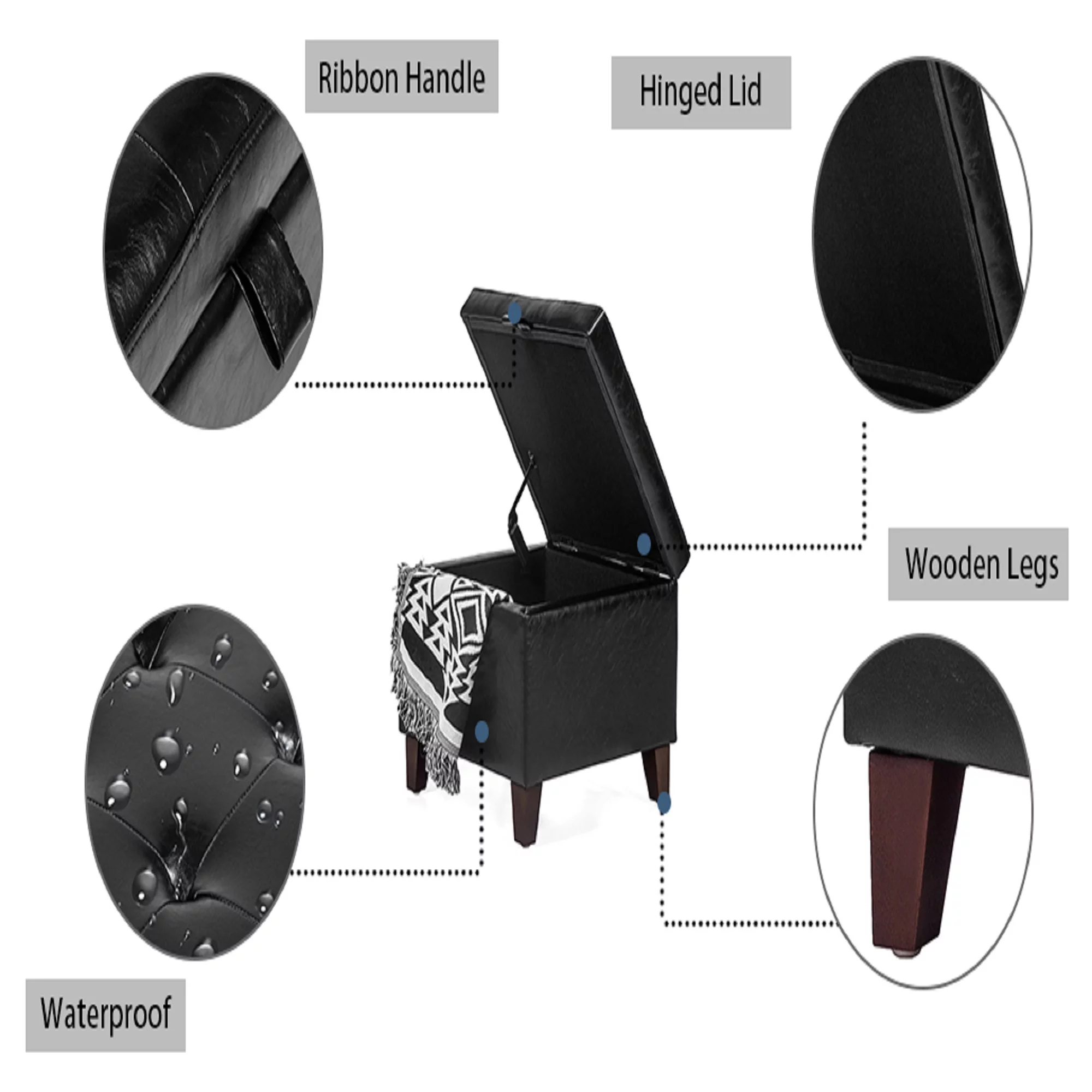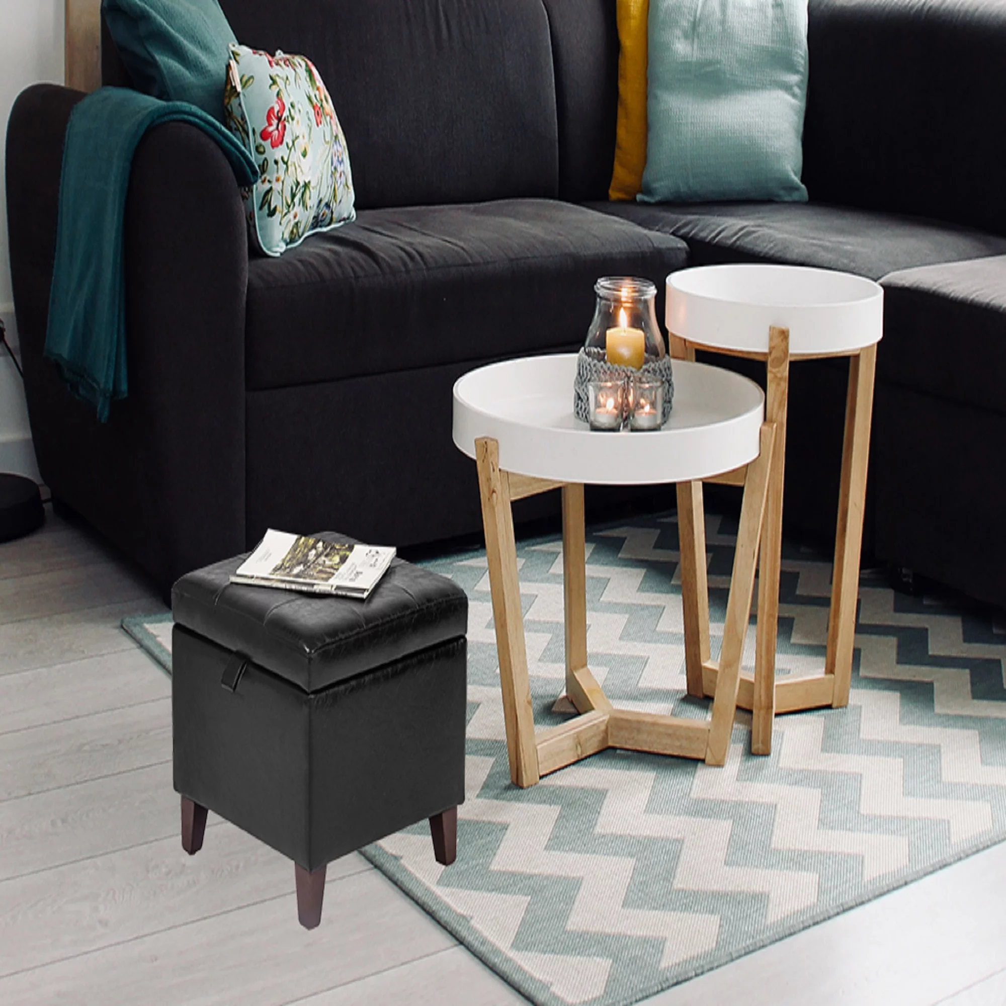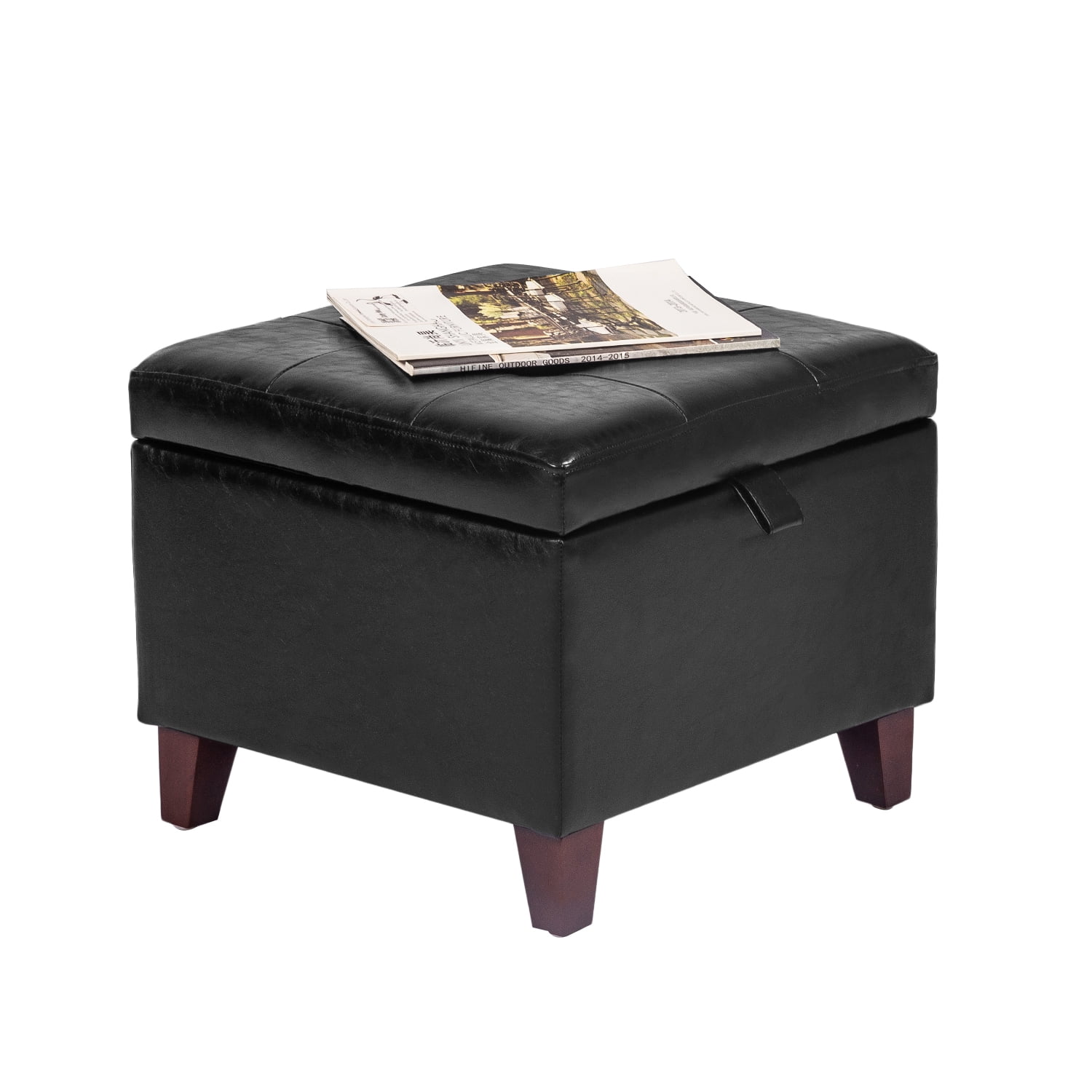 Homebeez Faux Leather Square Cube Storage Ottoman Foot Rest Stool Coffee Table Toy Chest,Black