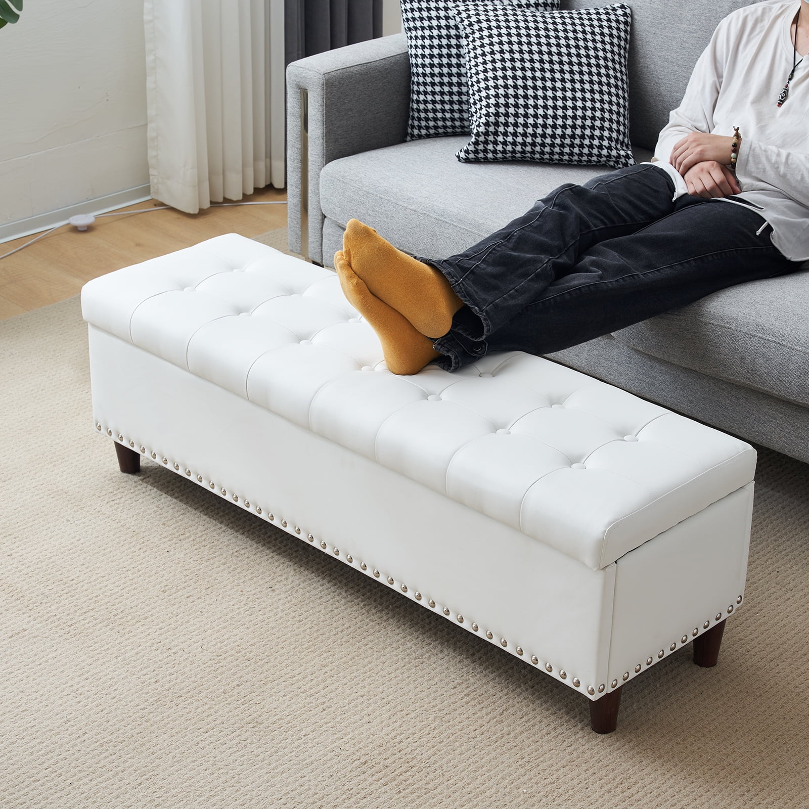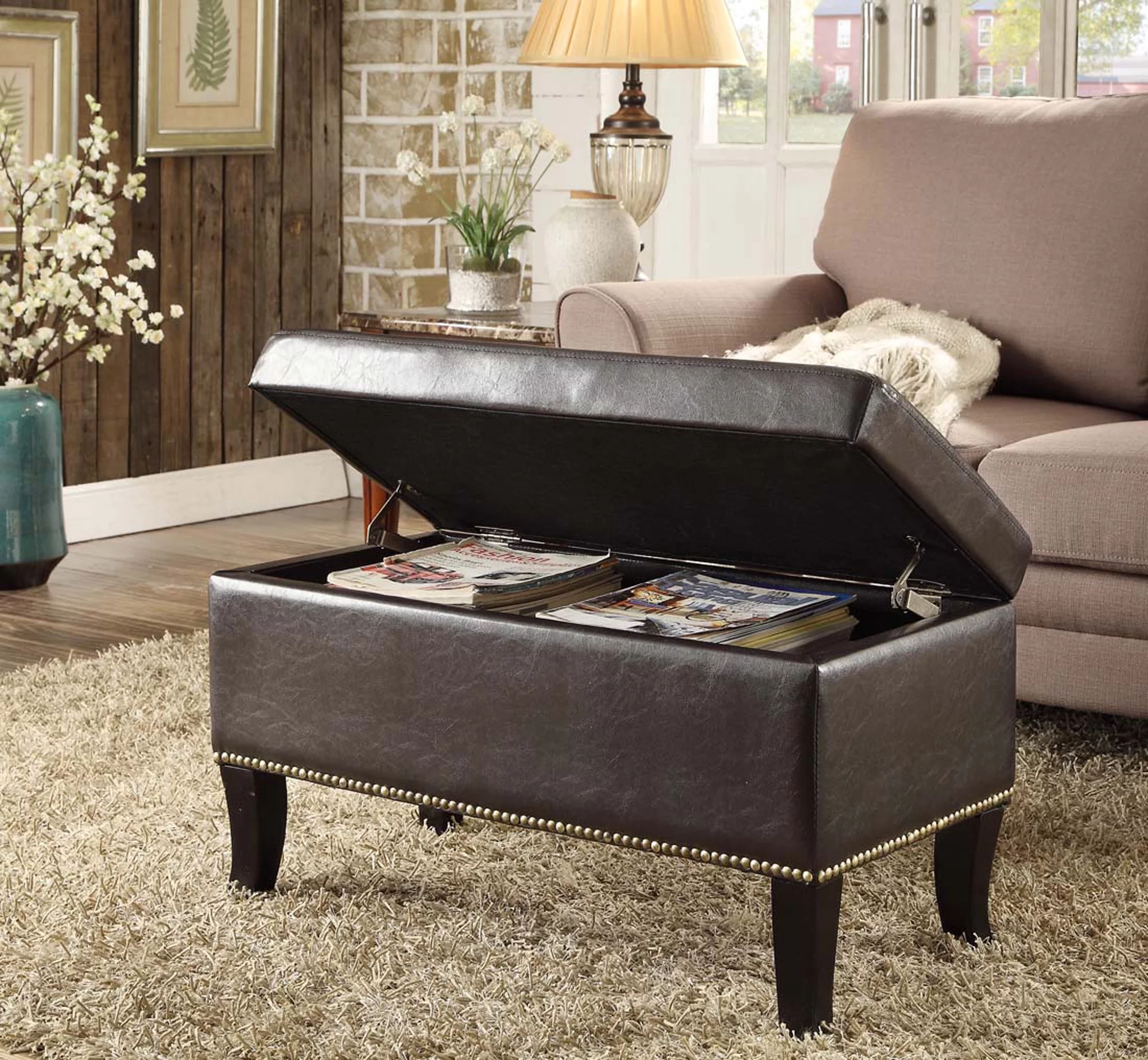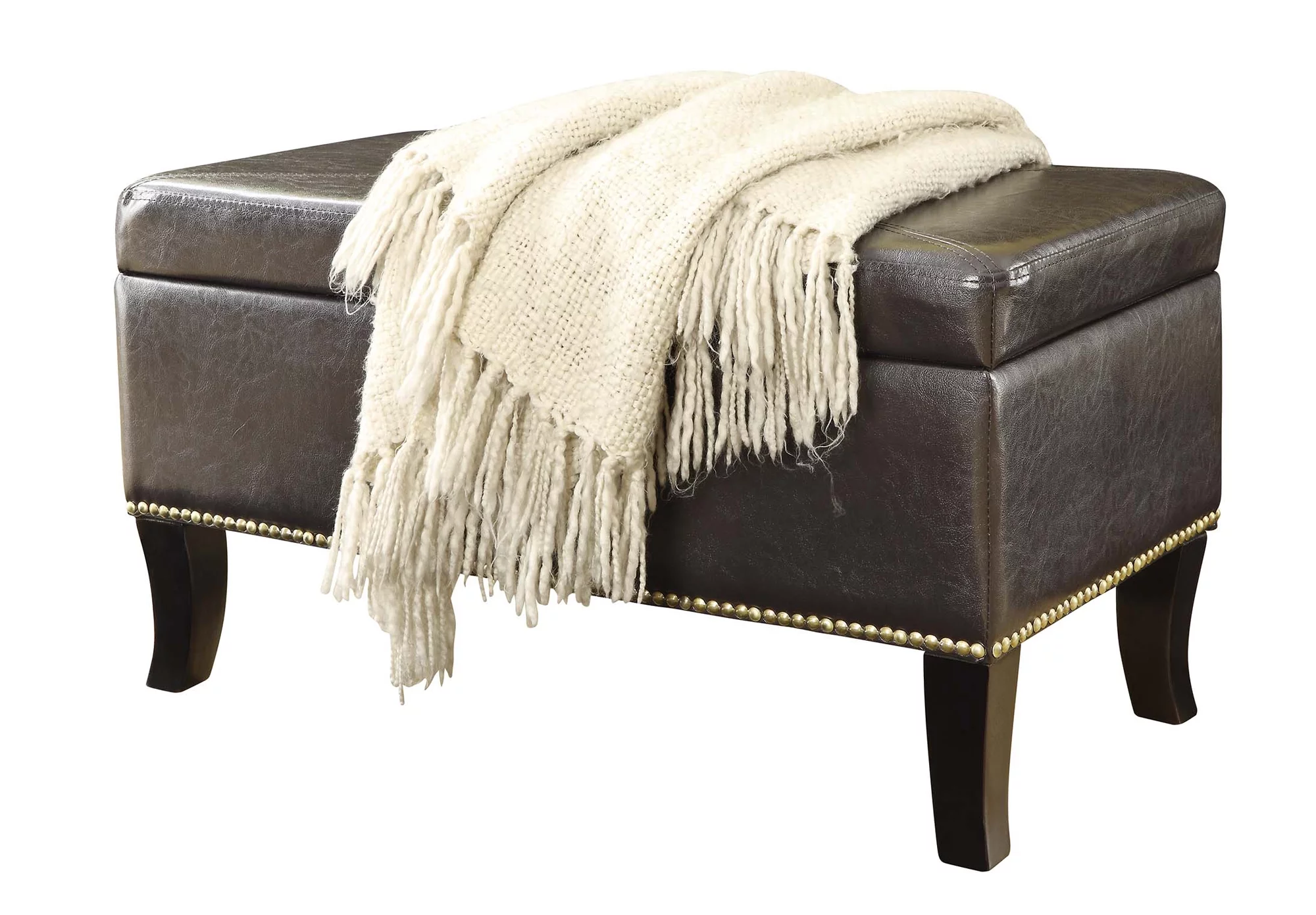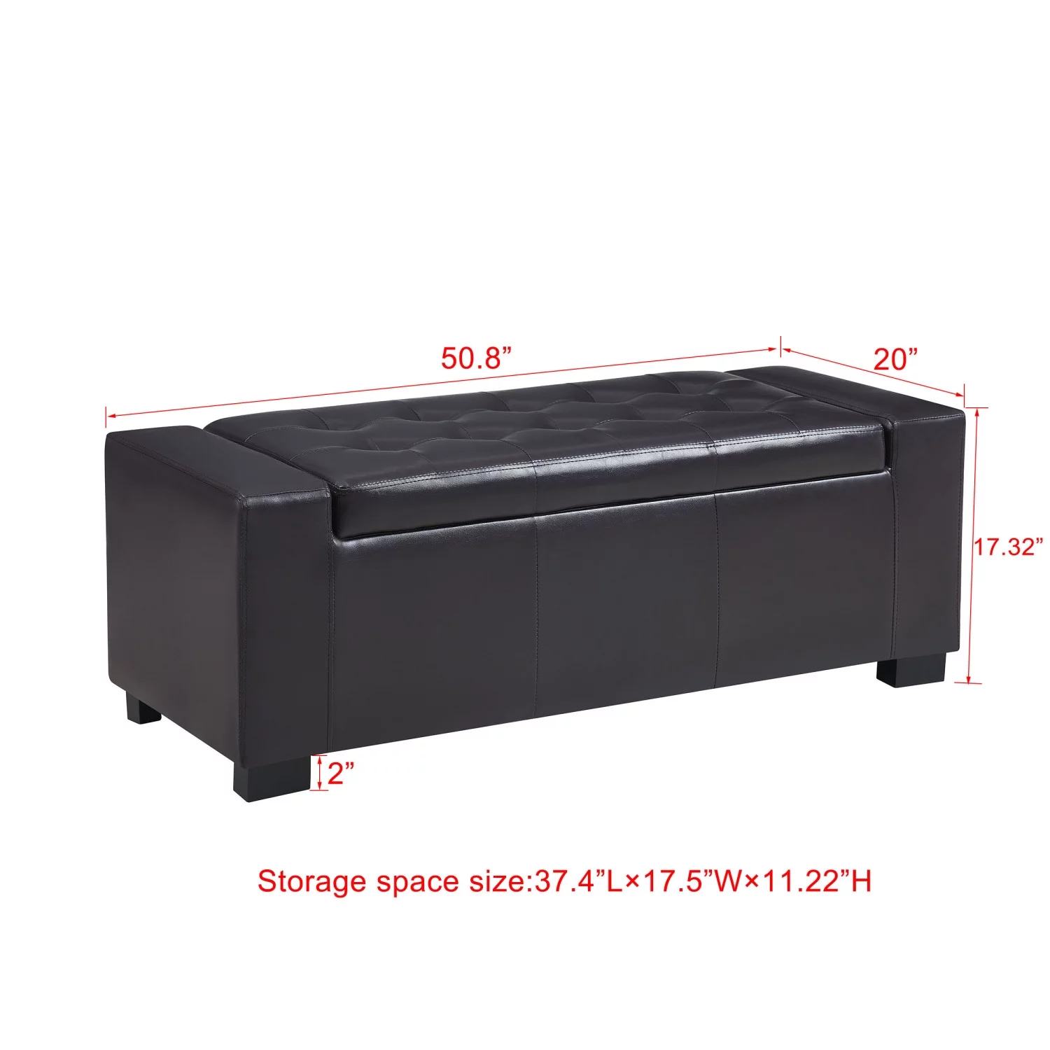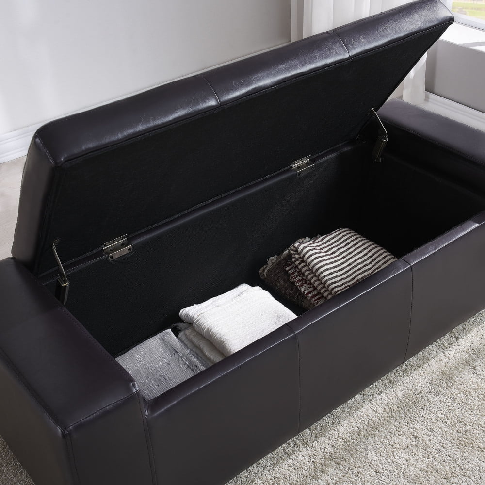 Holaki 50.8" Faux Leather Upholstery Storage Ottoman Bench, Dark Brown