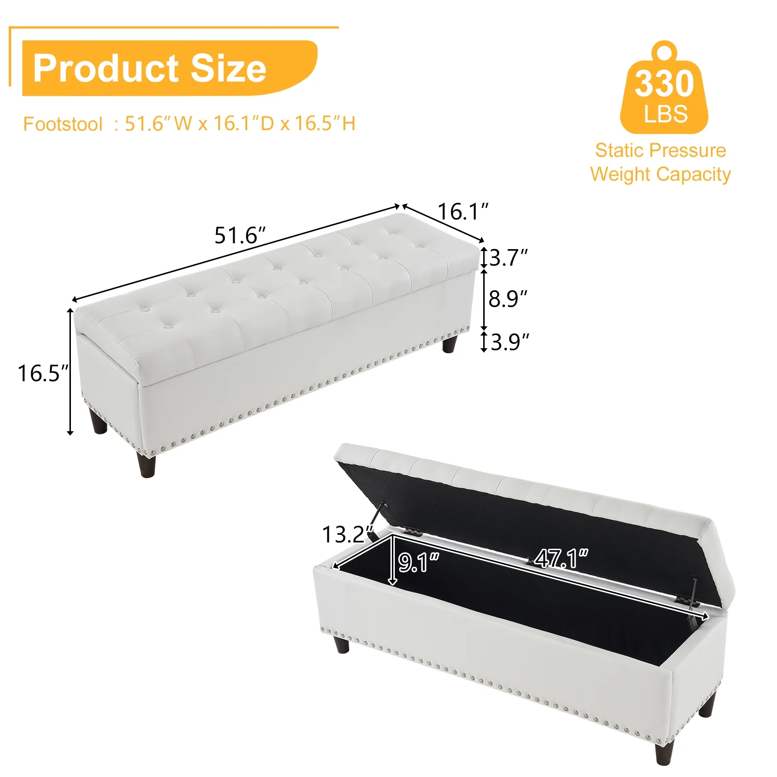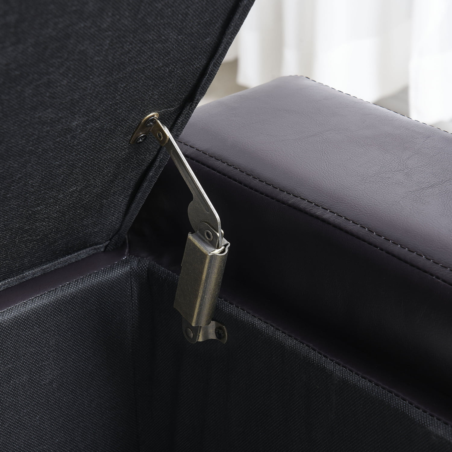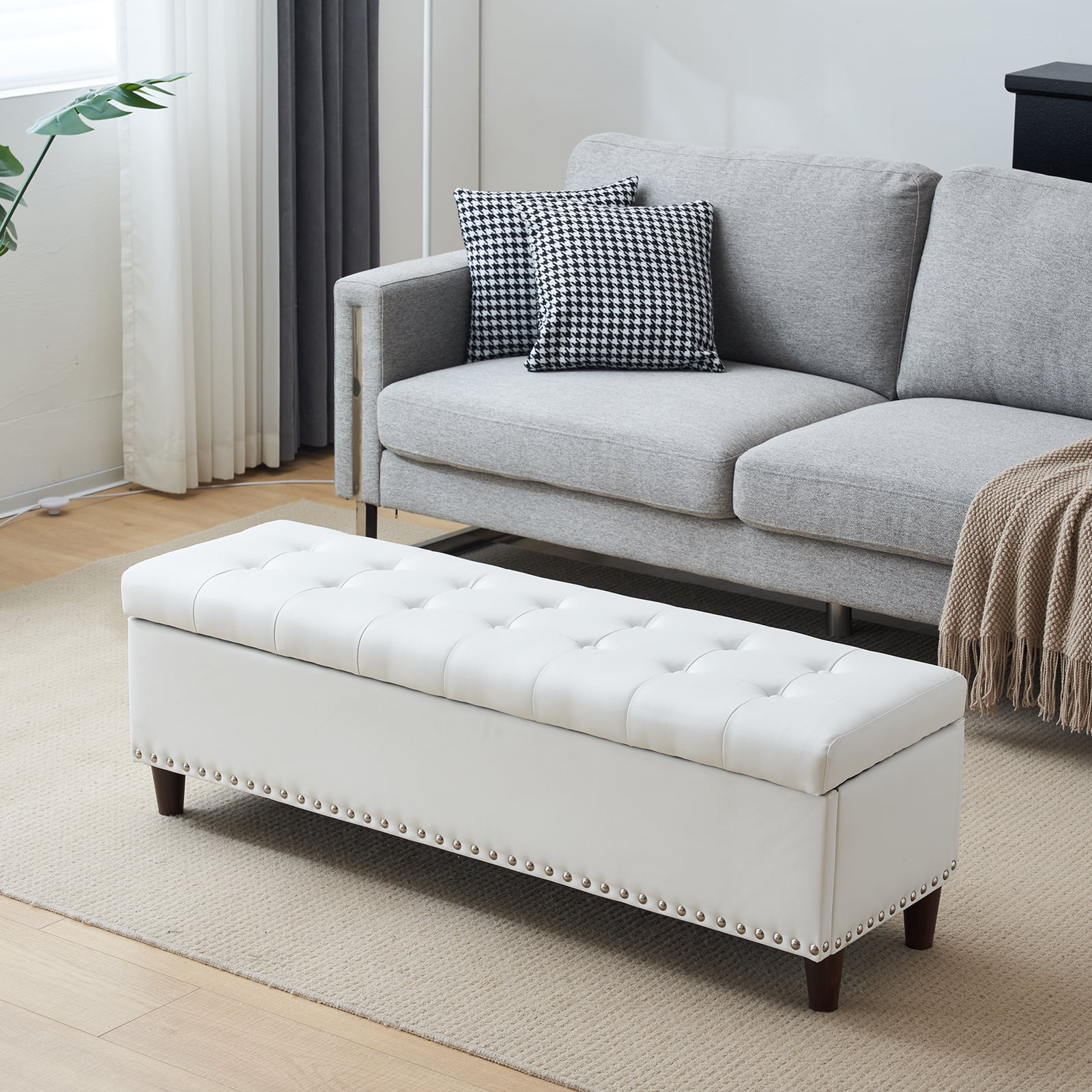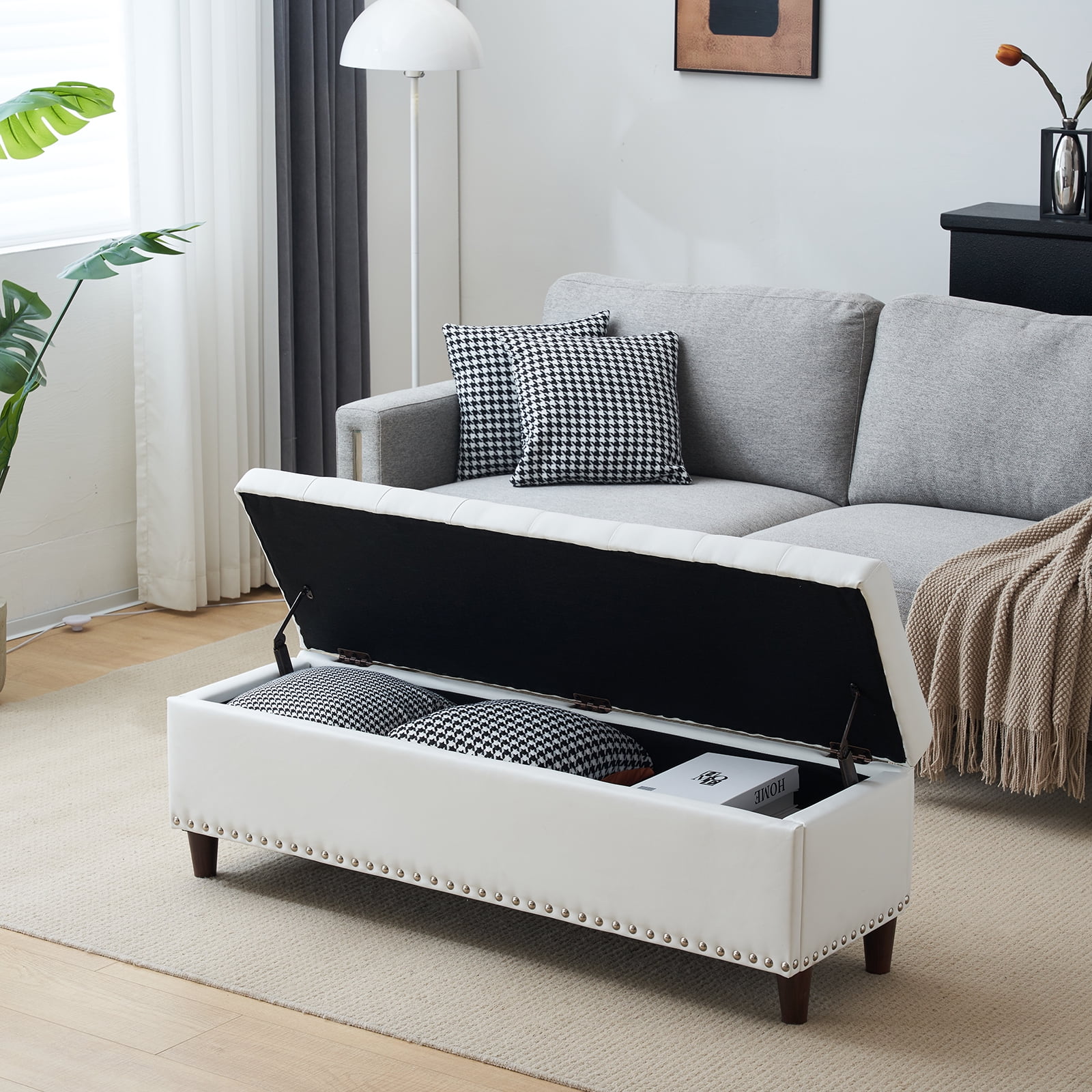 Holaki 50.8" Faux Leather Upholstery Storage Ottoman Bench, Dark Brown