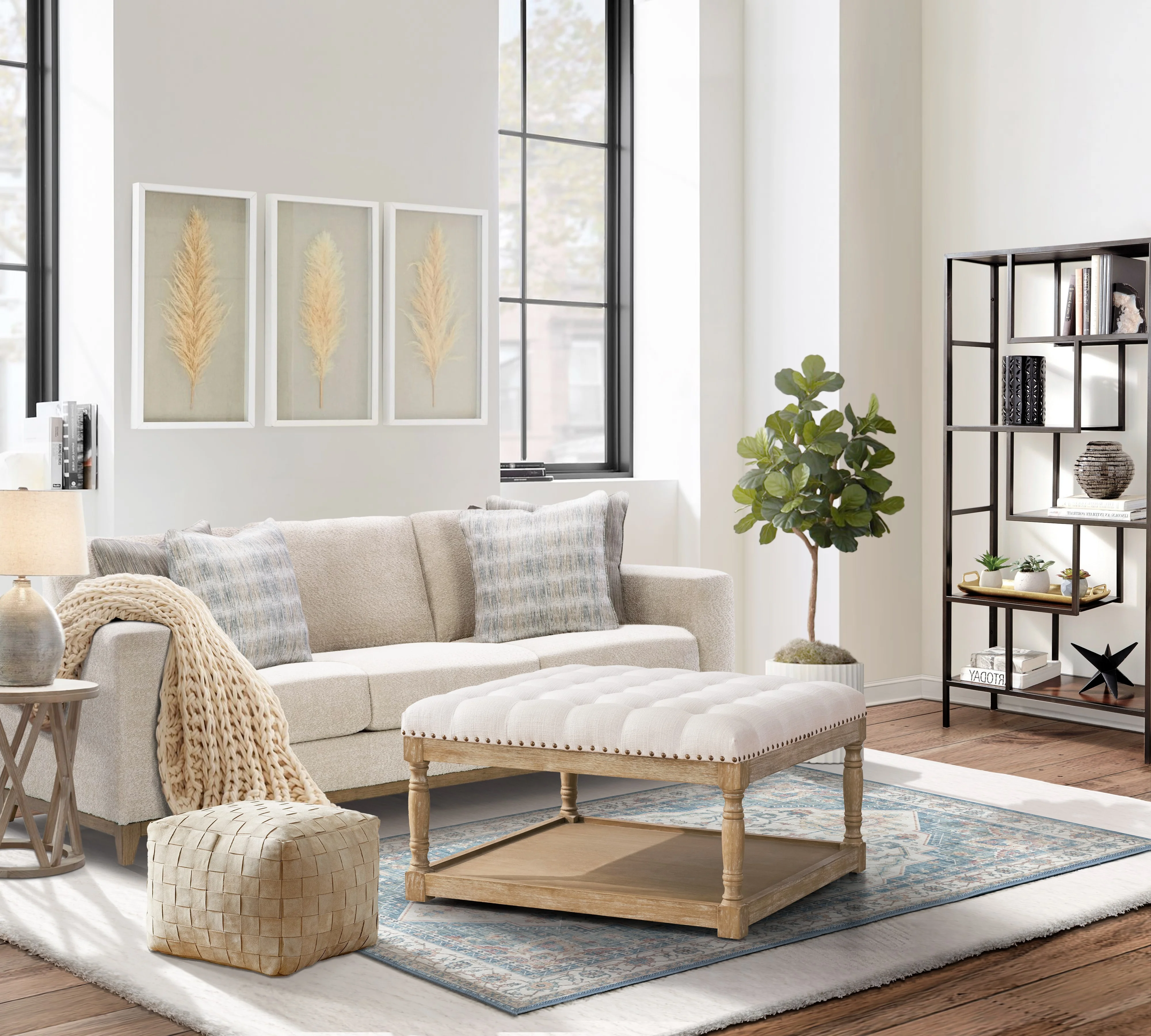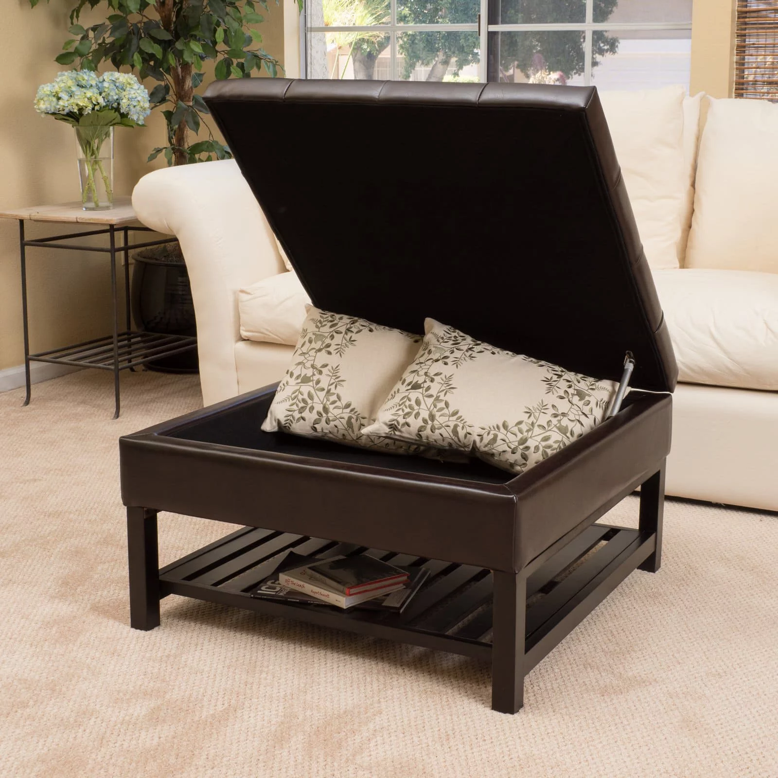 Chelsea Lane Maxfield Brown Cowhide Print Storage Cocktail Table Ottoman