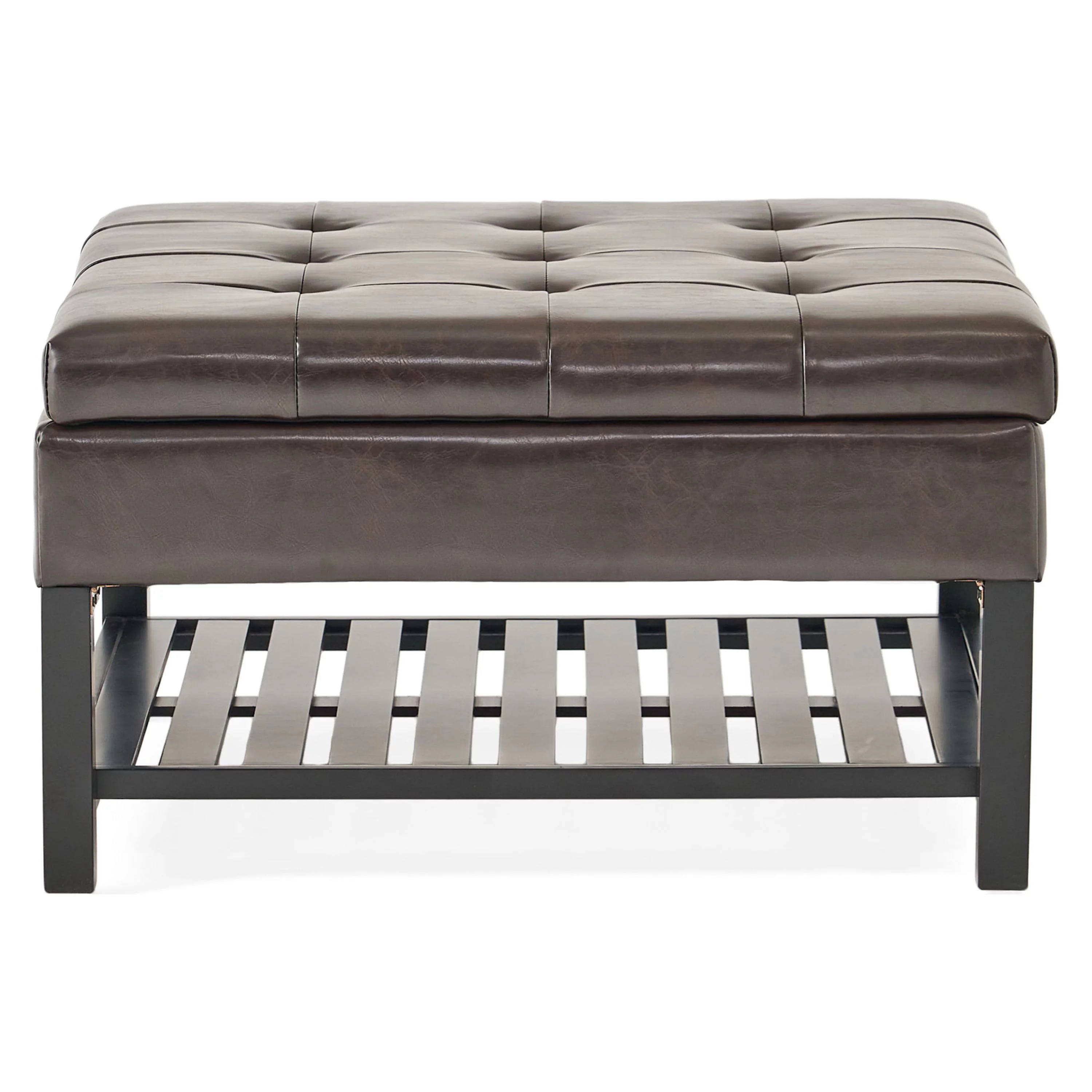 GDF Studio Kilbourne Contemporary Bonded Leather Tufted Storage Ottoman with Shelf, Brown and Dark Brown