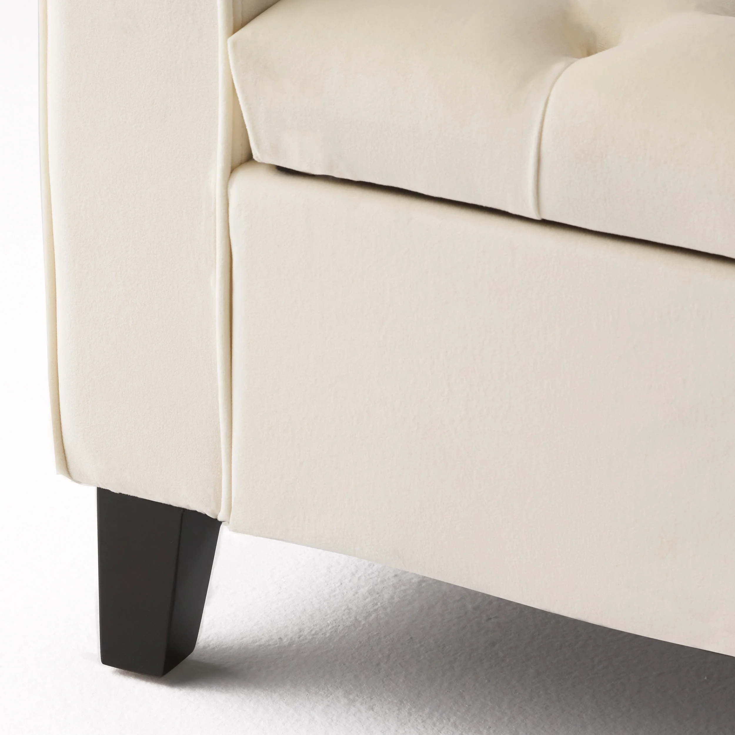 Noble House Clayton Contemporary Rolled Arm Velvet Storage Ottoman Bench, Ivory and Dark Brown