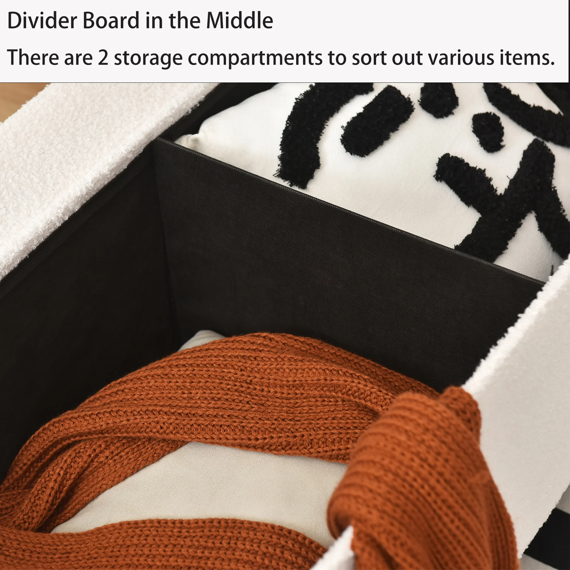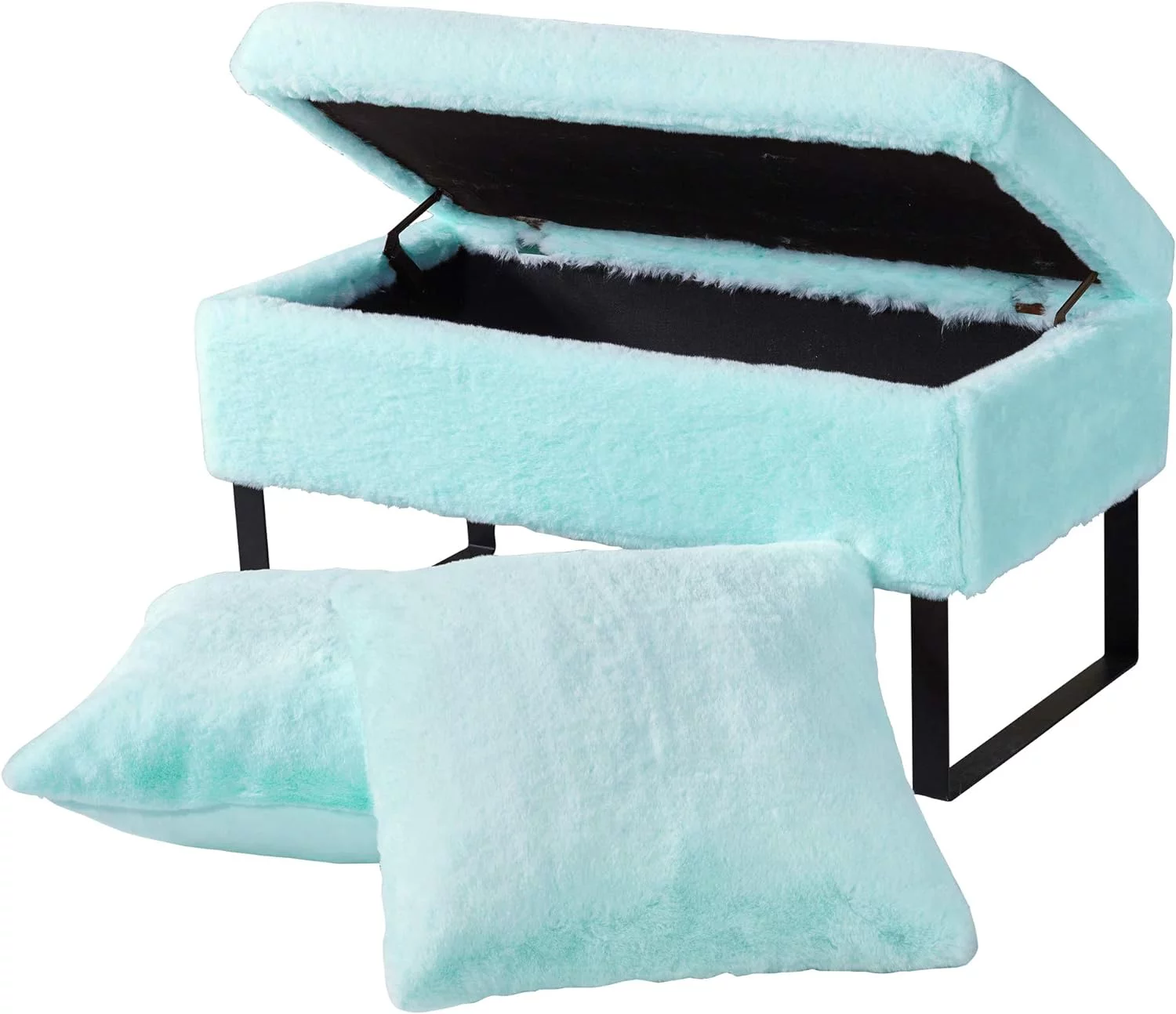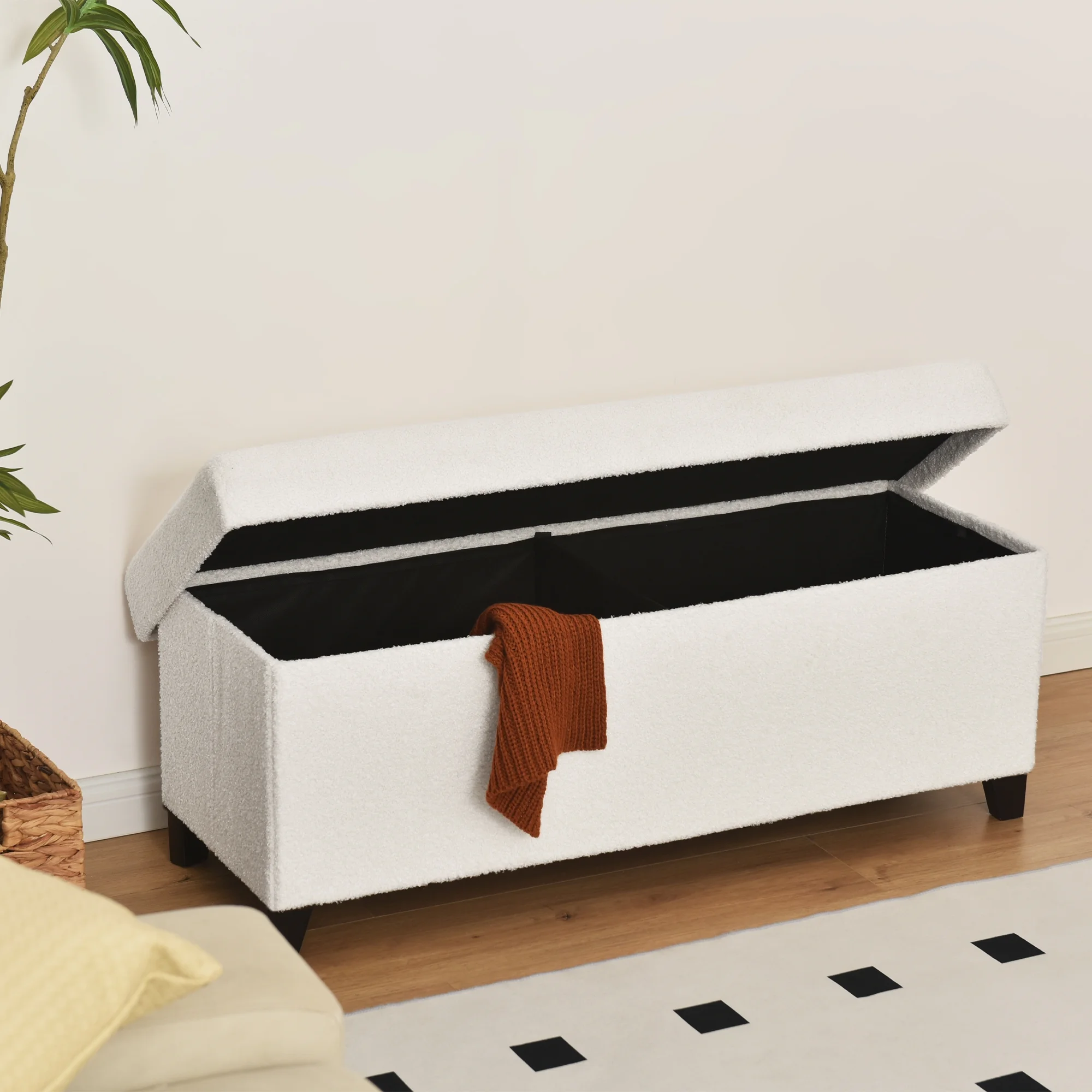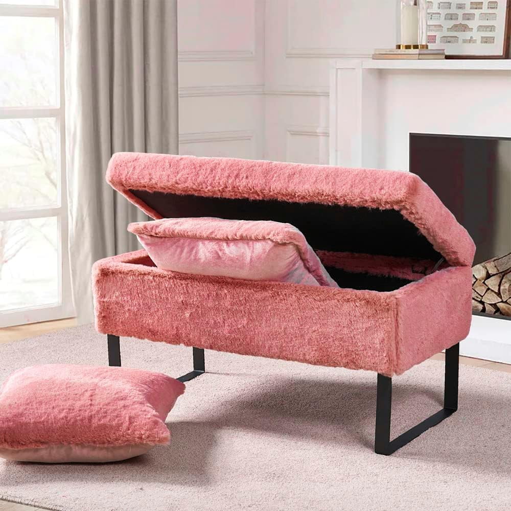 Flannel Storage Ottoman Bench Storage Chest Footstools for Sofa Couch Bedroom End of Bed Living Room Black