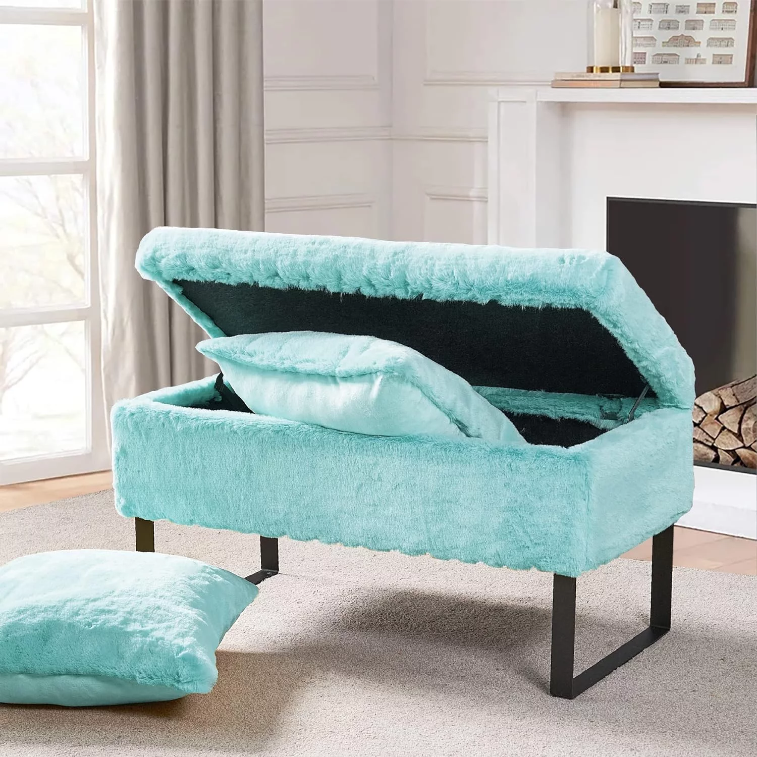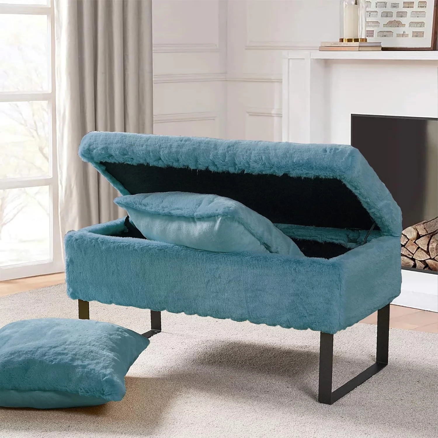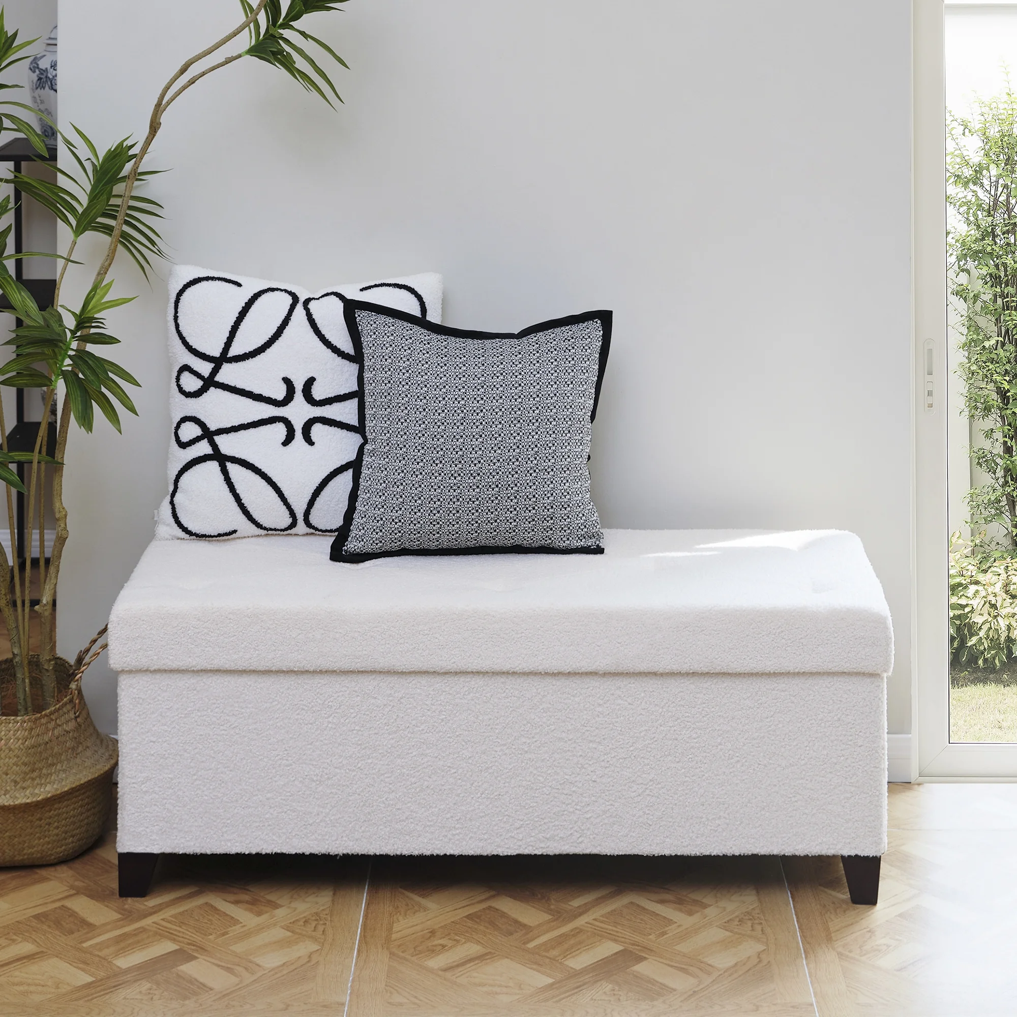 Flannel Storage Ottoman Bench Storage Chest Footstools for Sofa Couch Bedroom End of Bed Living Room Black