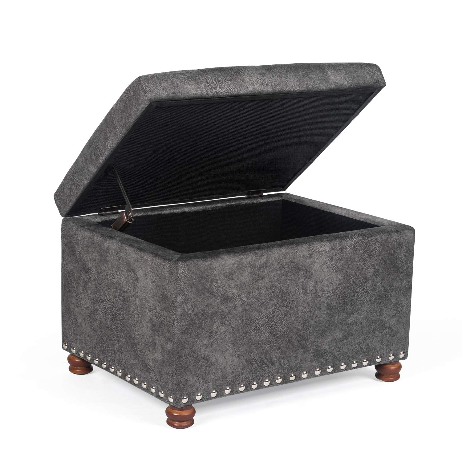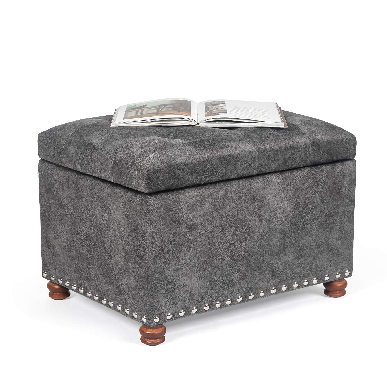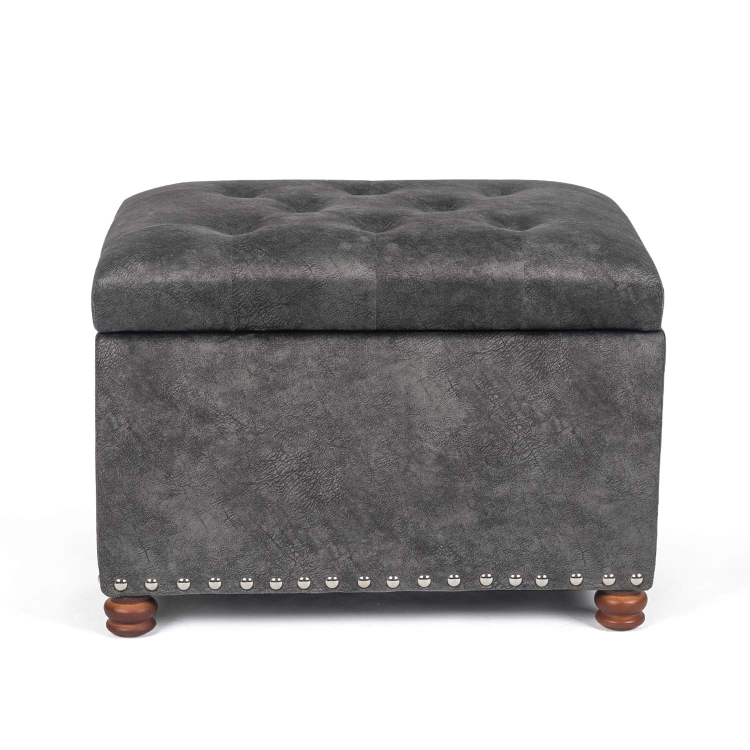 Homebeez Leather Storage Ottoman Folding Upholstered Foot Rest Stool,18 inch Footstool Bench for Bedroom Hallway