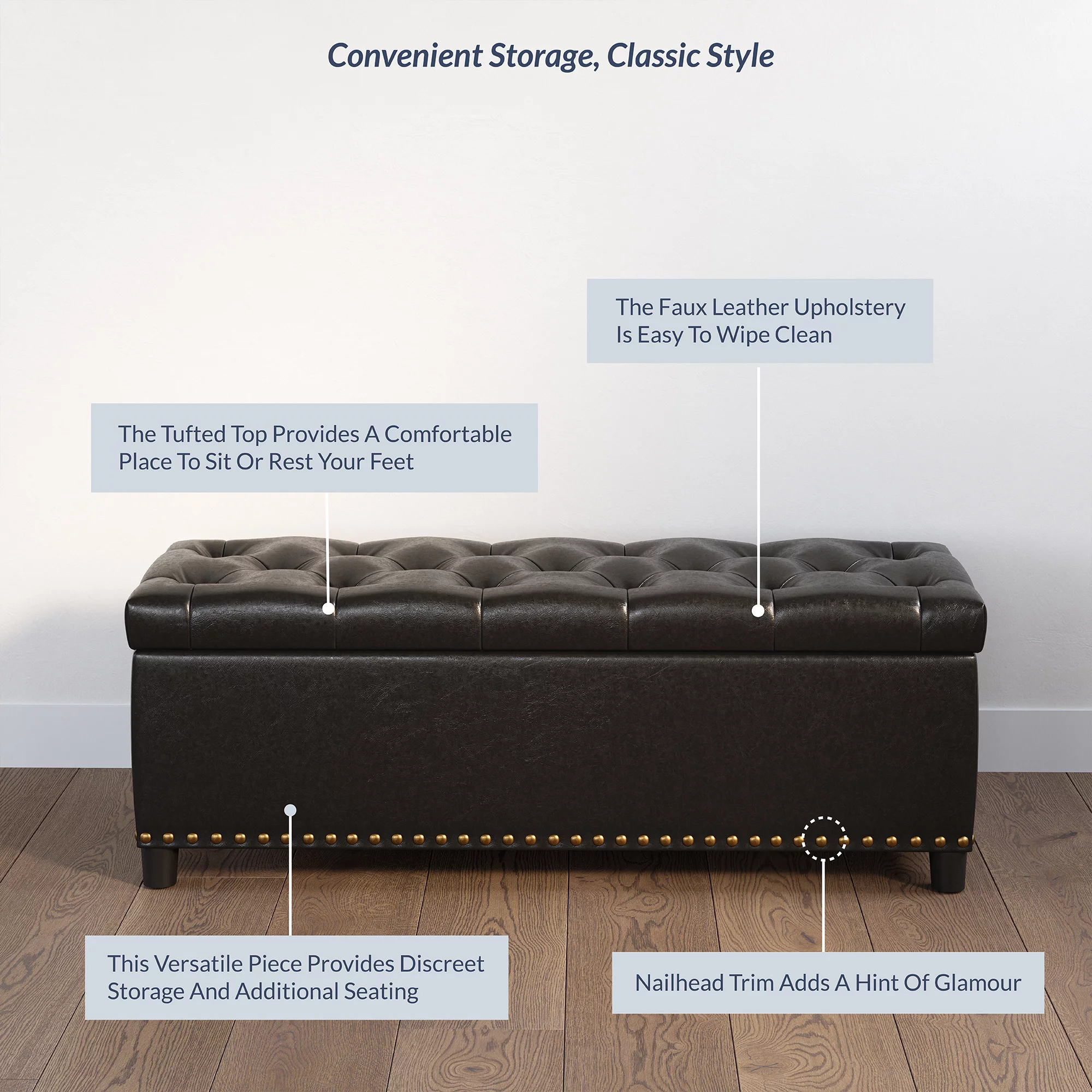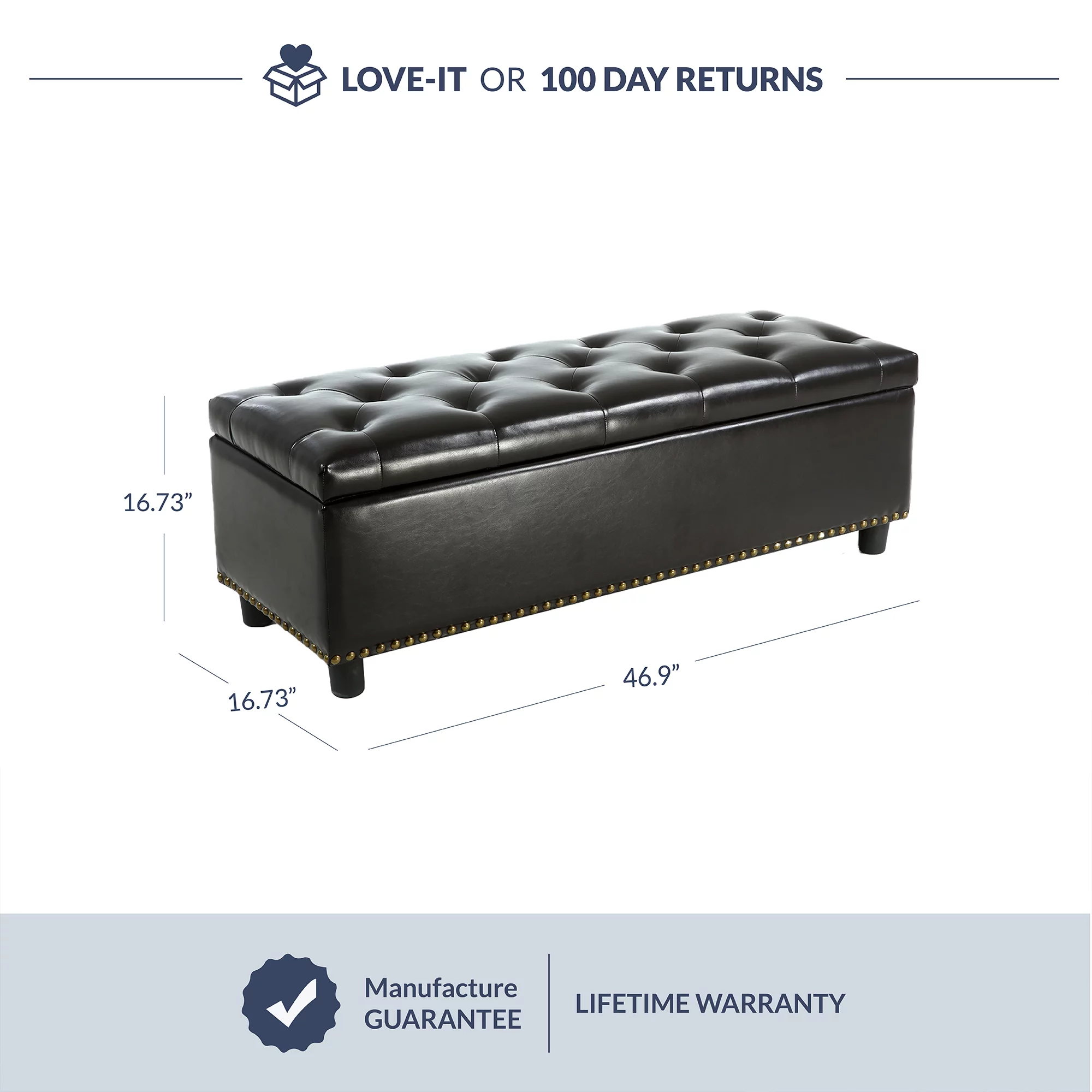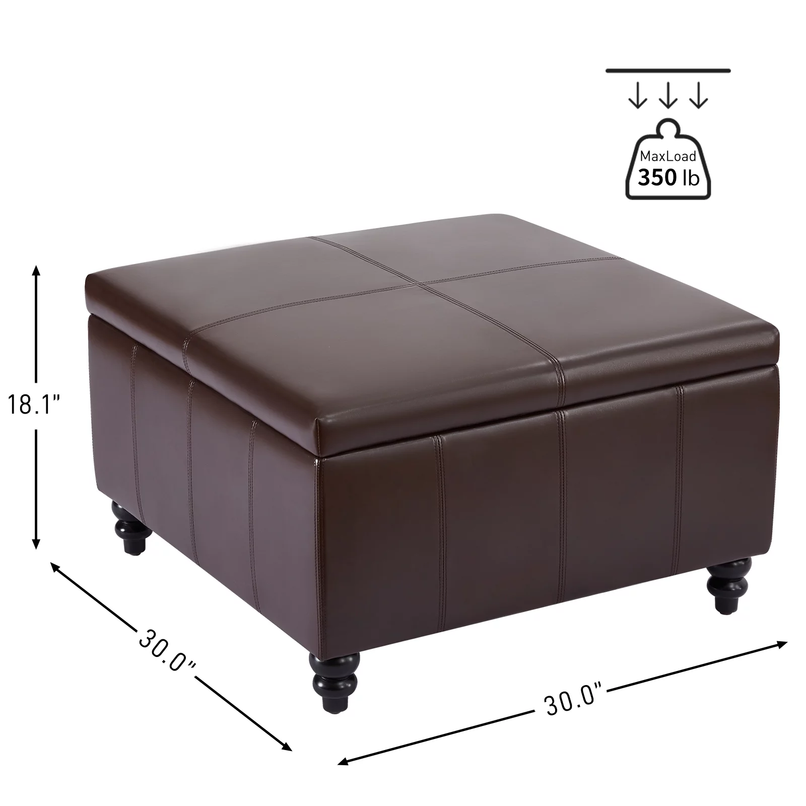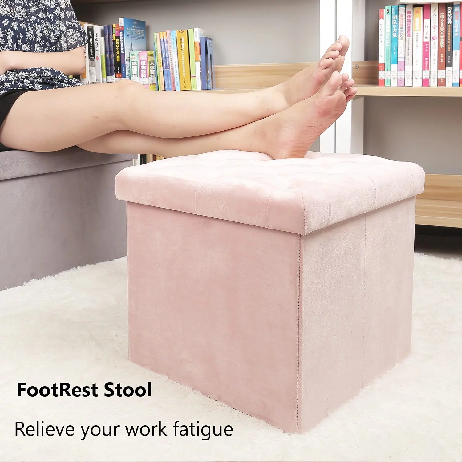 Homebeez Leather Storage Ottoman Folding Upholstered Foot Rest Stool,18 inch Footstool Bench for Bedroom Hallway