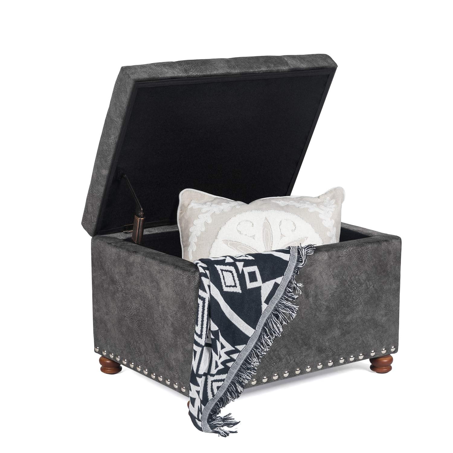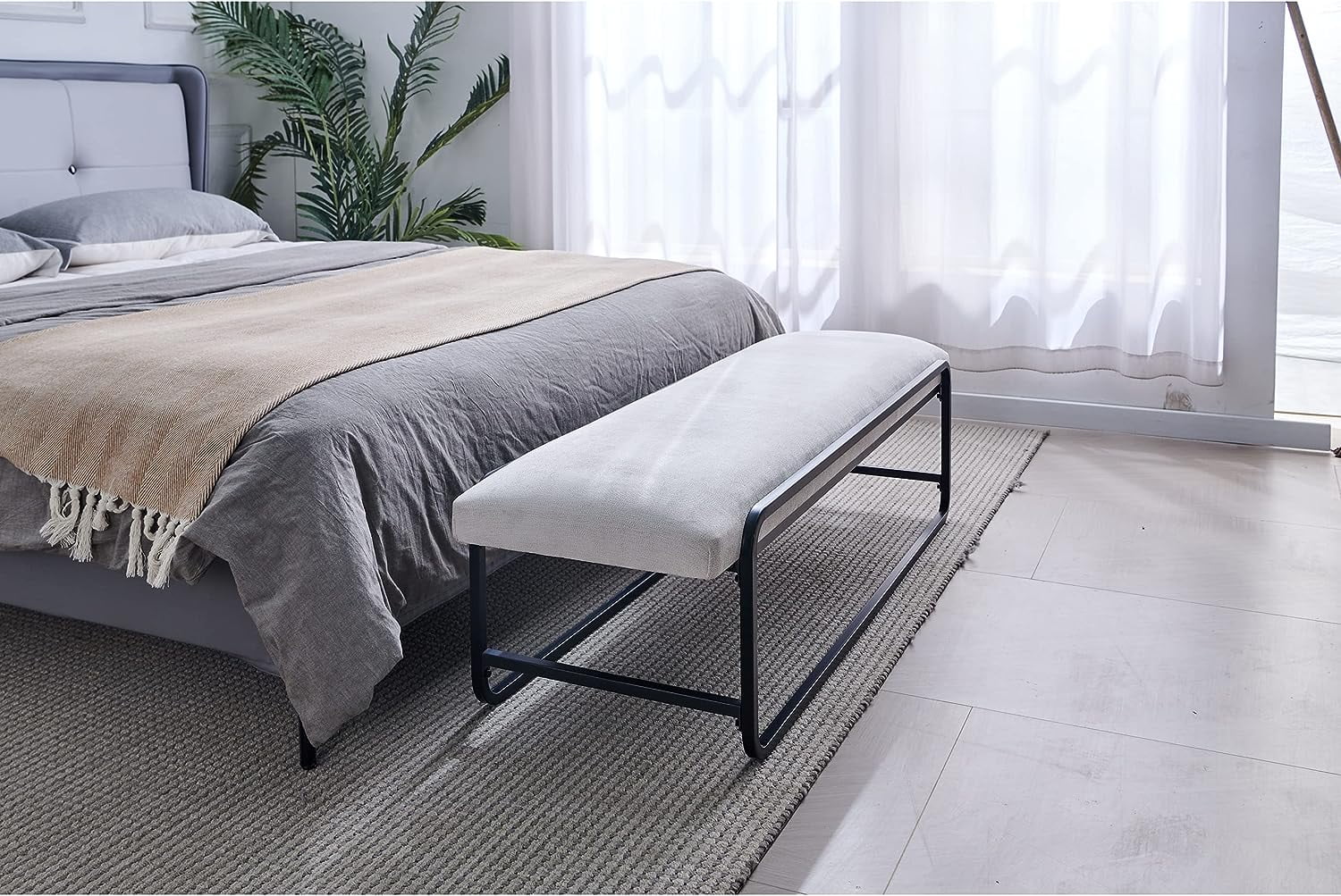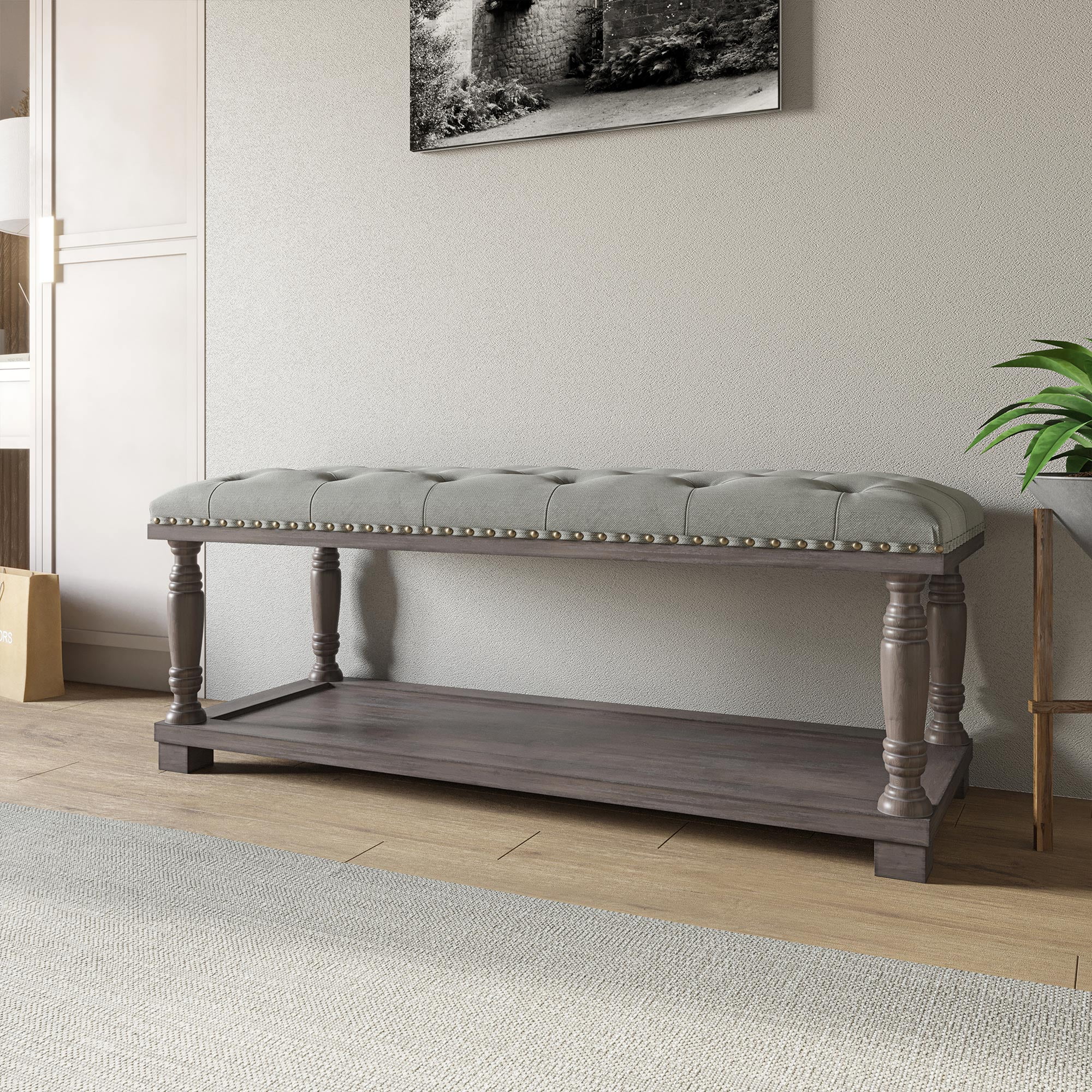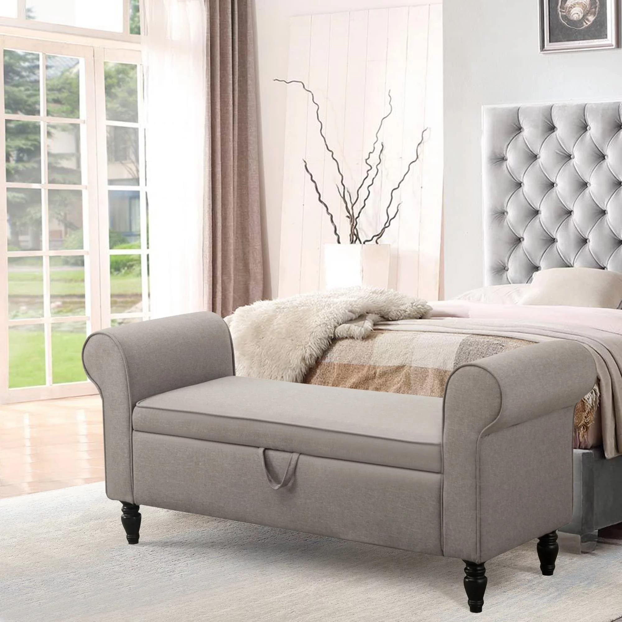Andeworld Storage Bench Ottoman with Upholstered Arms,bench in front of bed Grey Grey Finish