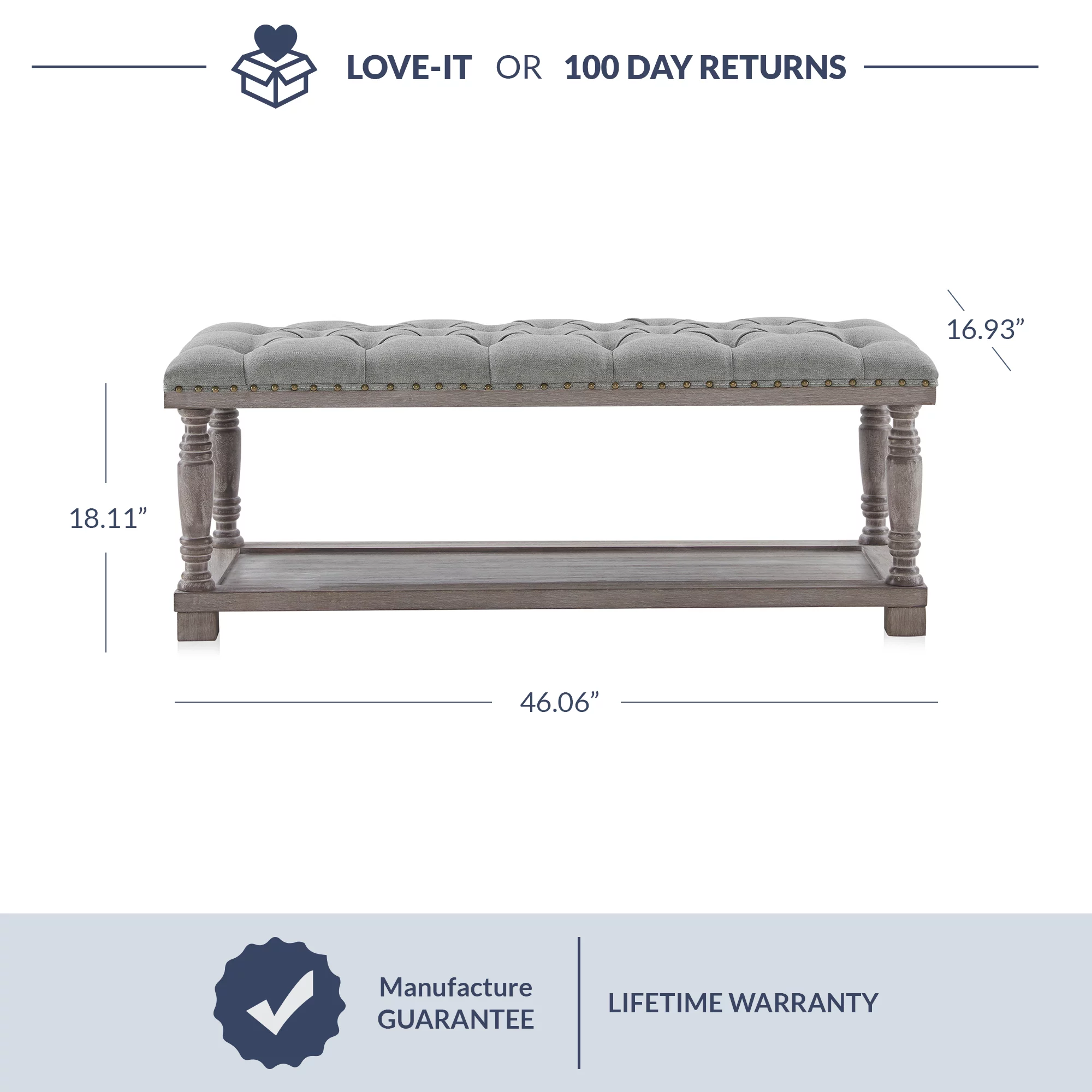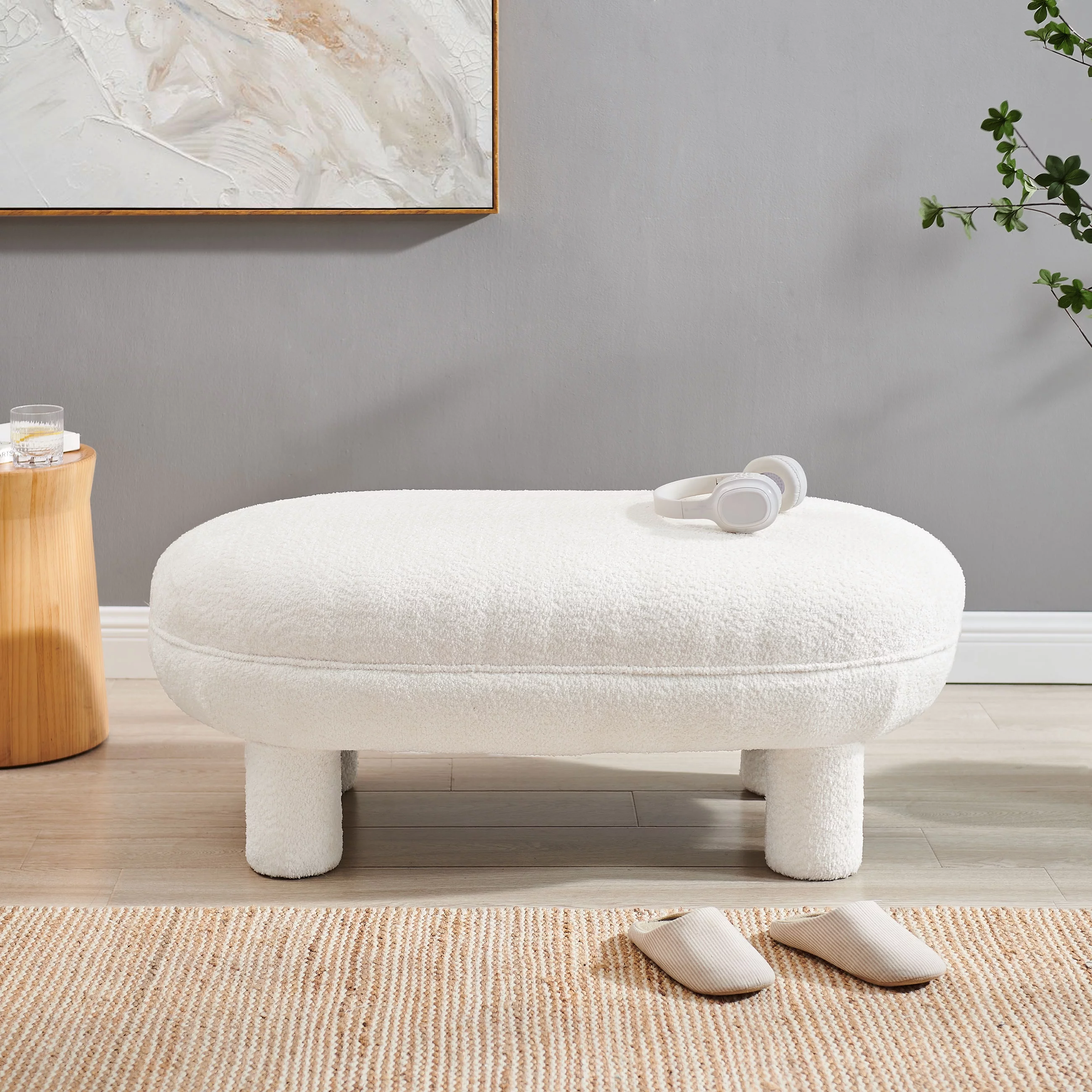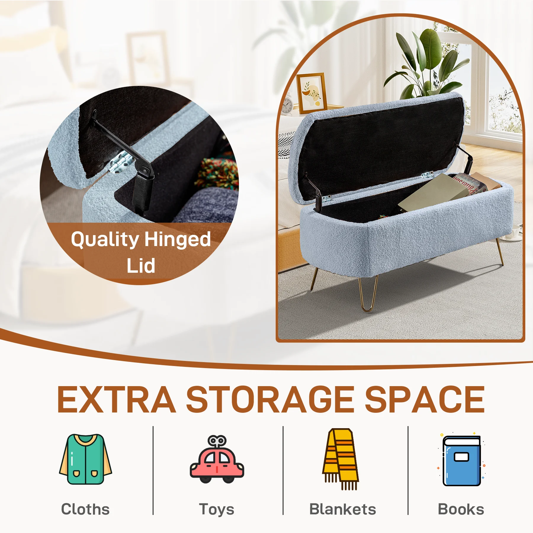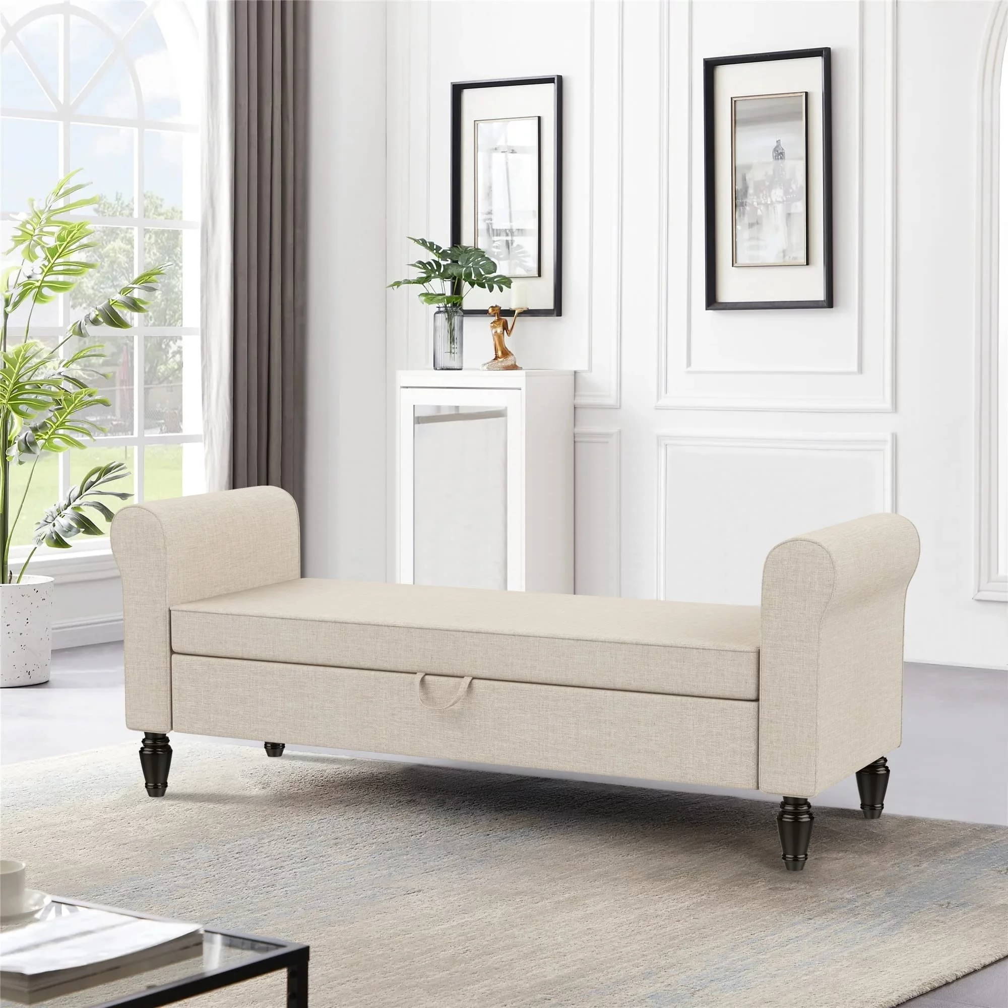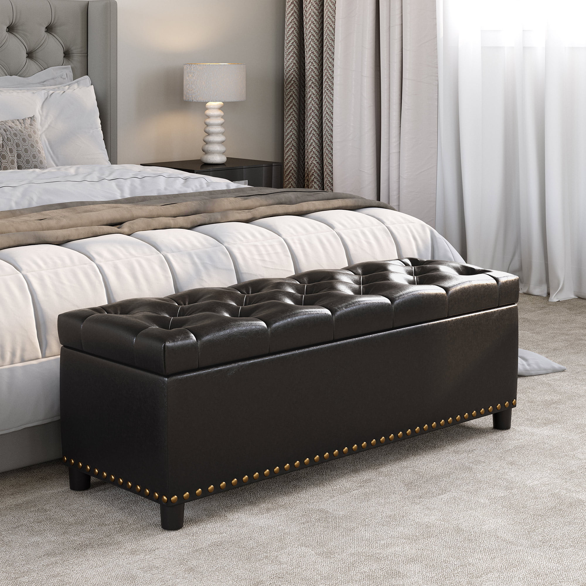 Andeworld Storage Bench Ottoman with Upholstered Arms,bench in front of bed Grey Grey Finish