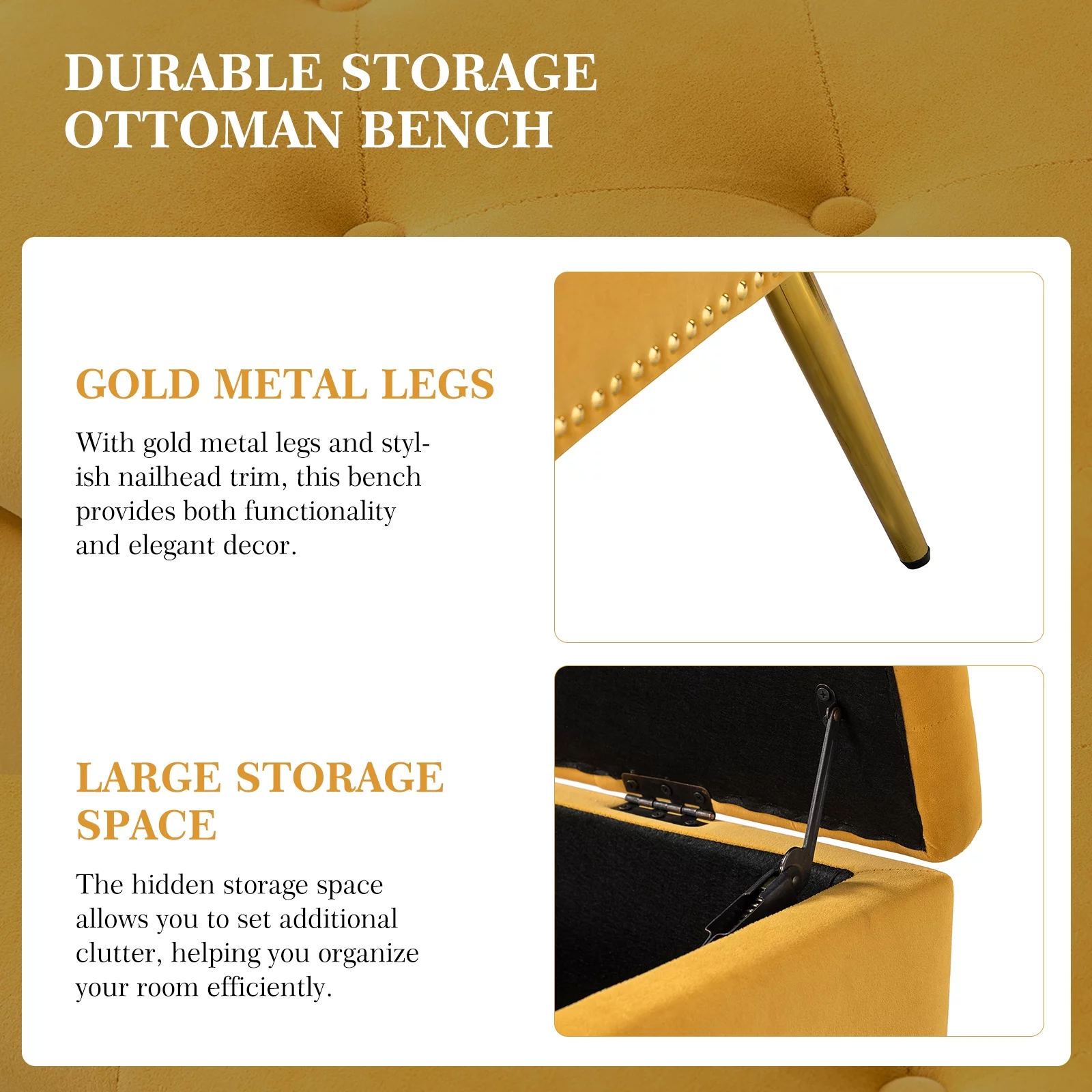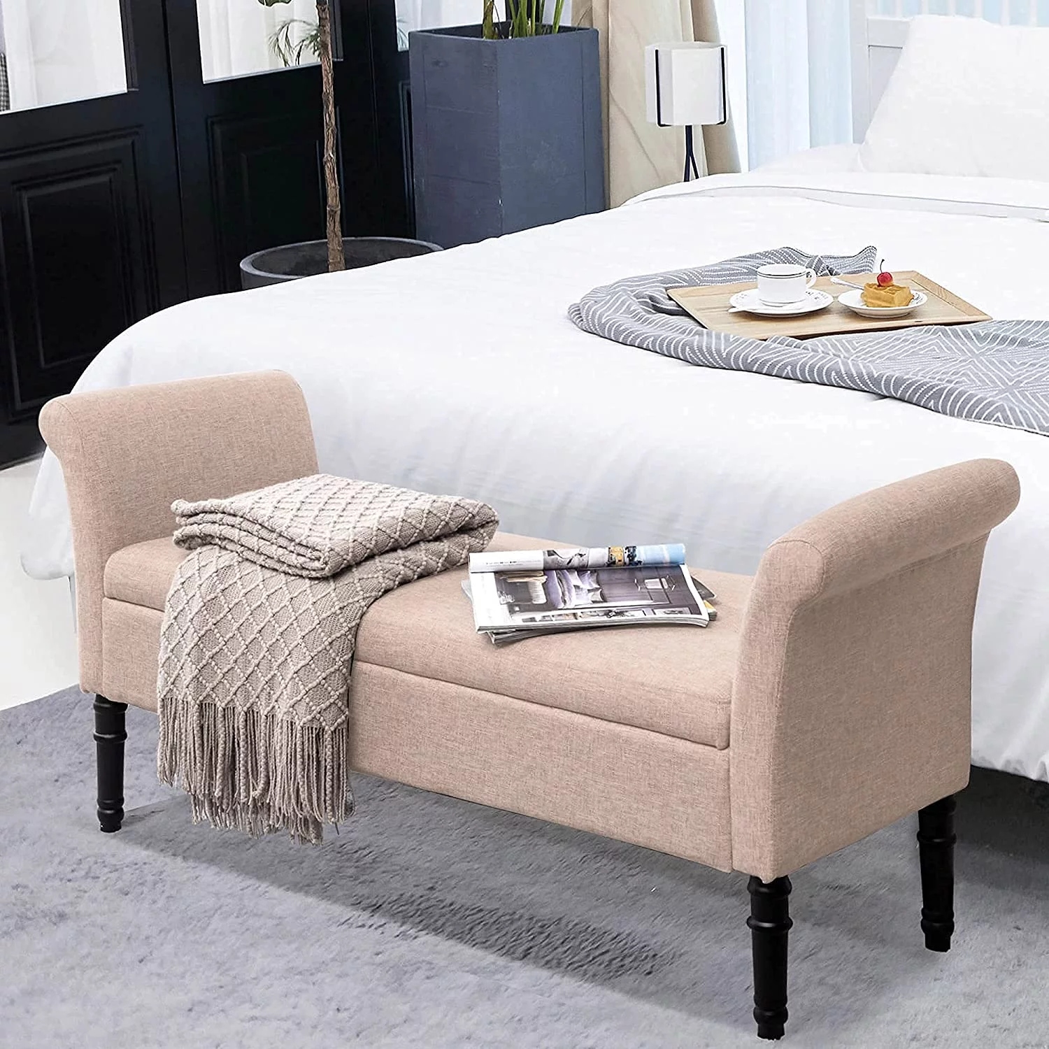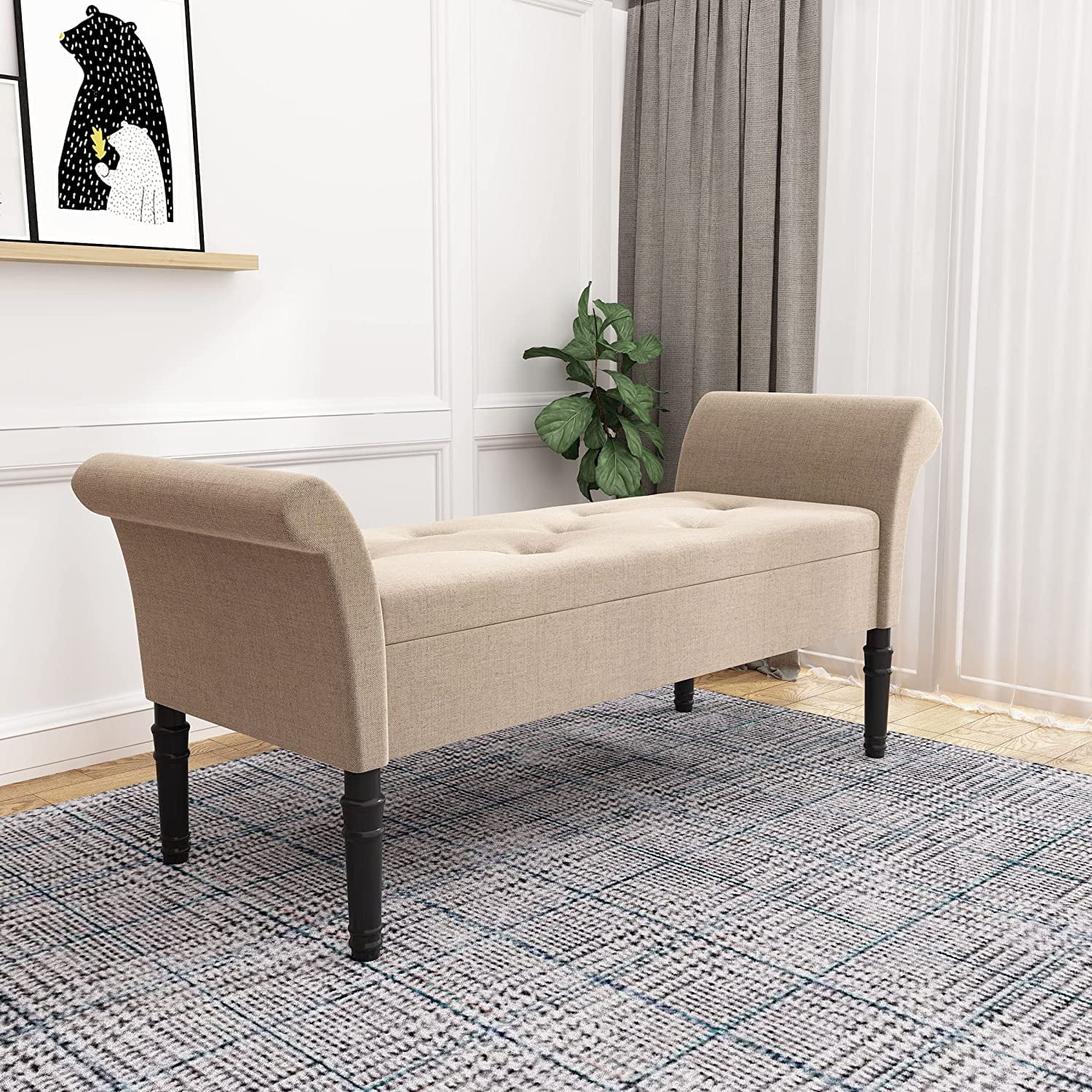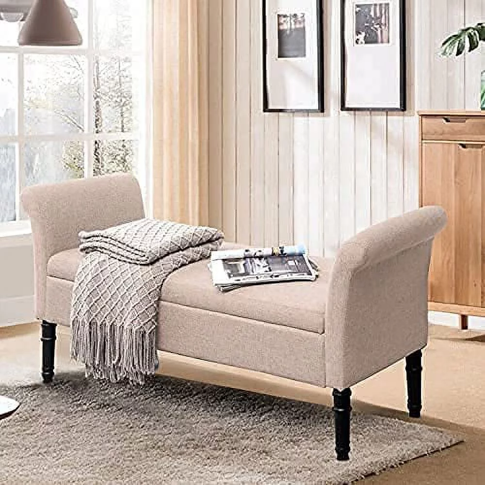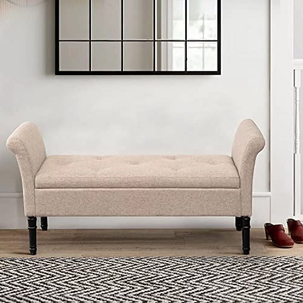 Andeworld Modern Fabric Storage Bench with Arms Button Tufted Footstool Ottoman Bench for Living Room Bedroom (Tan)
