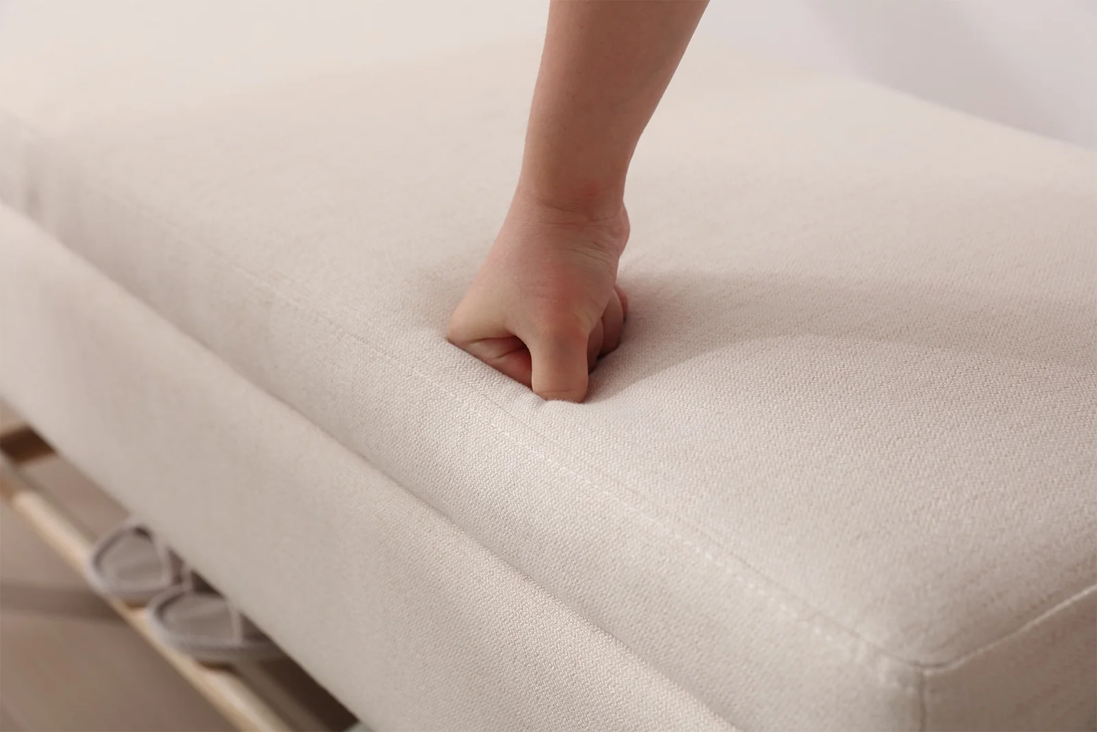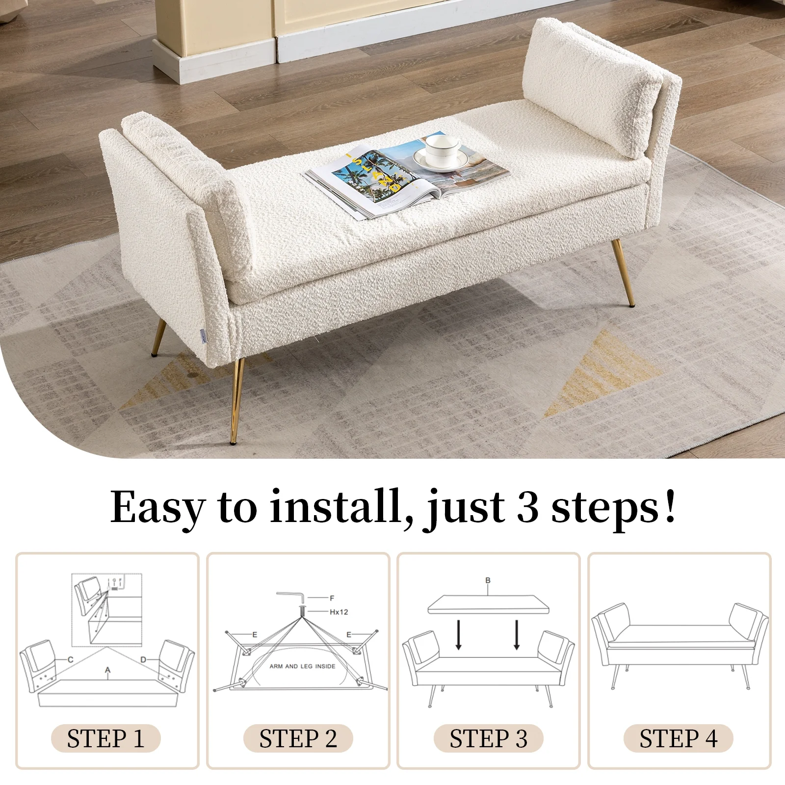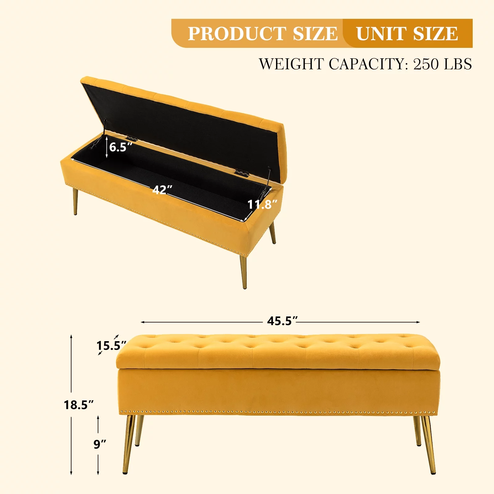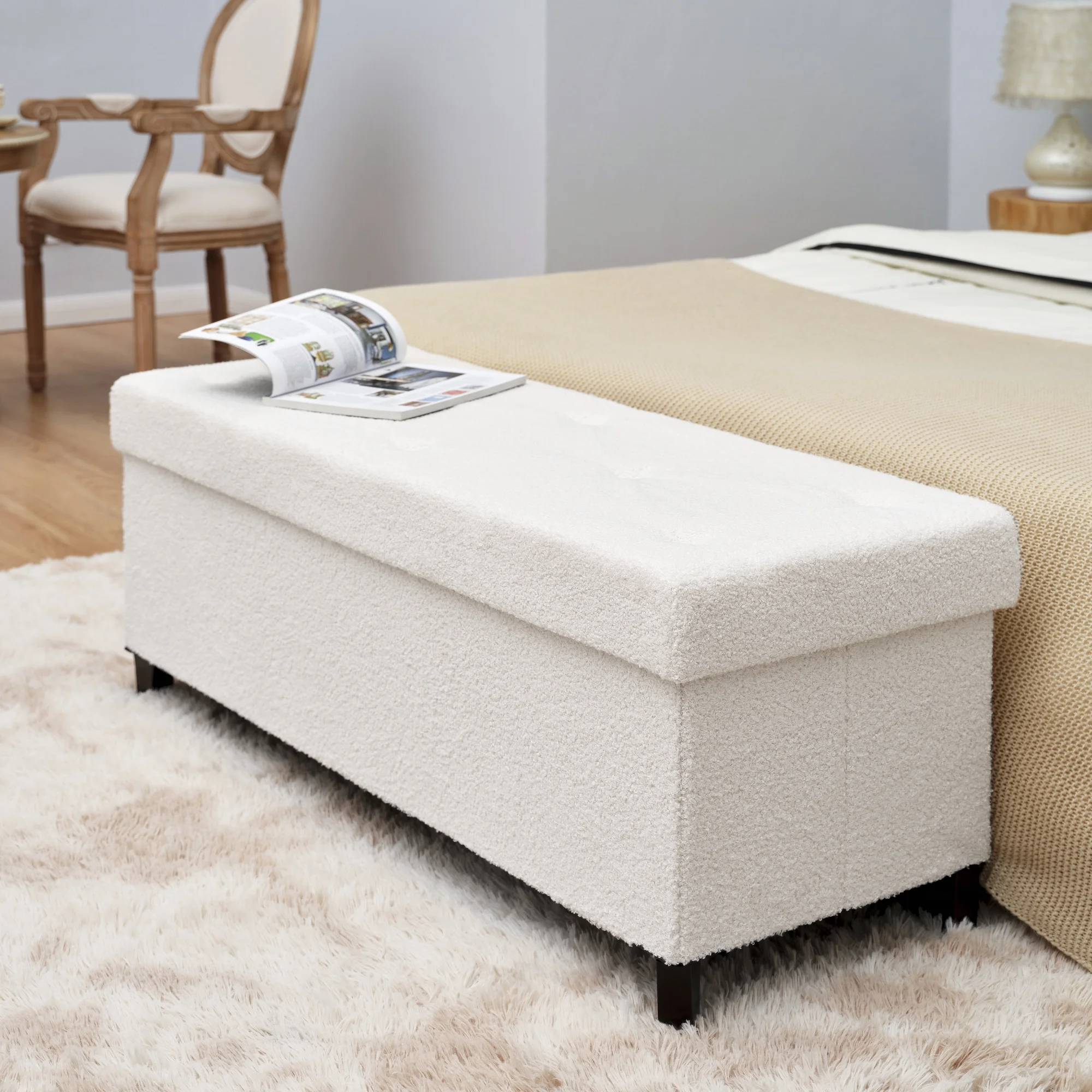 Andeworld Modern Fabric Storage Bench with Arms Button Tufted Footstool Ottoman Bench for Living Room Bedroom (Tan)