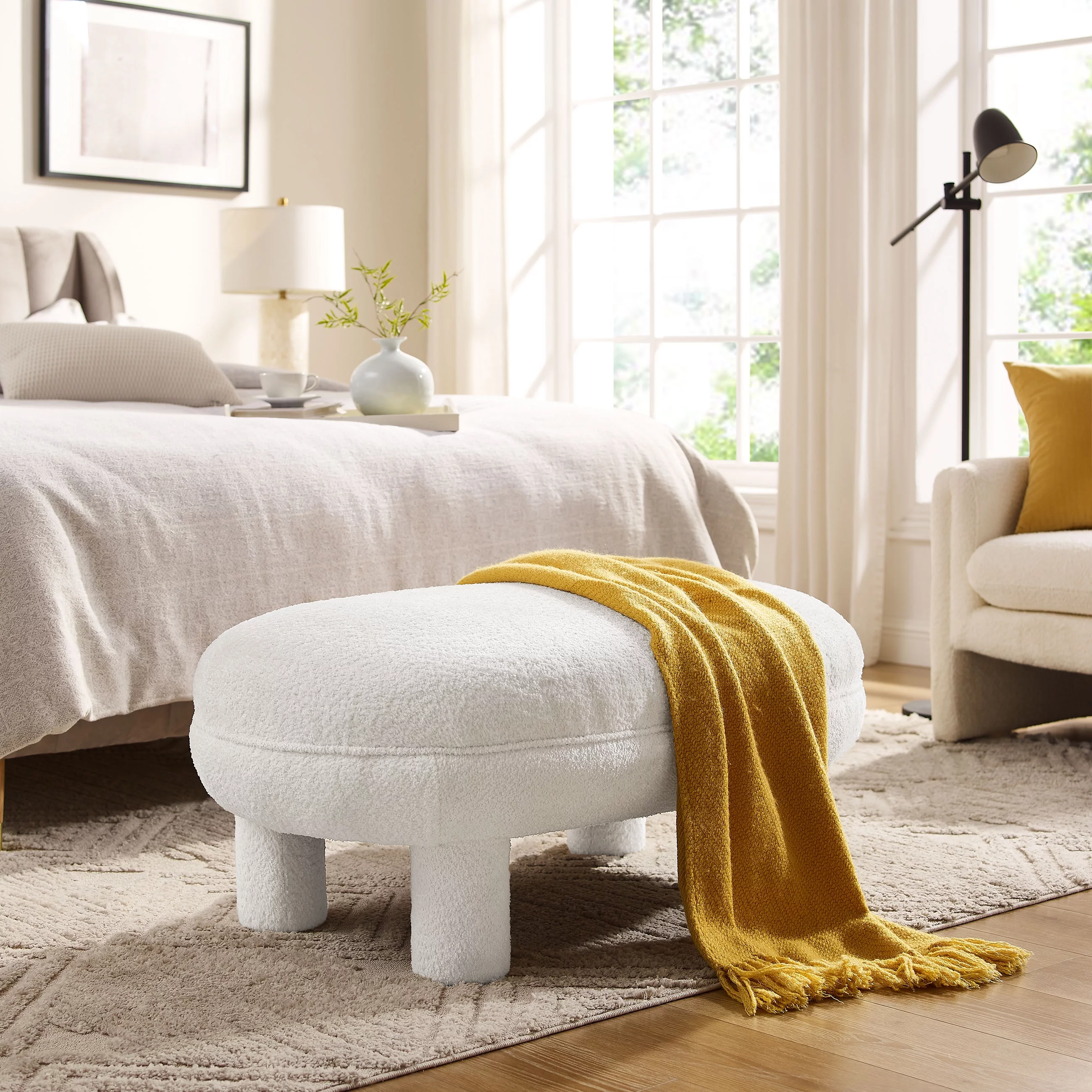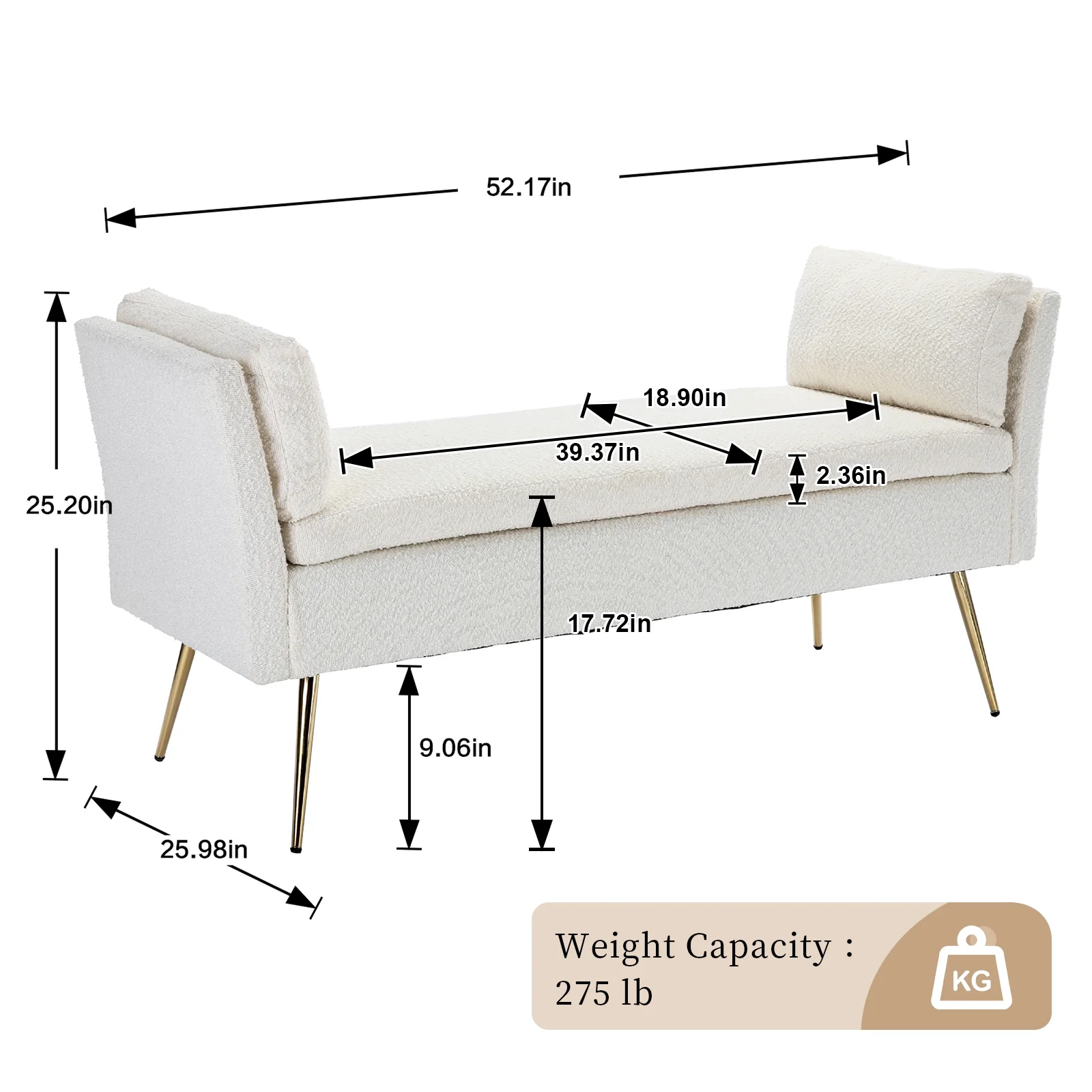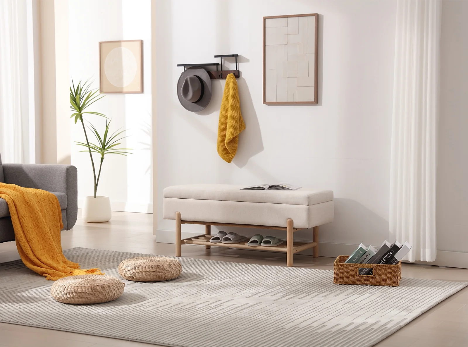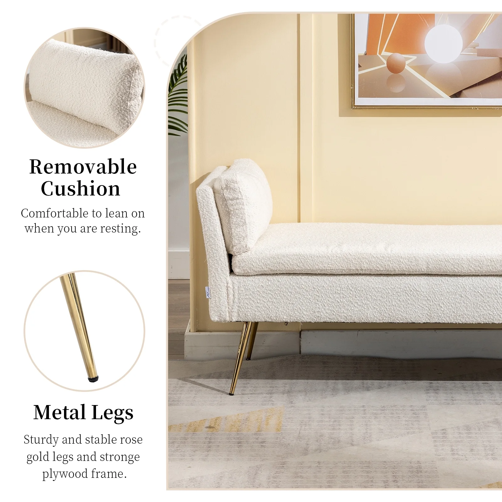 Andeworld Modern Fabric Storage Bench with Arms Button Tufted Footstool Ottoman Bench for Living Room Bedroom (Tan)