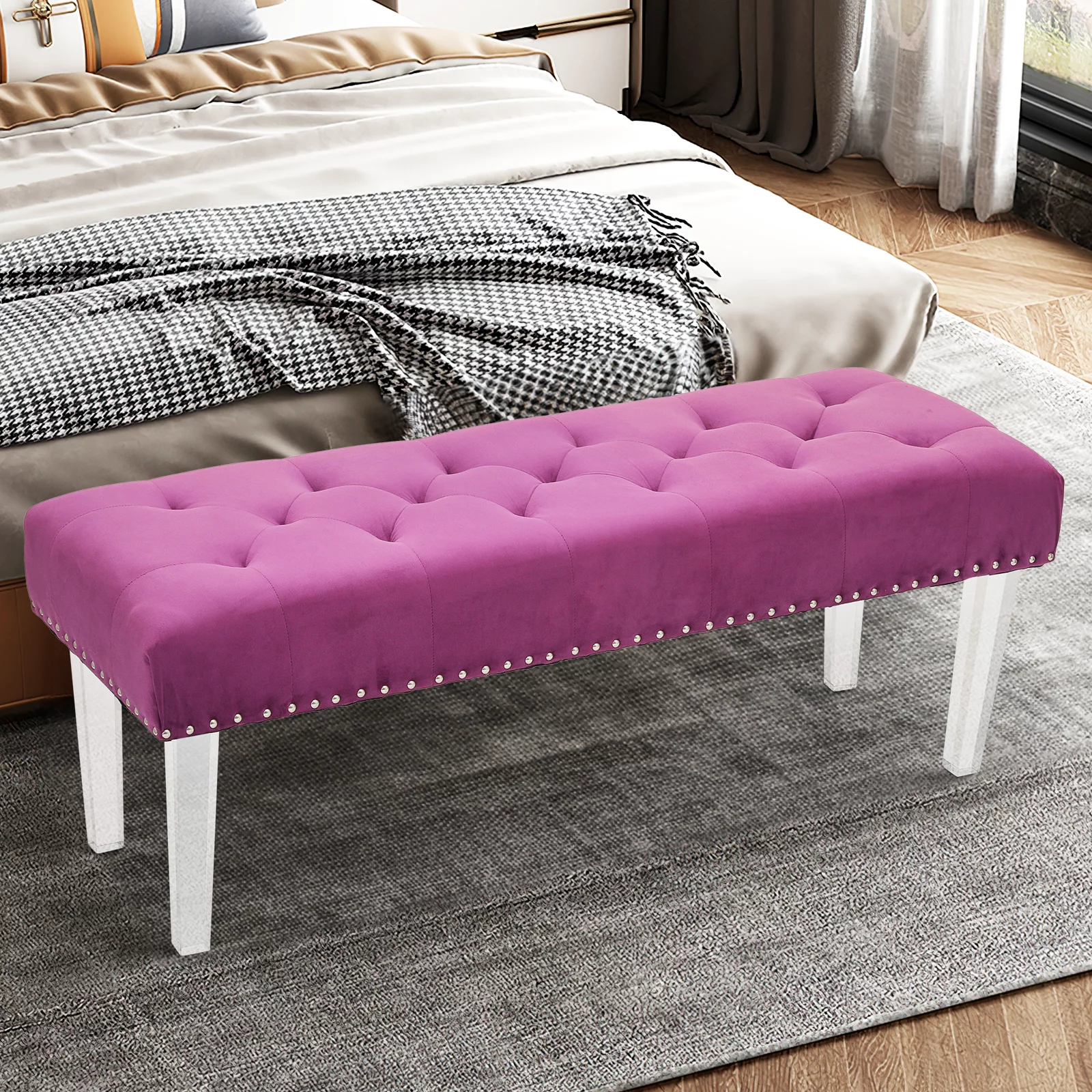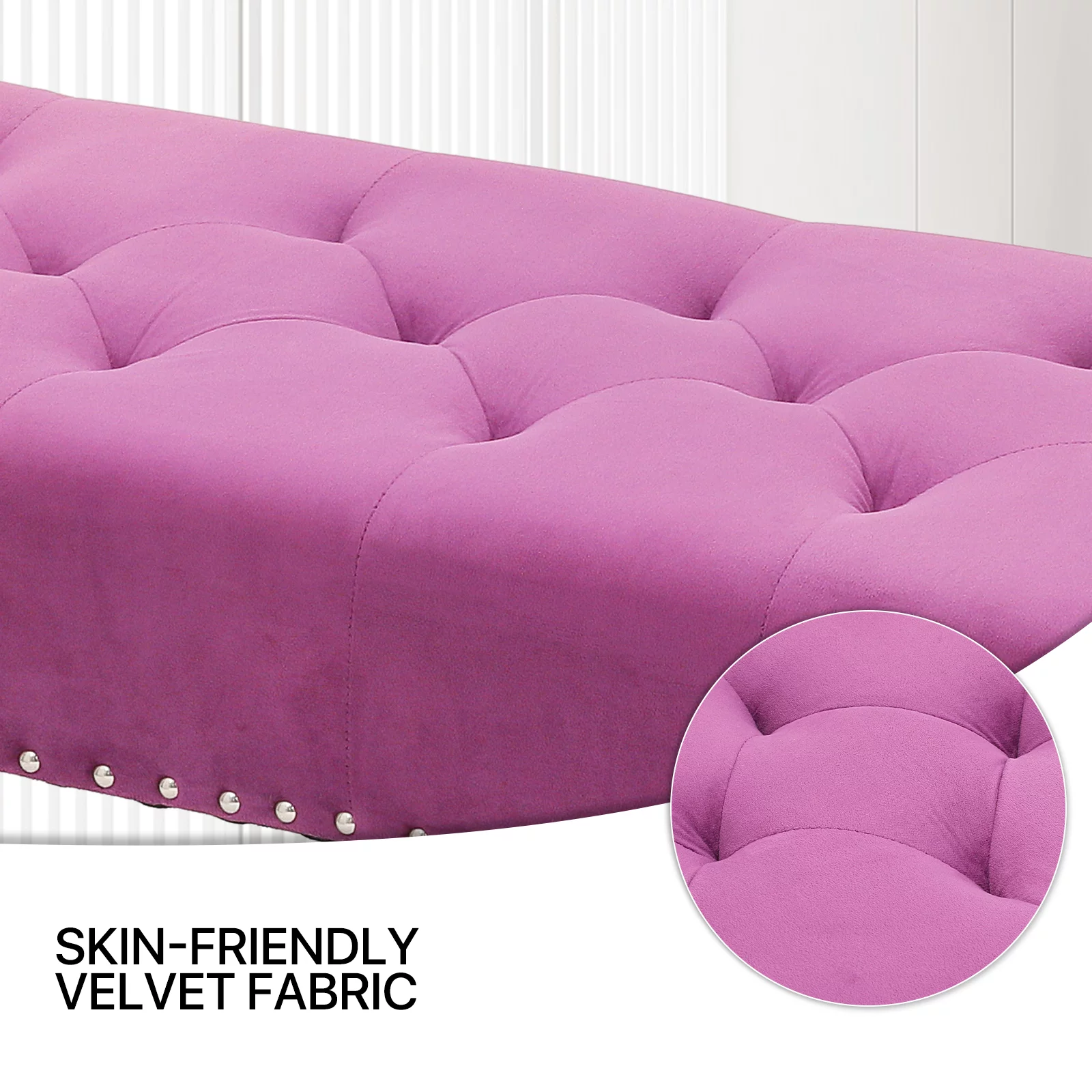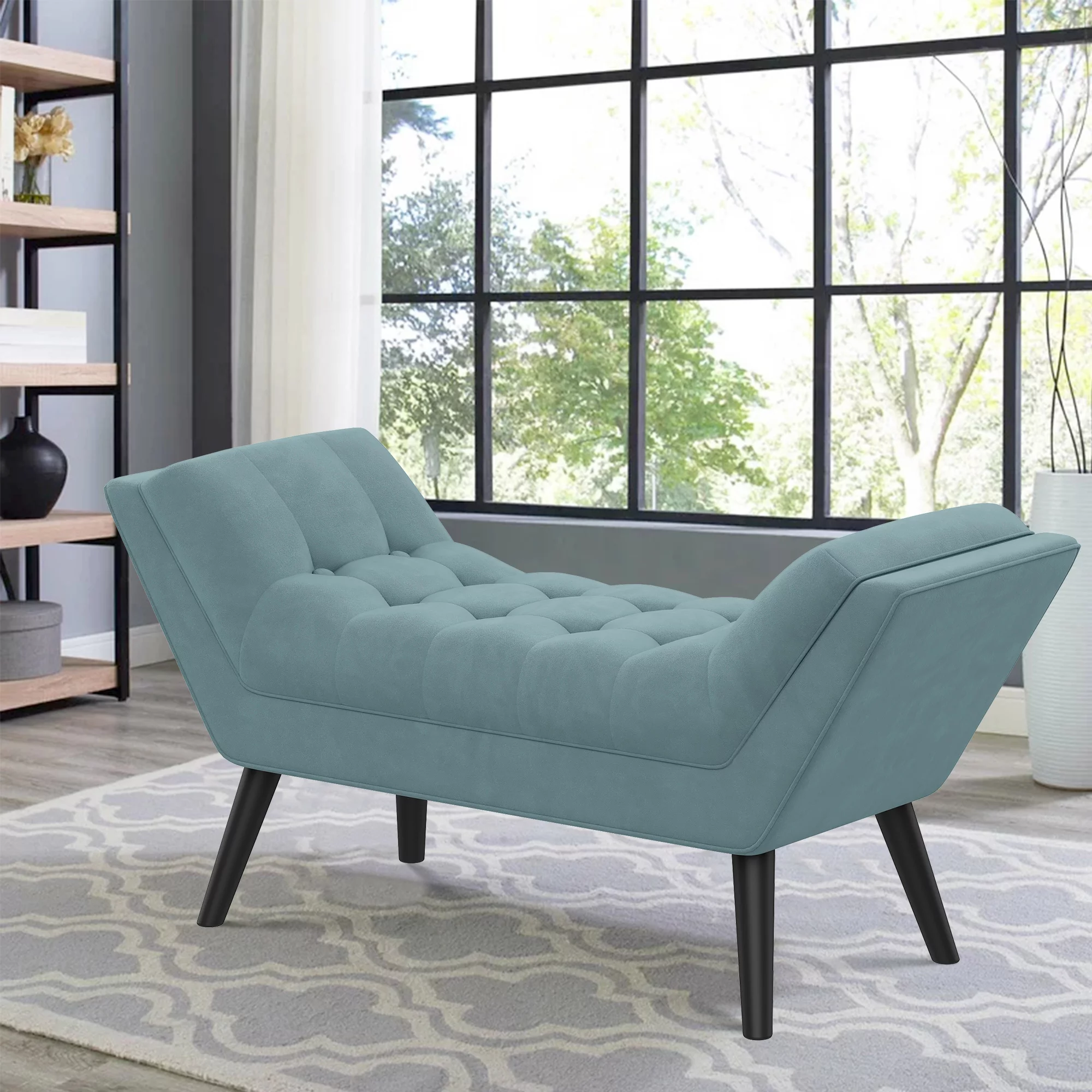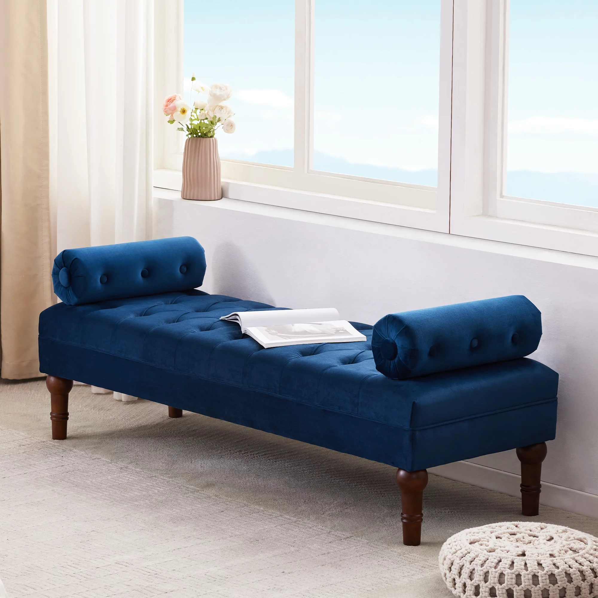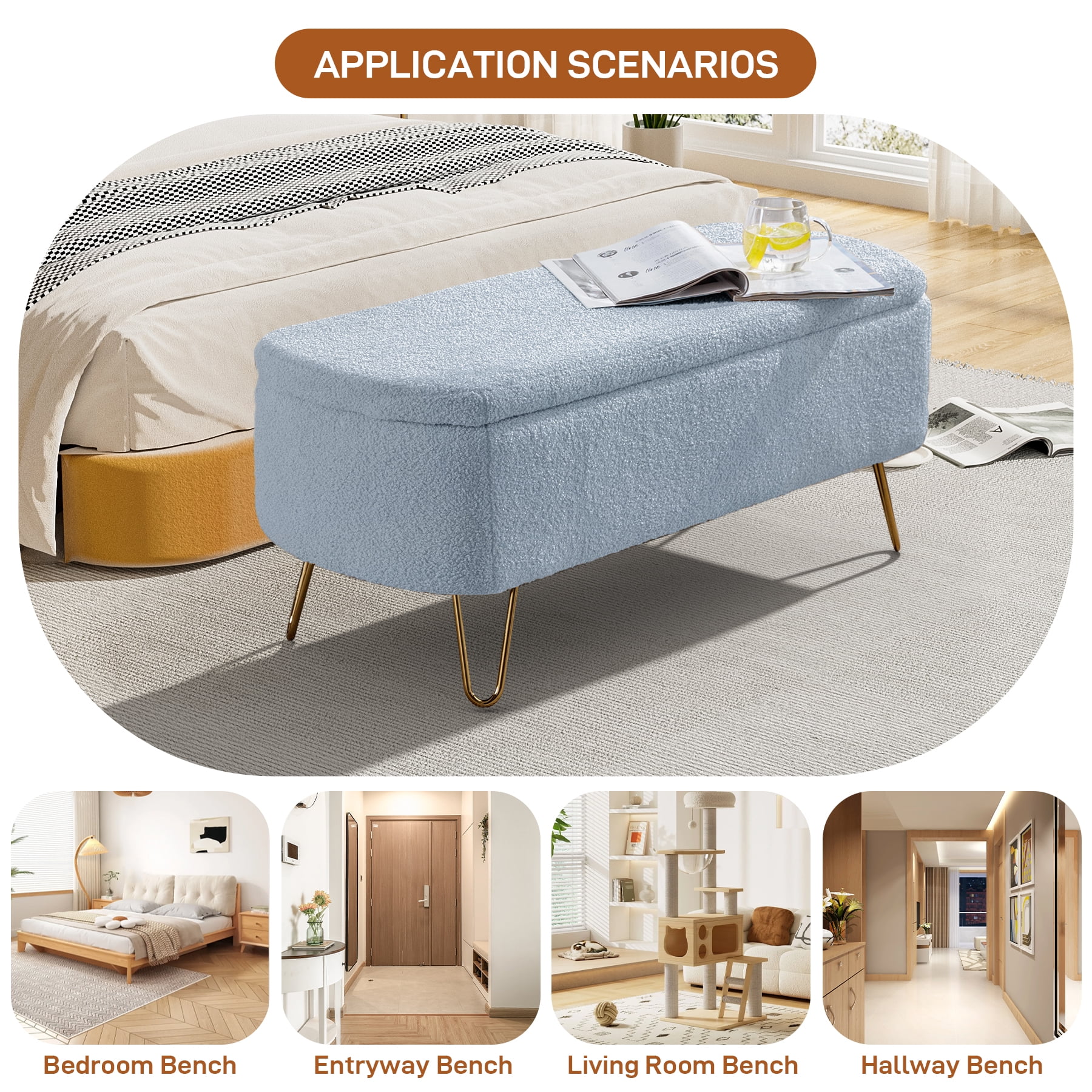 Andeworld Bed Bench Upholstered Tufted Footstool Entryway Ottoman Bench Two Seaters (Blue)