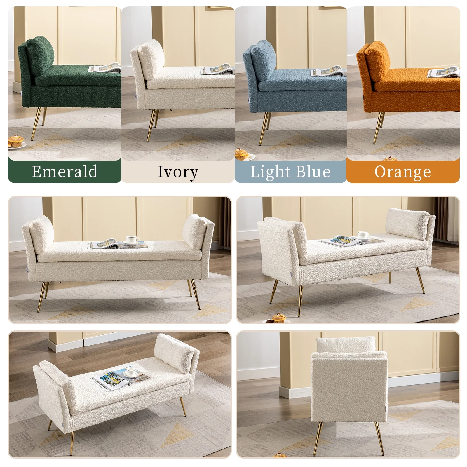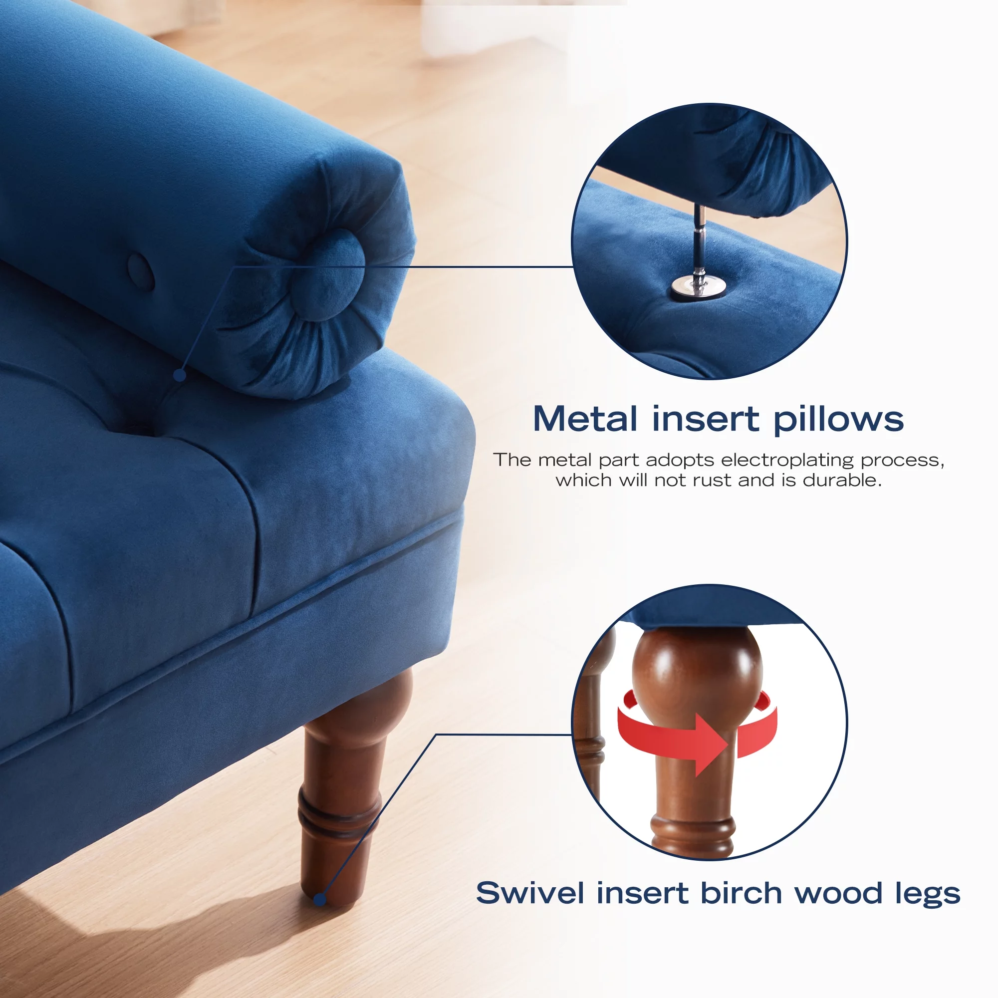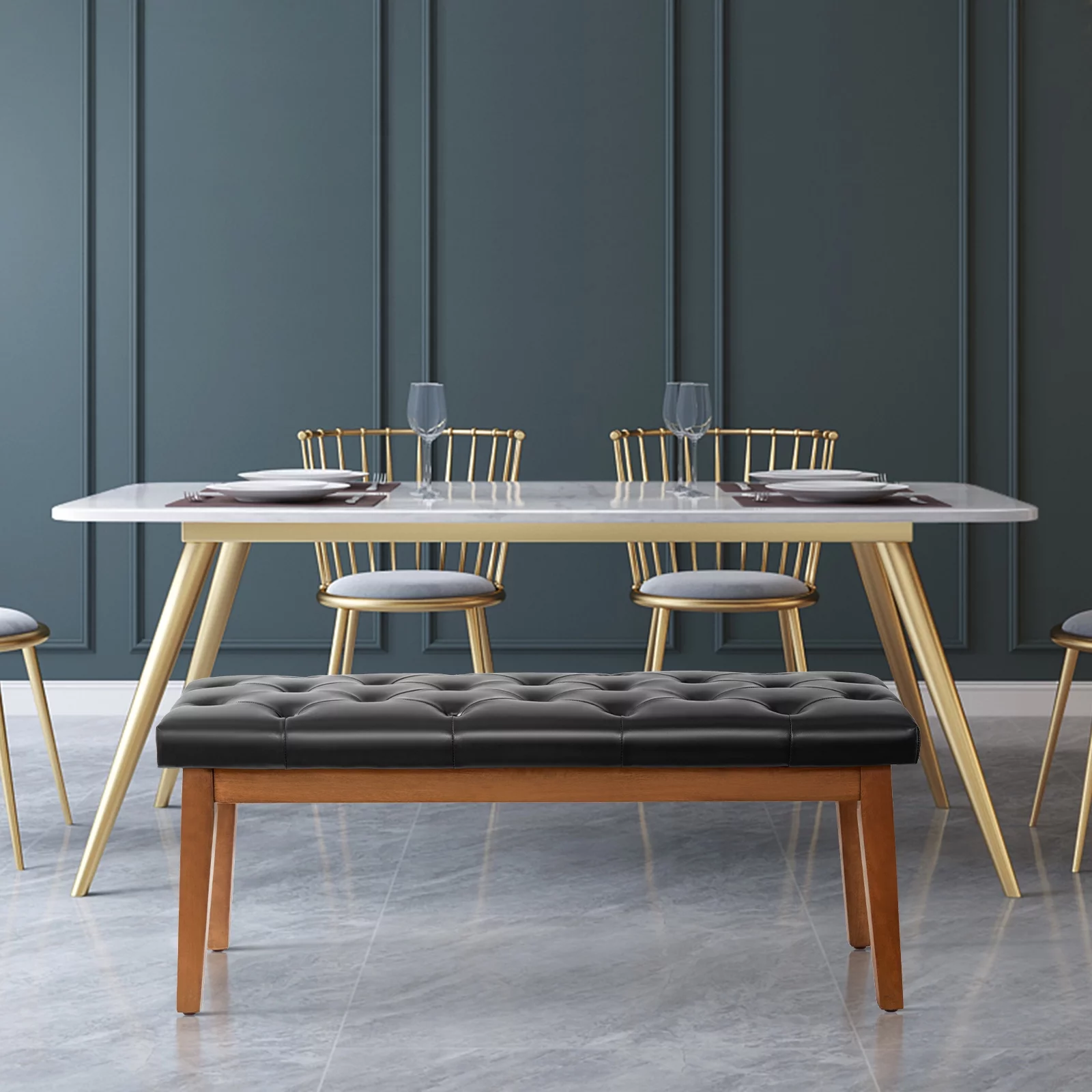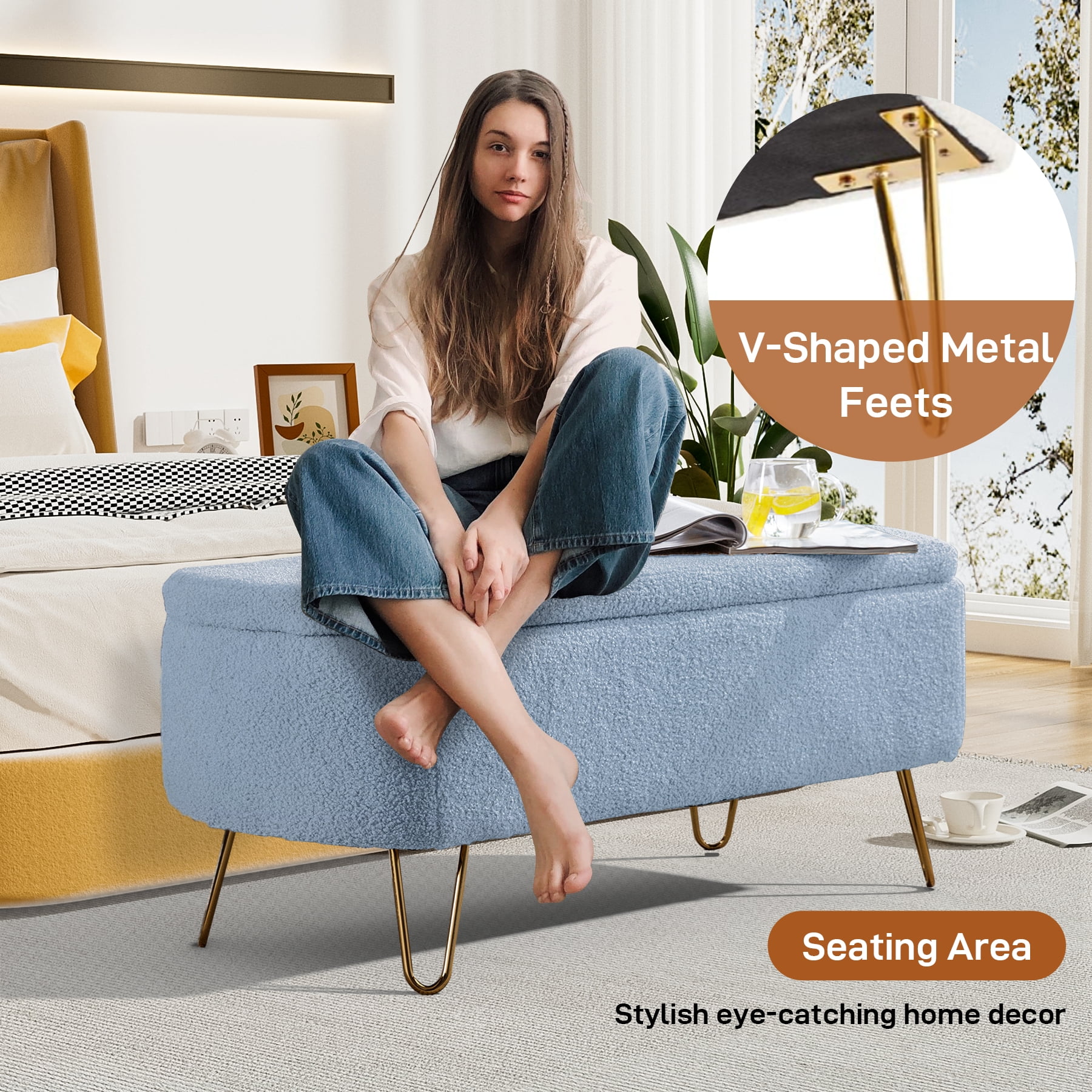 Andeworld Bed Bench Upholstered Tufted Footstool Entryway Ottoman Bench Two Seaters (Blue)