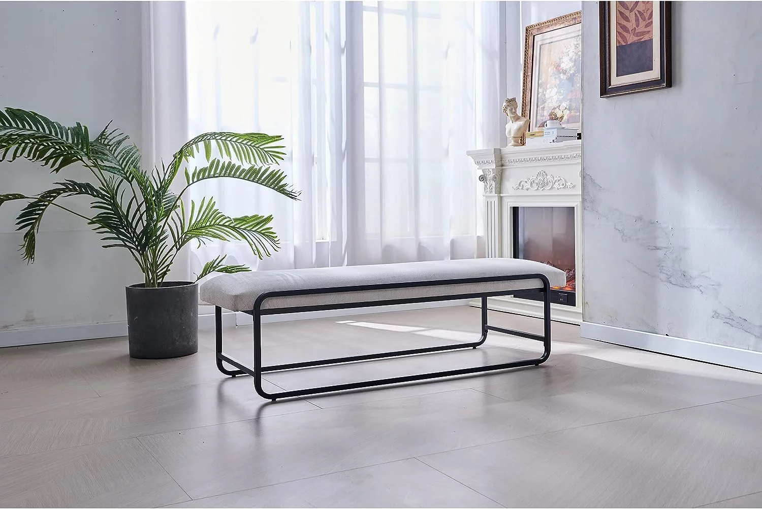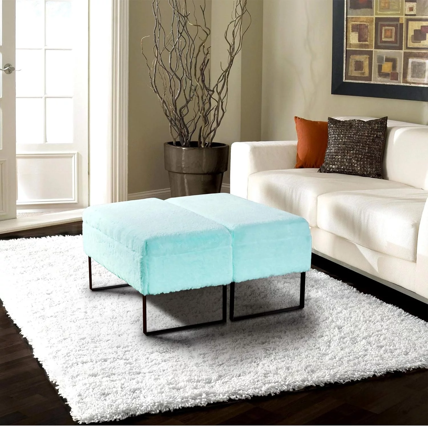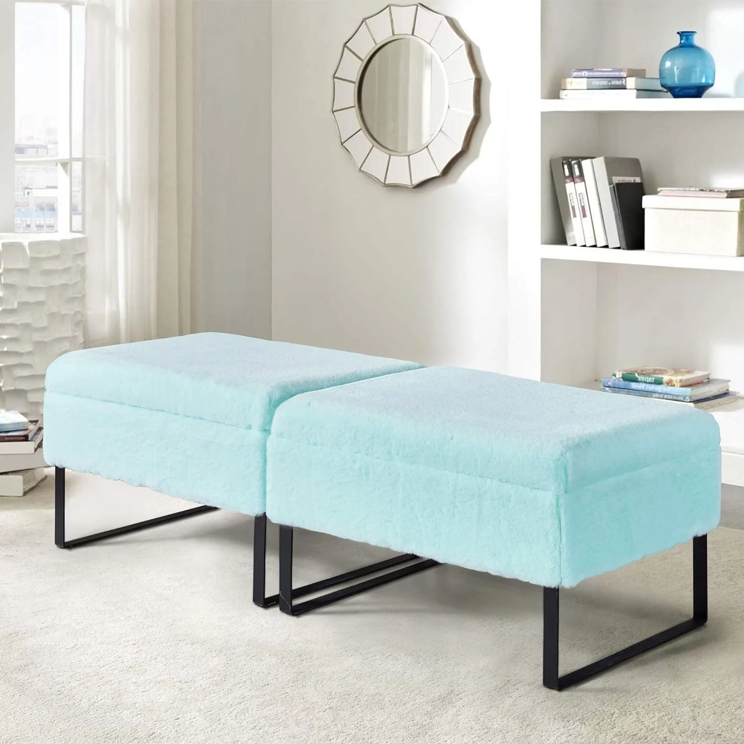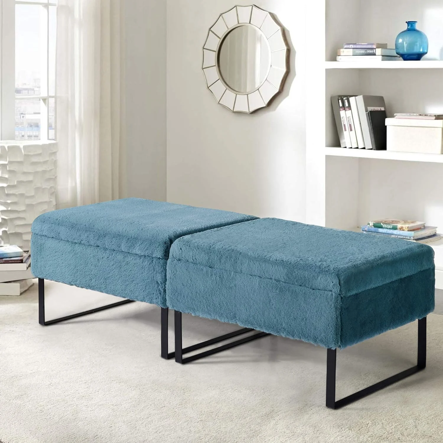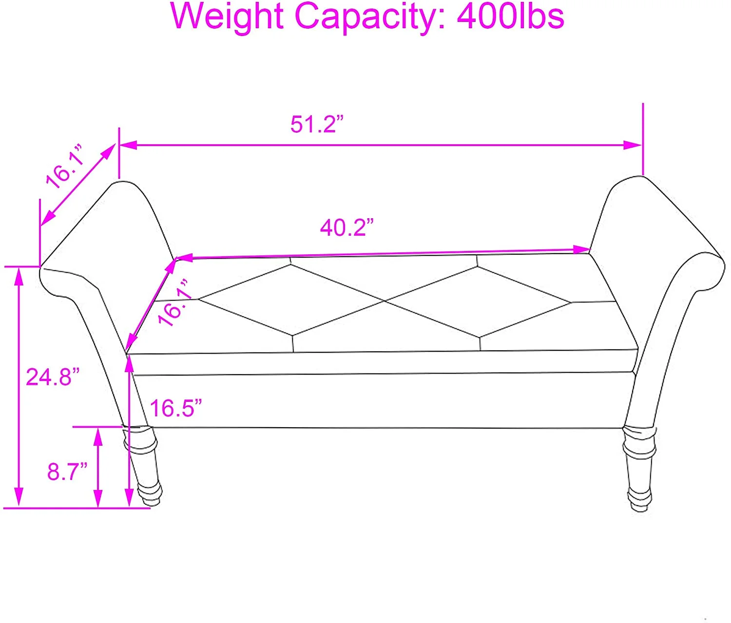 Andeworld Bed Bench Upholstered Tufted Footstool Entryway Ottoman Bench Two Seaters (Blue)