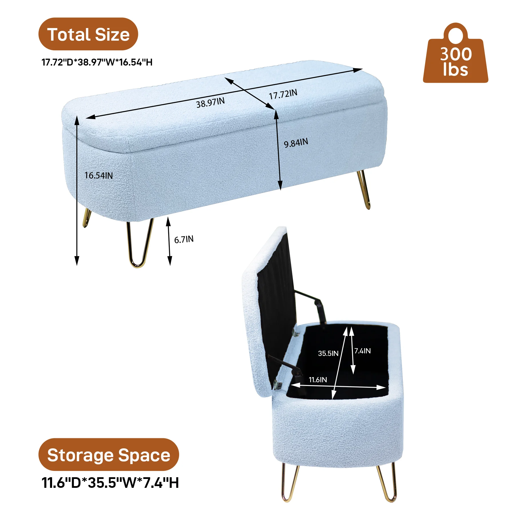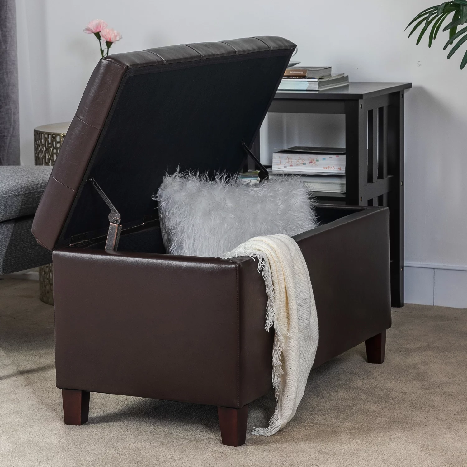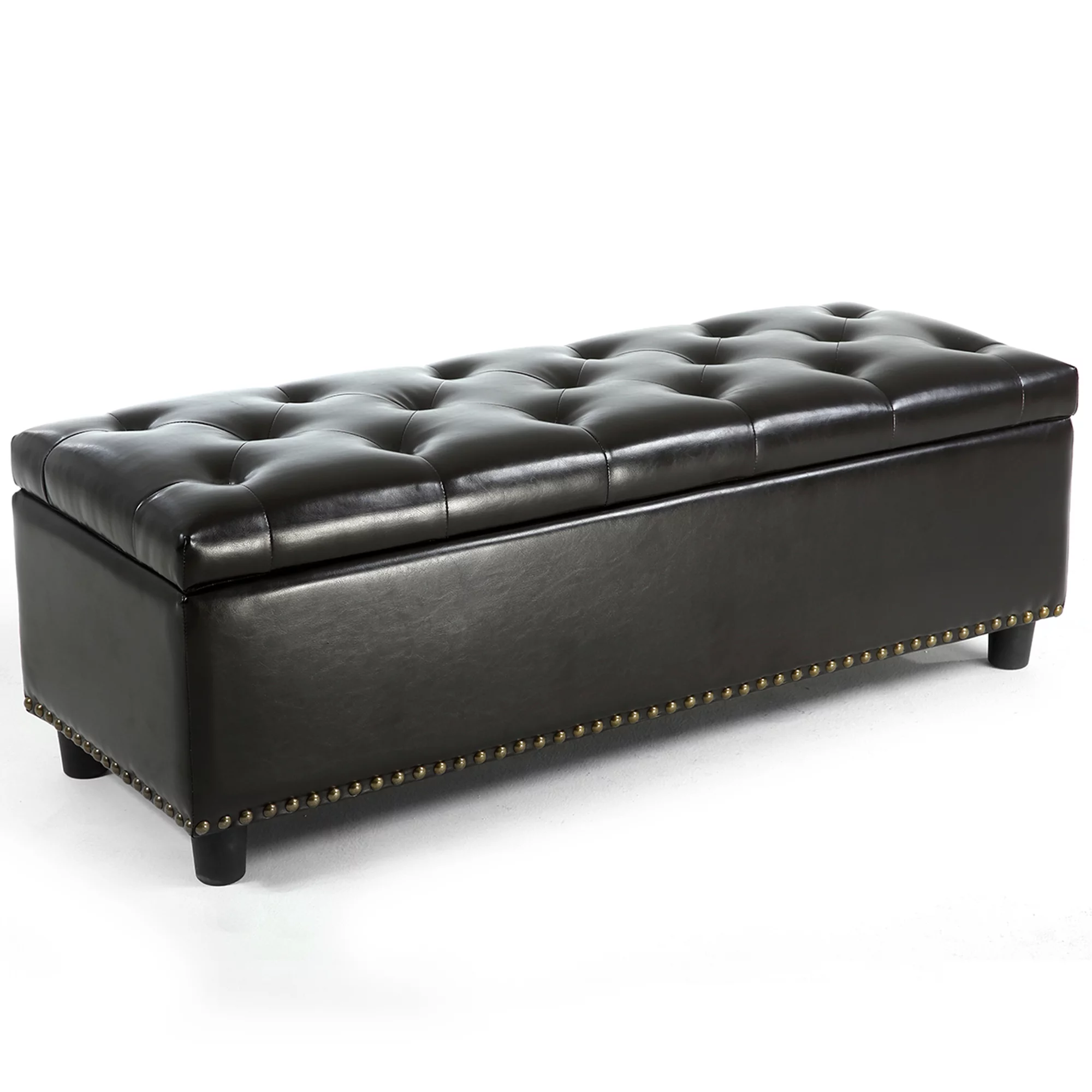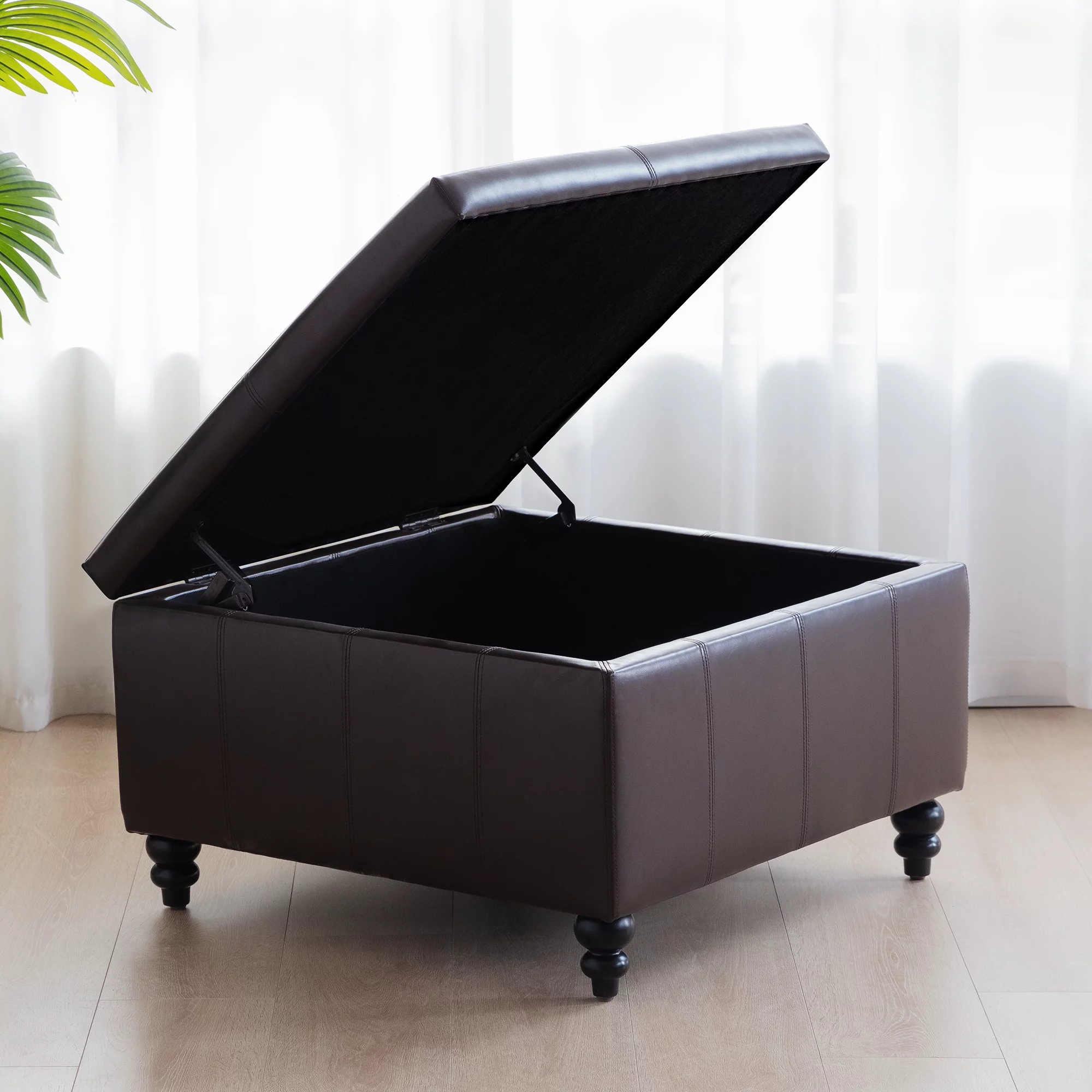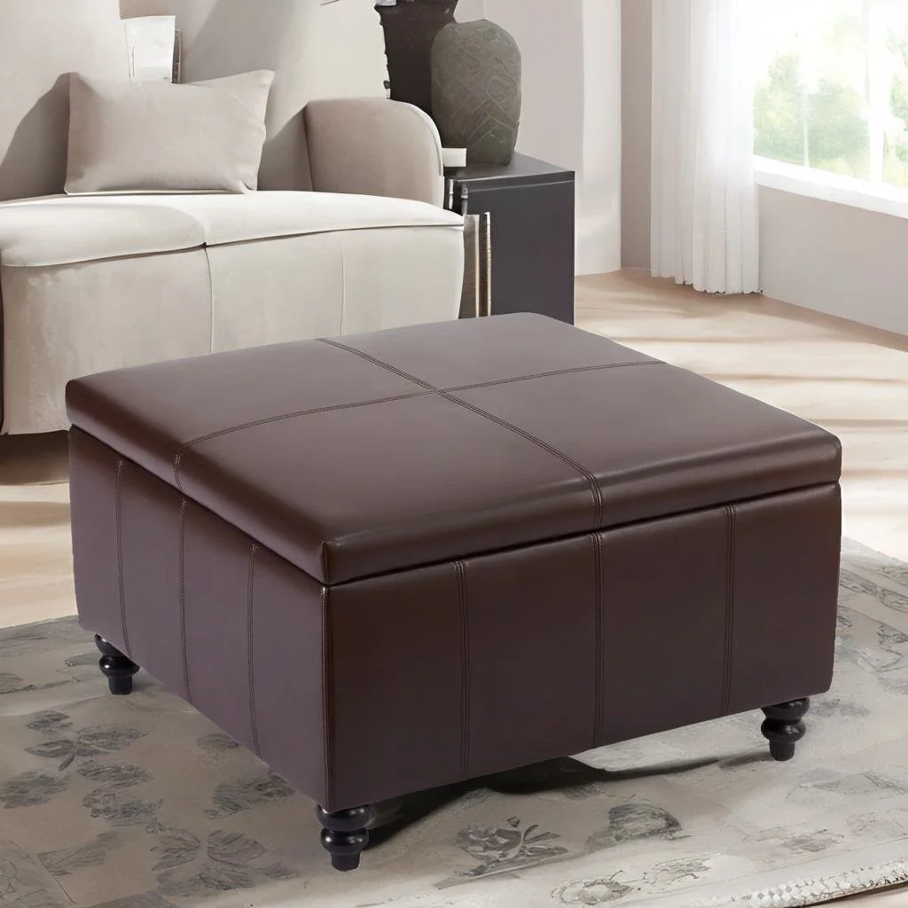Homebeez Storage Ottoman Bench,Folding Bench Chest Foot Rest Stool,End of Bed Bench,Brown