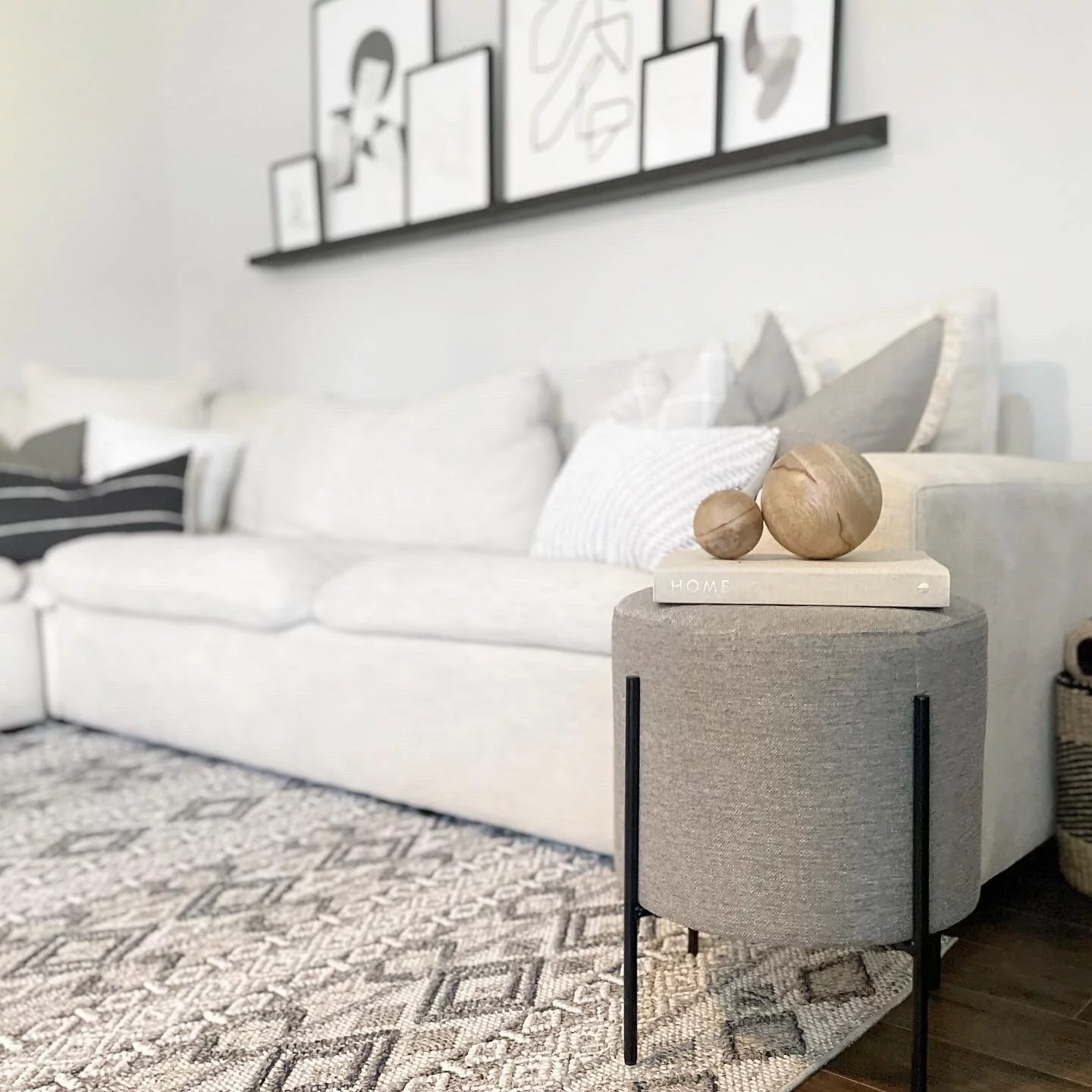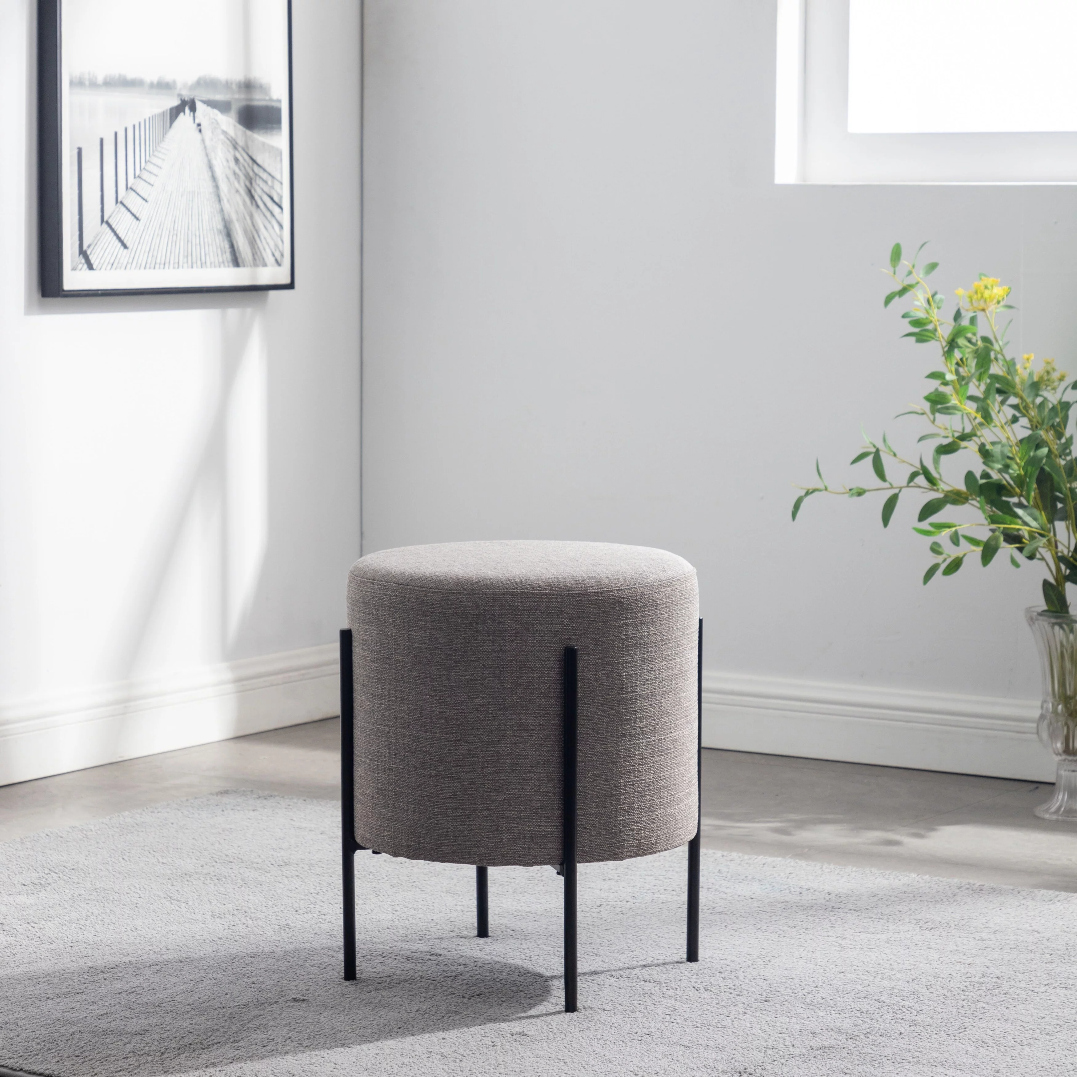 7th Haven Inc. WOVENBYRD 16" Modern Round Ottoman with metal base Grey Polyester