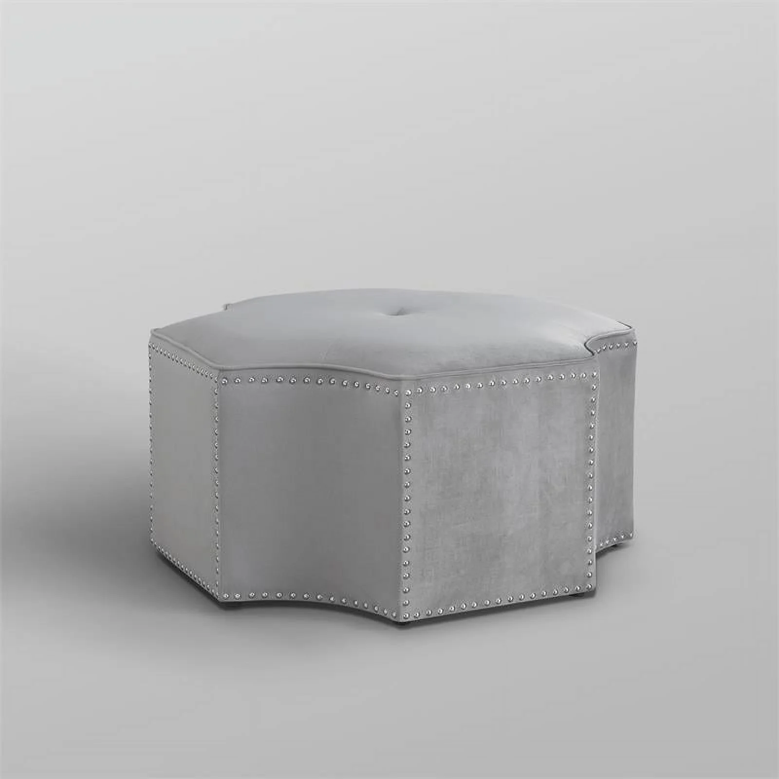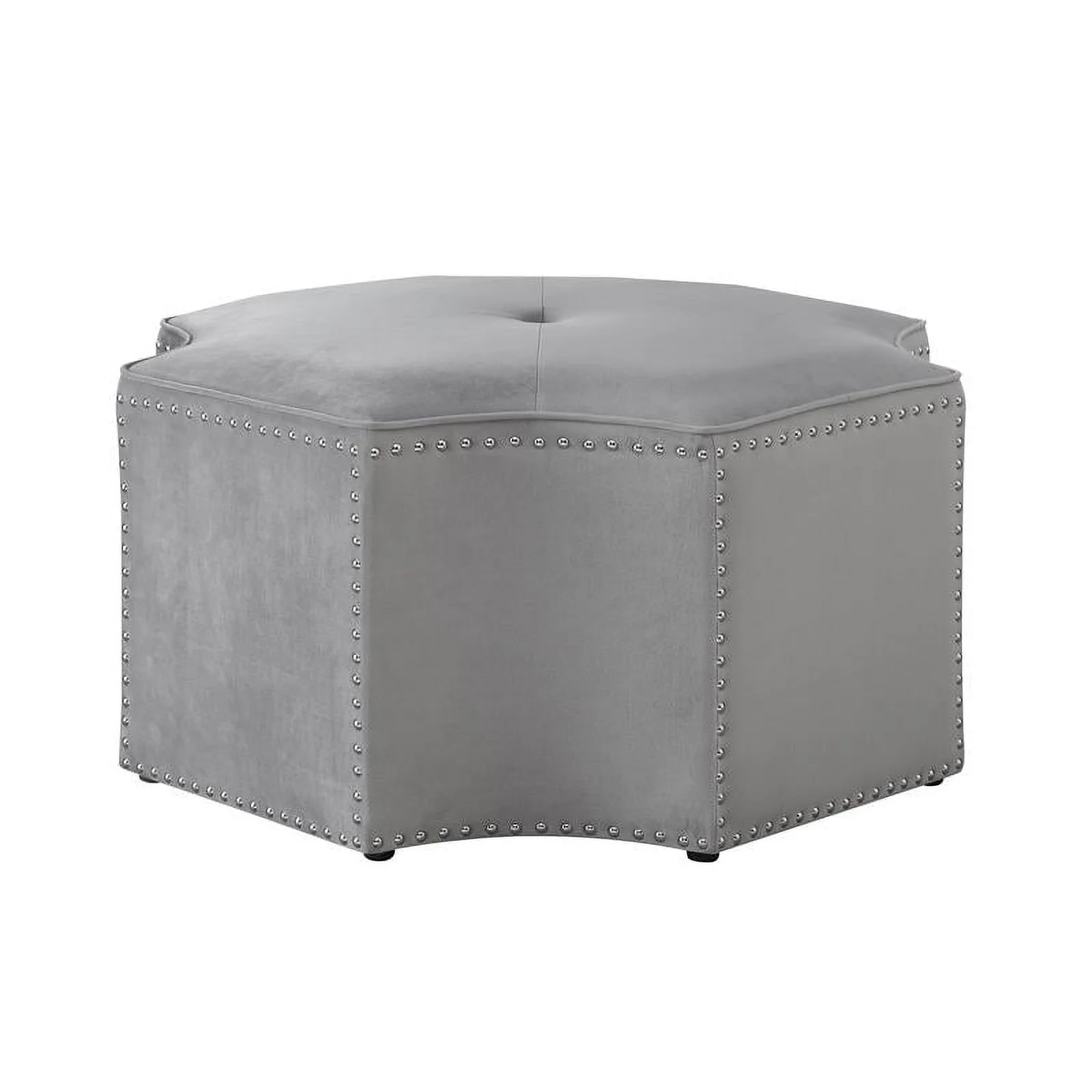 Posh Living Runrawin Velvet Upholstered Octagon Cocktail Ottoman in Gray