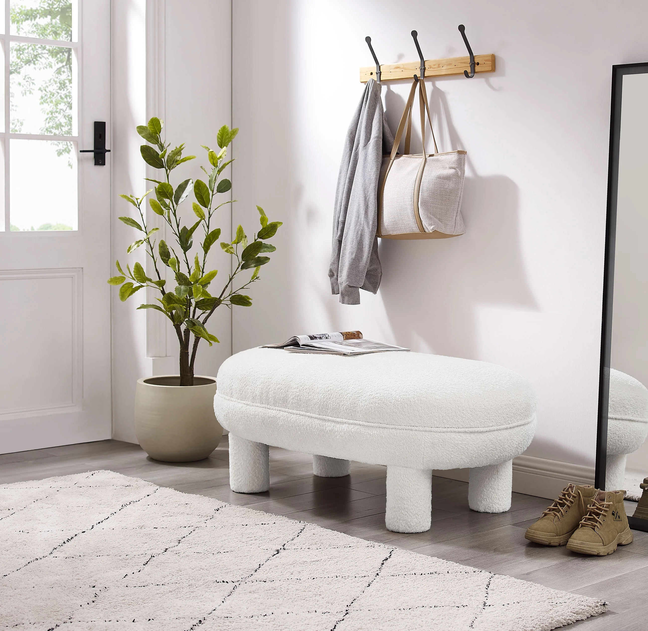 Leather Storage Ottoman Bench Storage Chest for Sofa Couch Bedroom End of Bed Living Room Silver-white