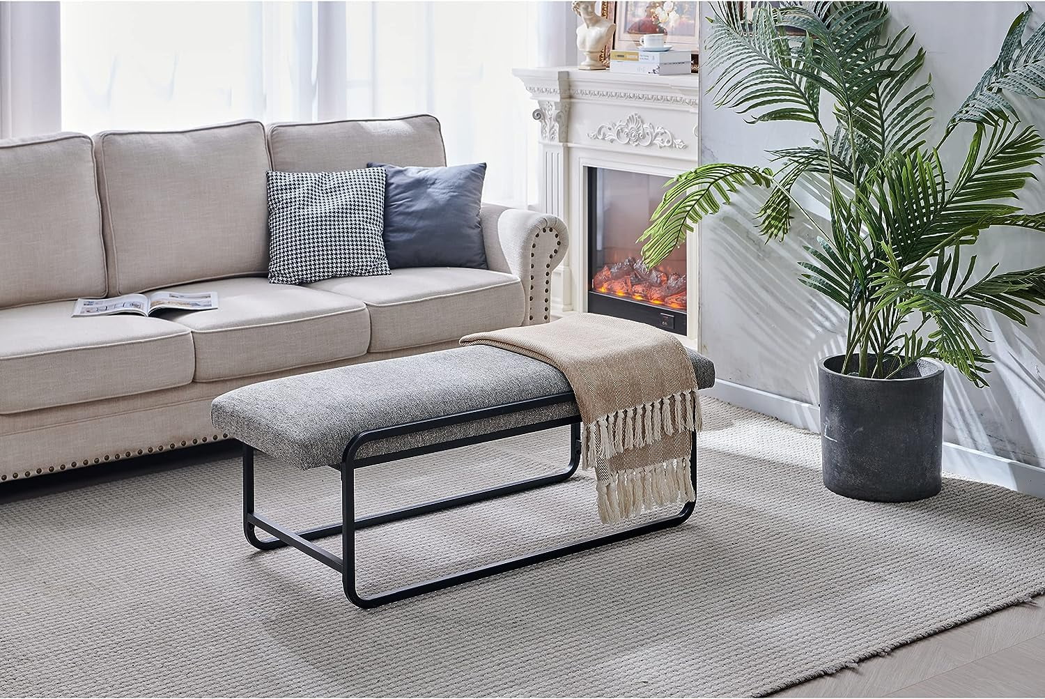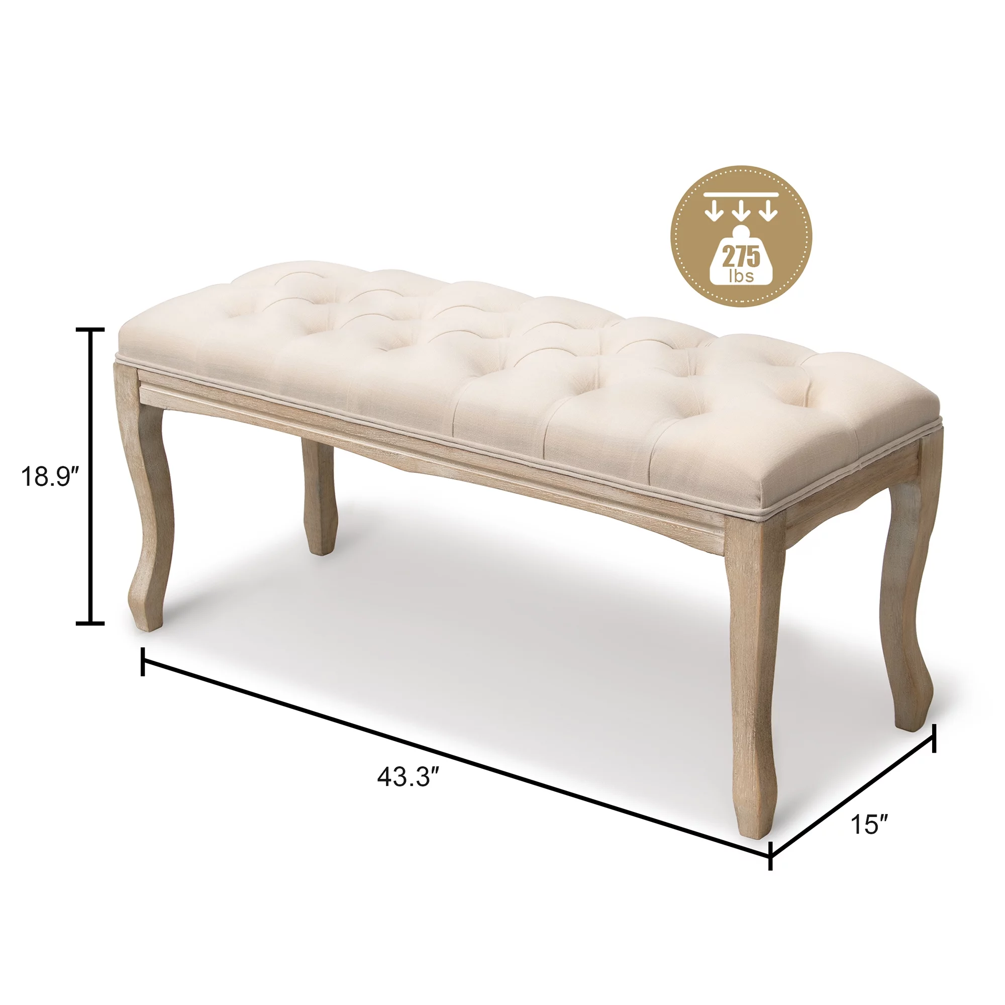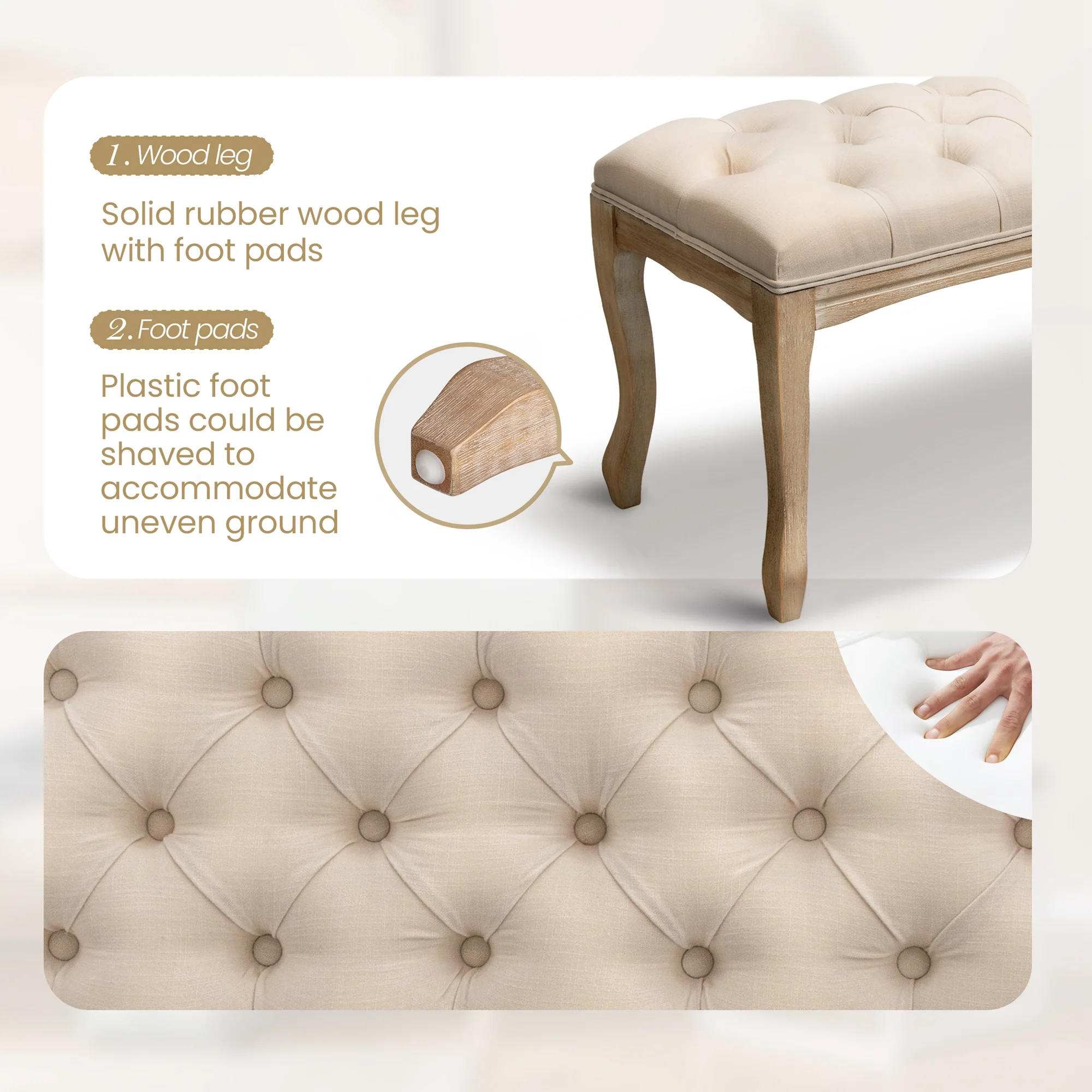 Crestlive Products Upholstered Tufted Bed Bench, Wood Ottoman Rectangular Footrest,Beige