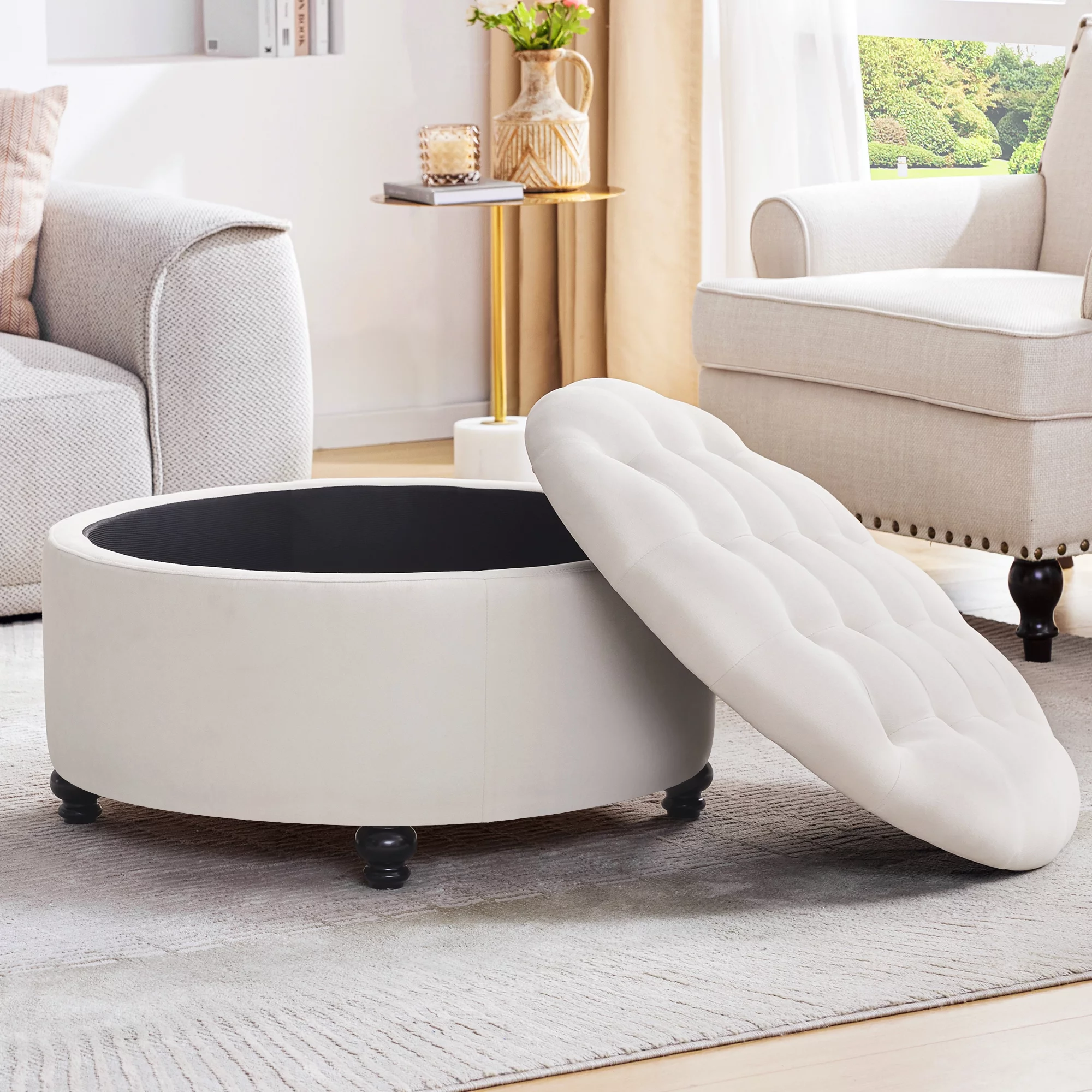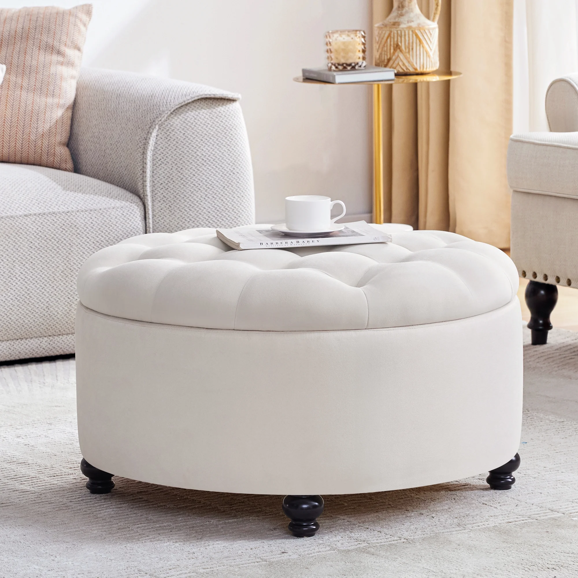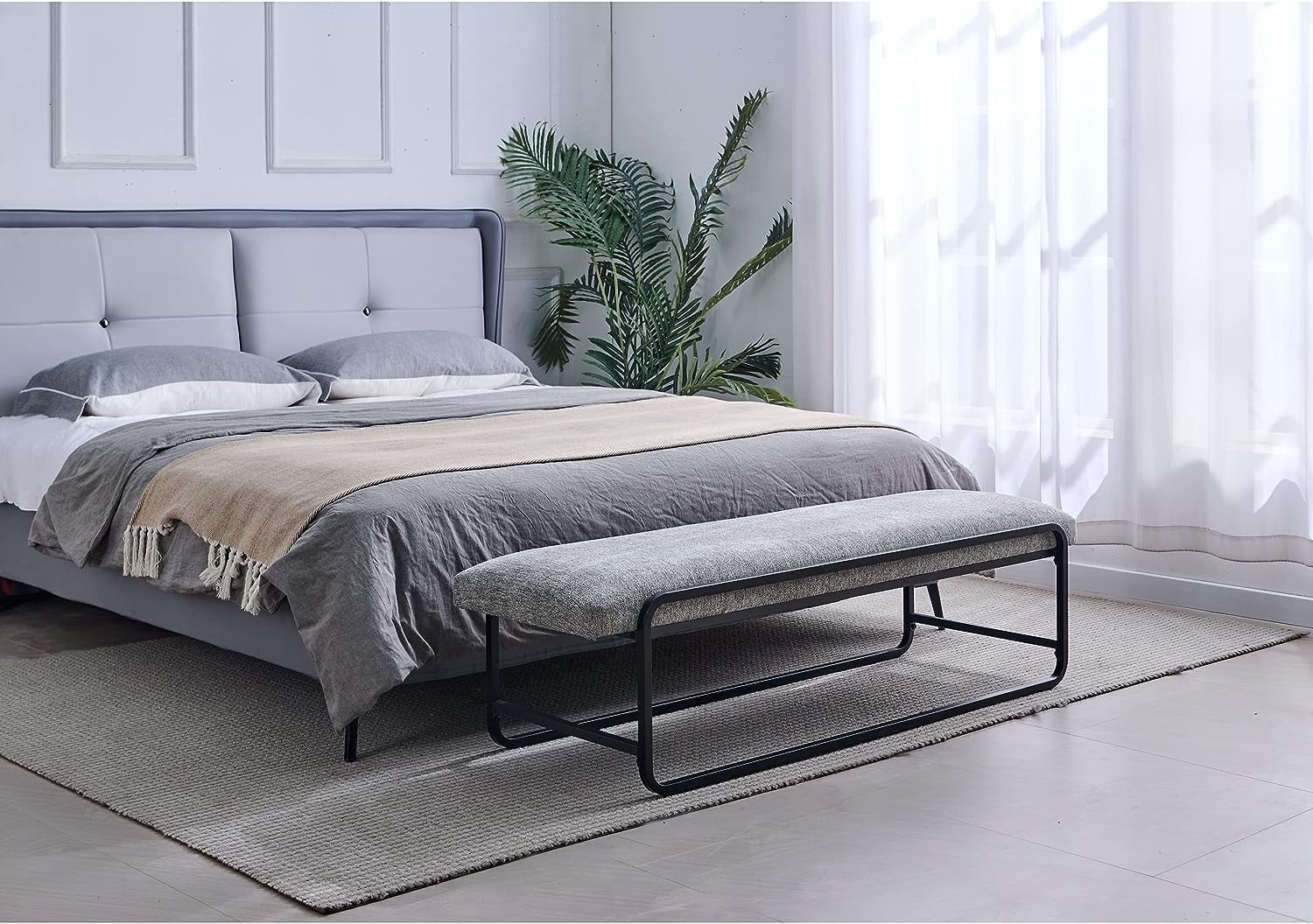 Crestlive Products Upholstered Tufted Bed Bench, Wood Ottoman Rectangular Footrest,Beige