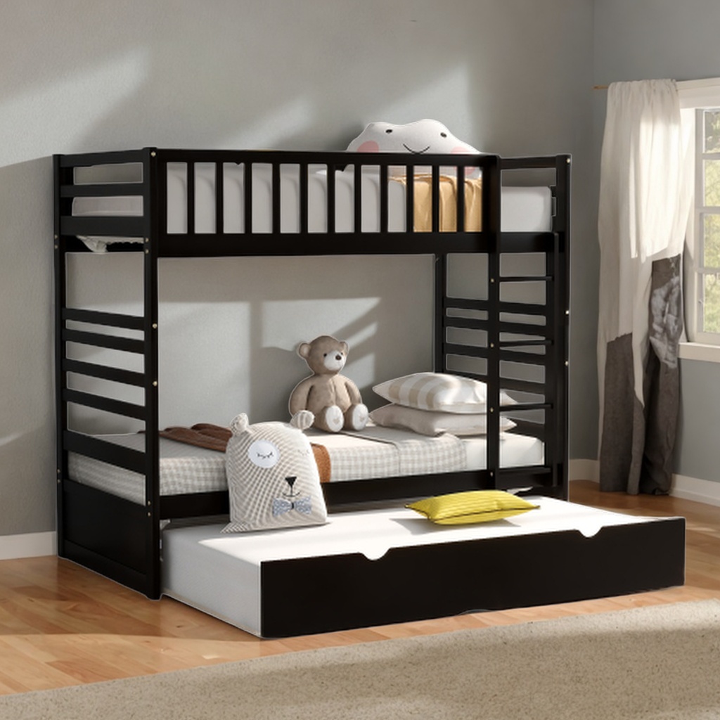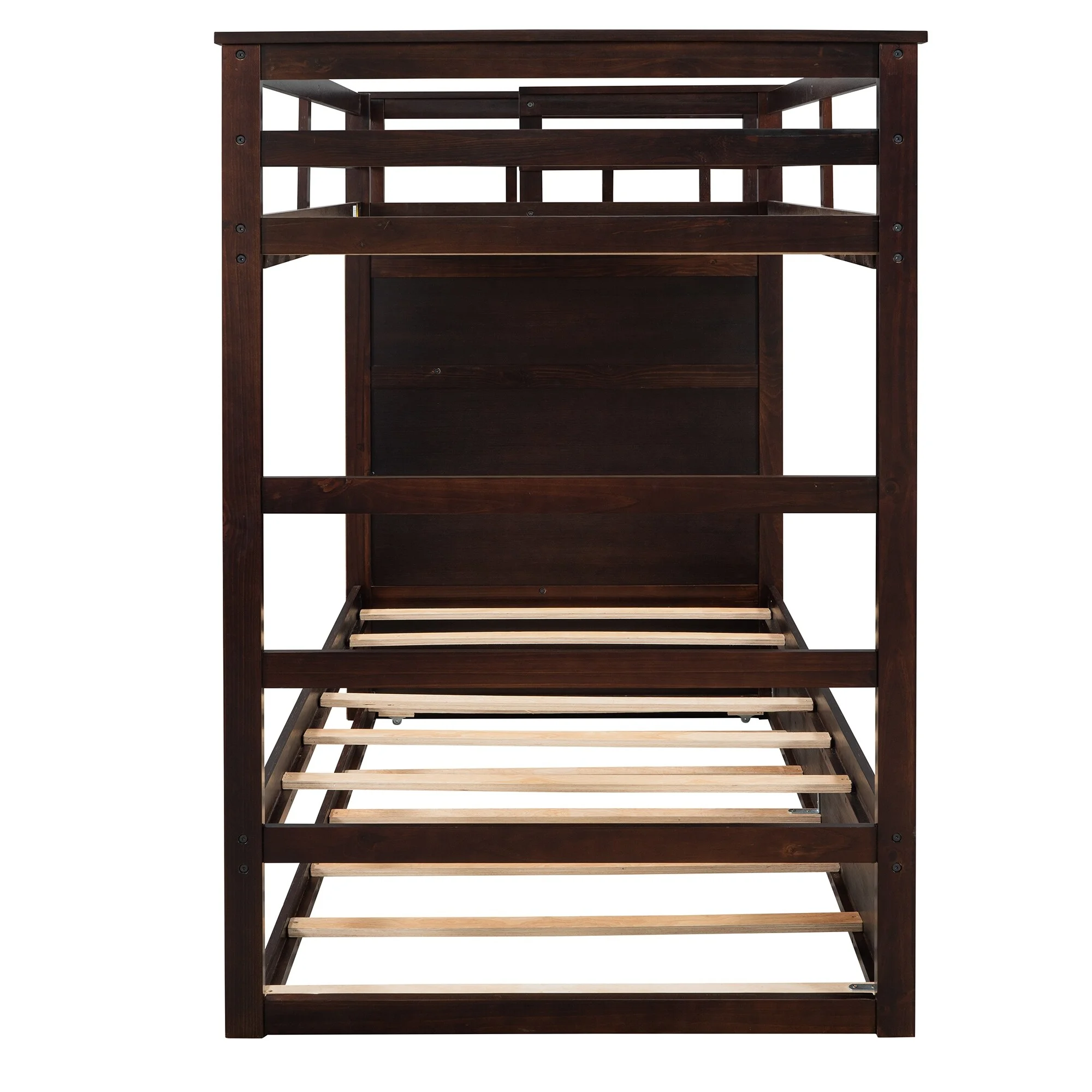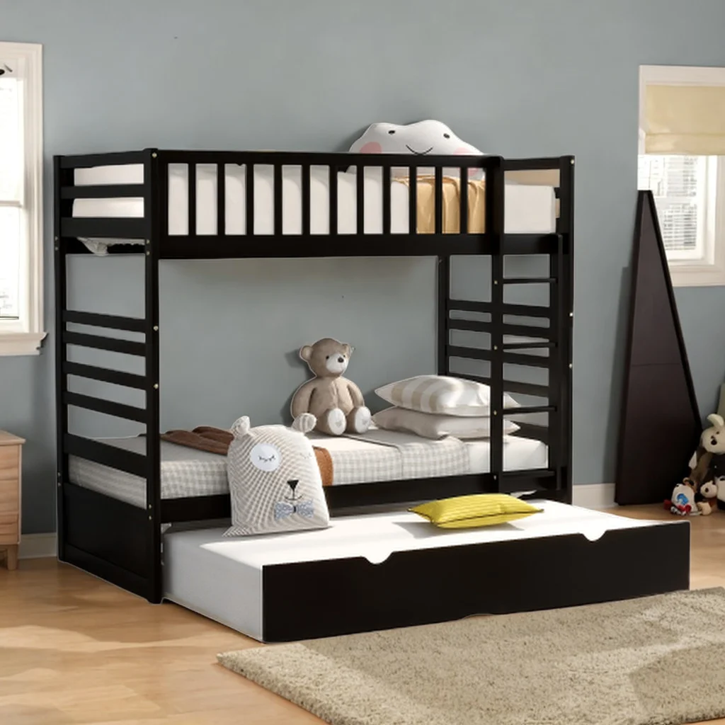Twin Bunk Beds for Kids with Safety Rail and Movable Trundle Bed (Brown)