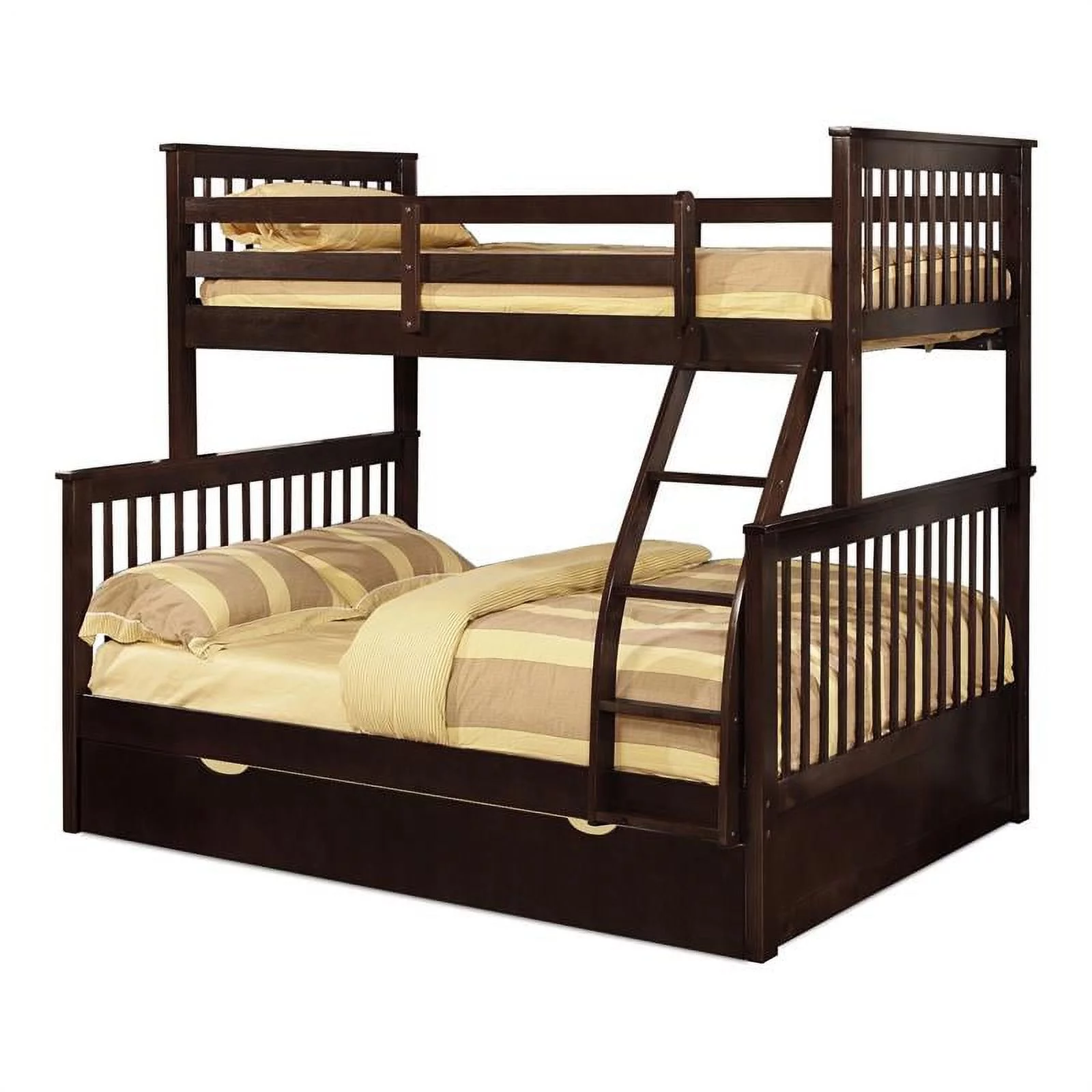 Pivot Direct PD-1015-3CP Full Over Full Mission Bunk Bed in Dark Cappuccino