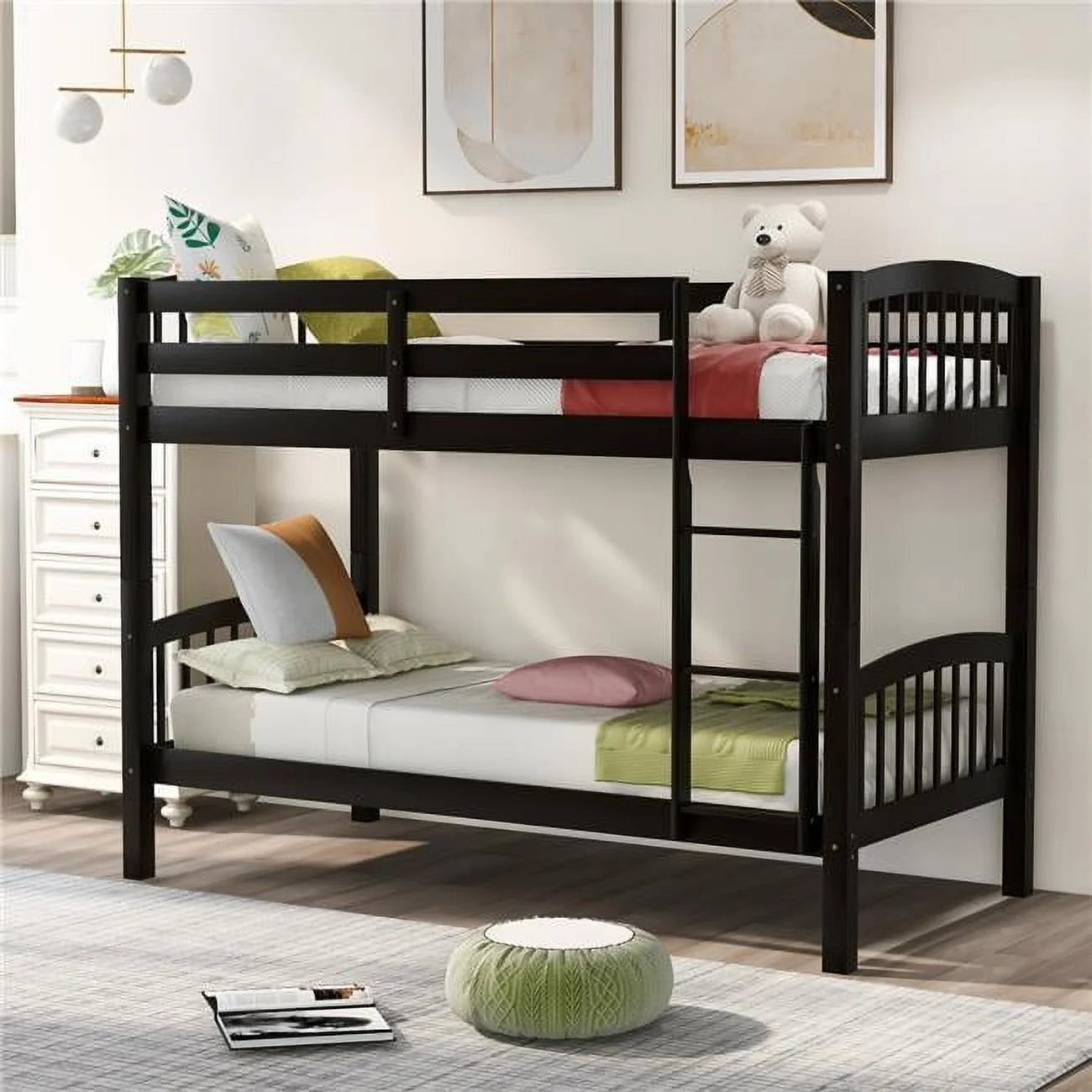 BEKids Traditional Solid Wood Twin/Twin Arched Bunk Bed in Java Brown