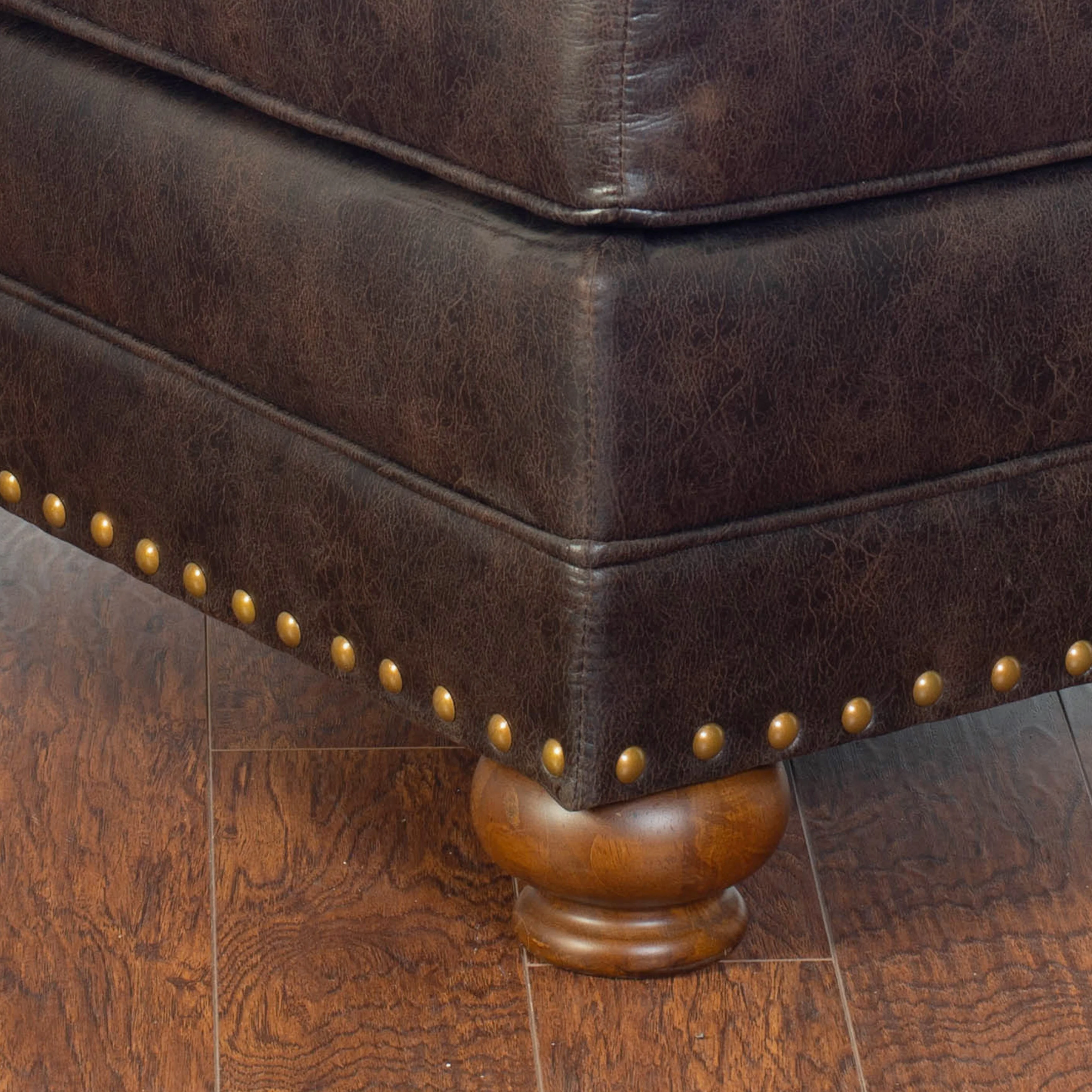 Roundhill Furniture Leinster Fabric Upholstered Nailhead Ottoman in Espresso