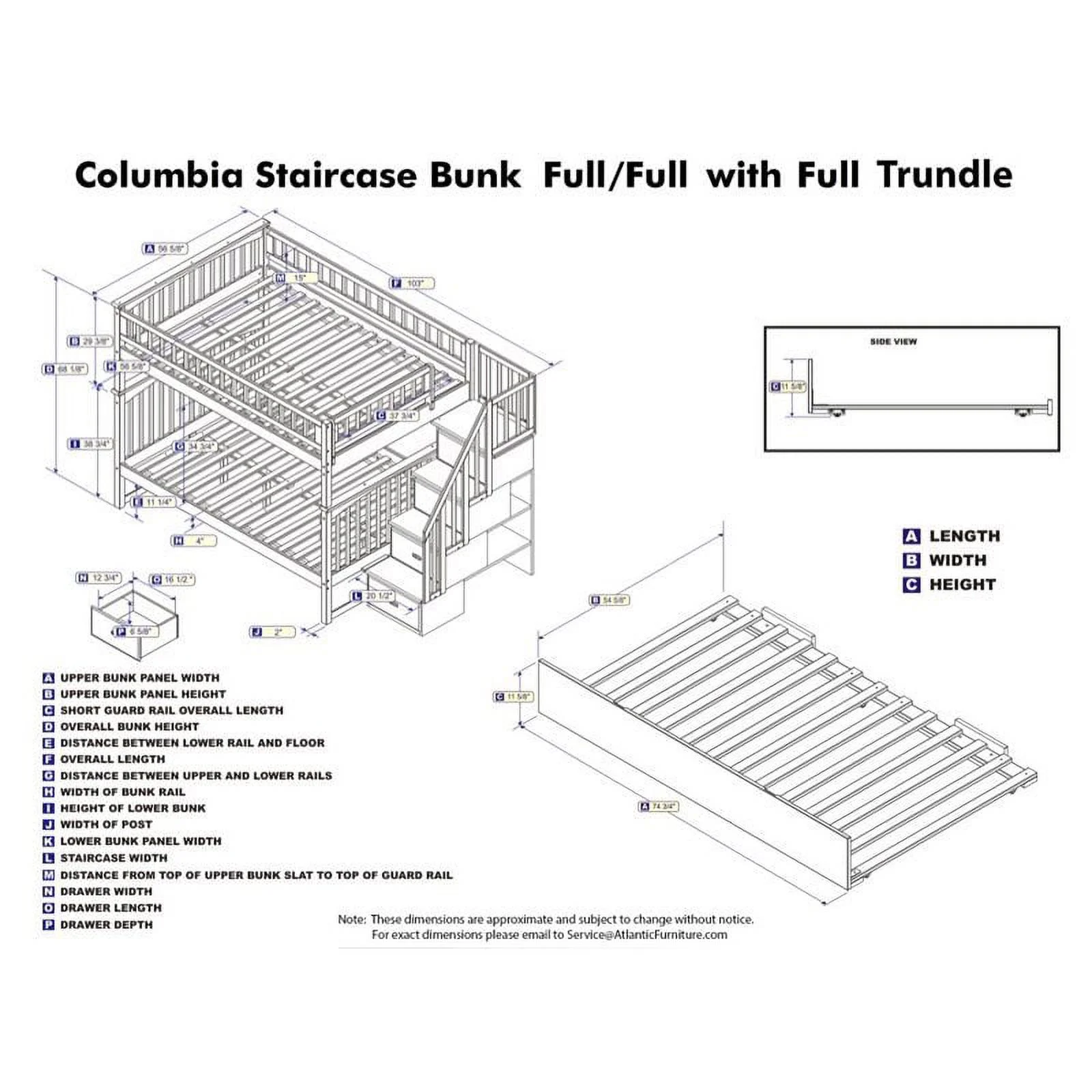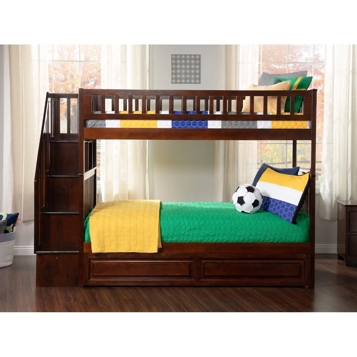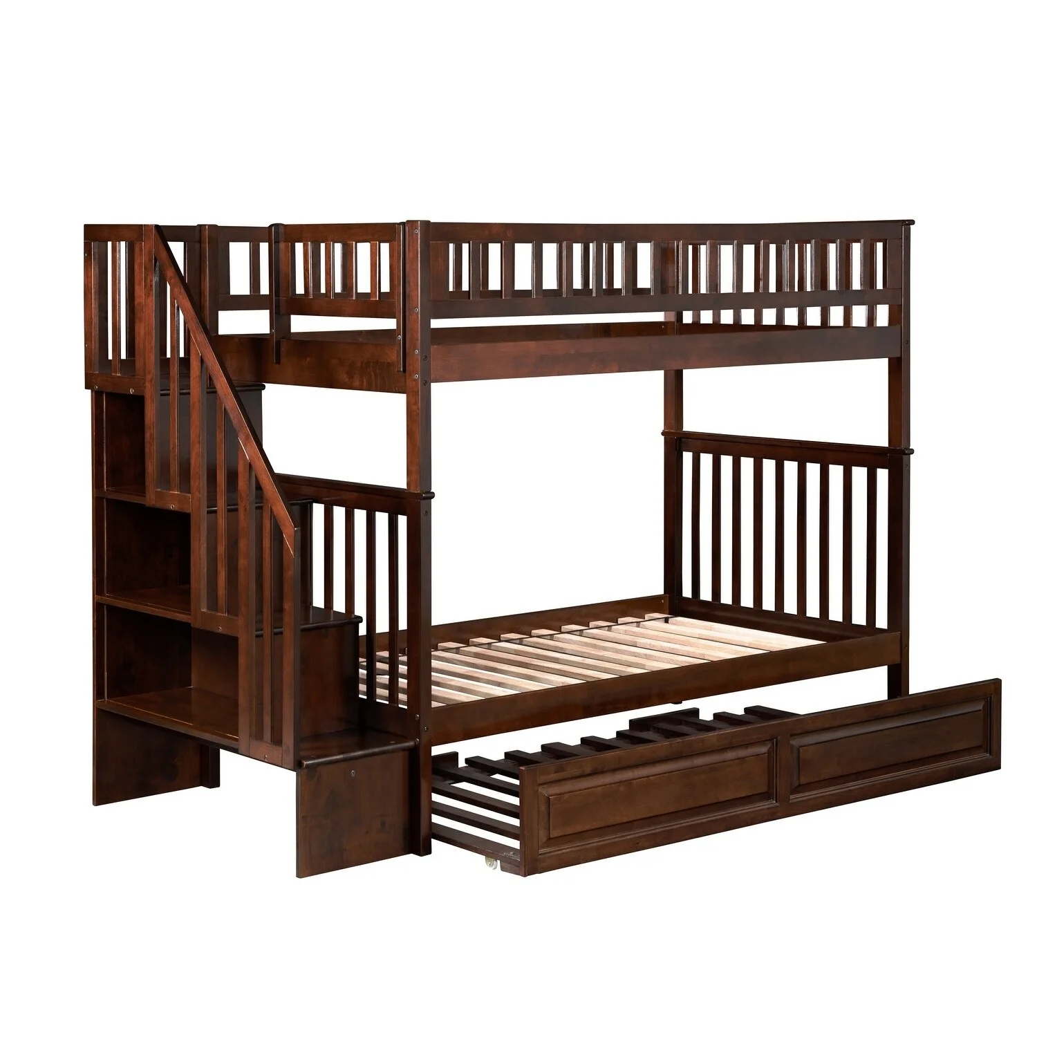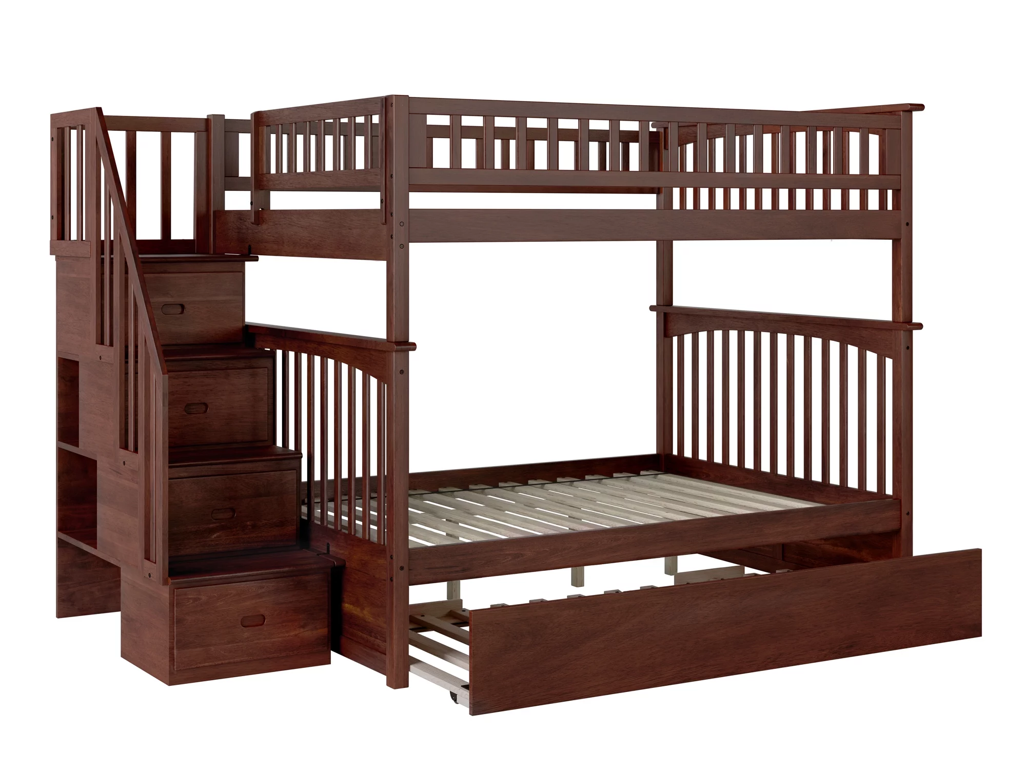 Columbia Staircase Bunk Bed Full over Full with Full Size Urban Trundle Bed in Walnut