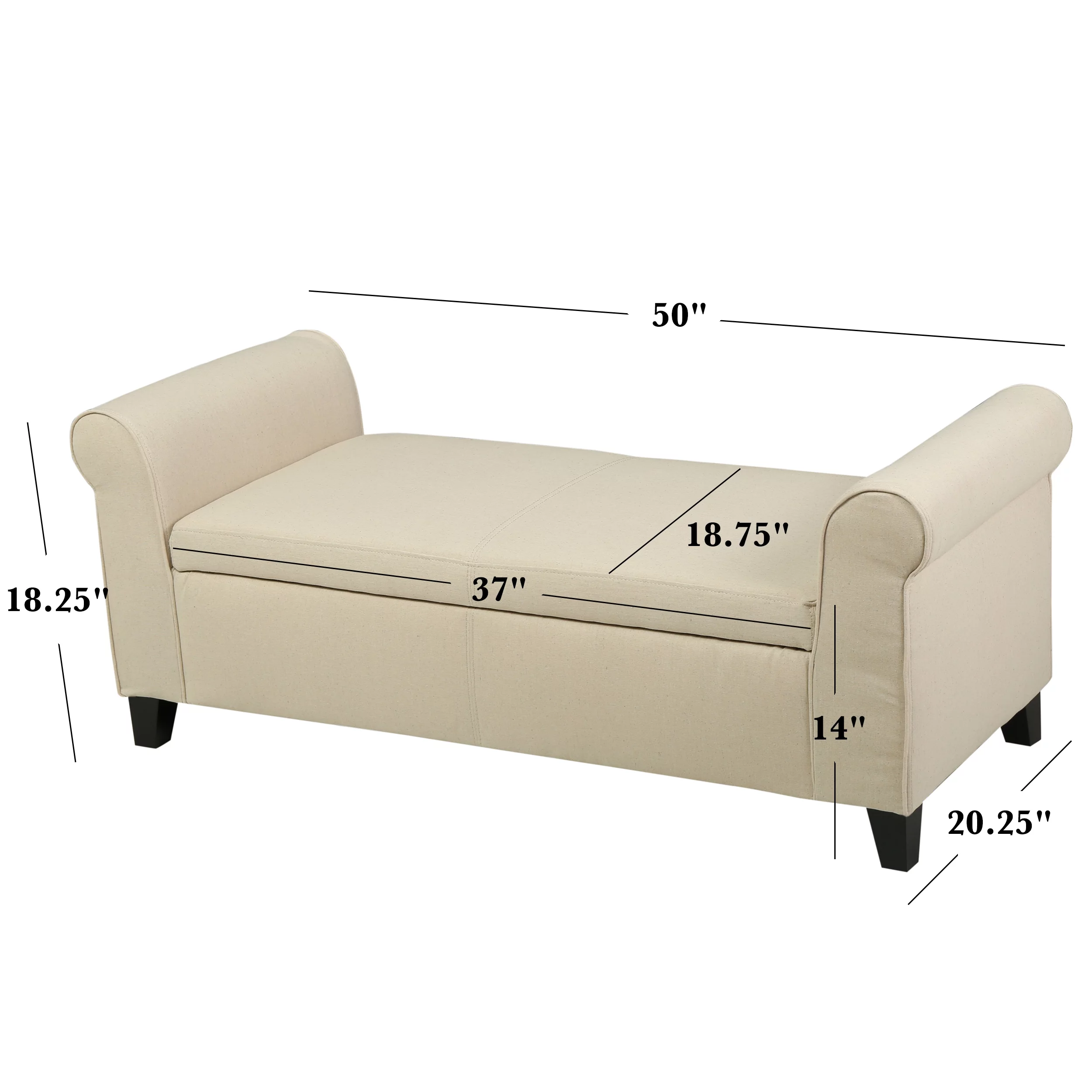 Noble House Haden Contemporary Fabric Upholstered Storage Ottoman Bench with Rolled Arms, Beige