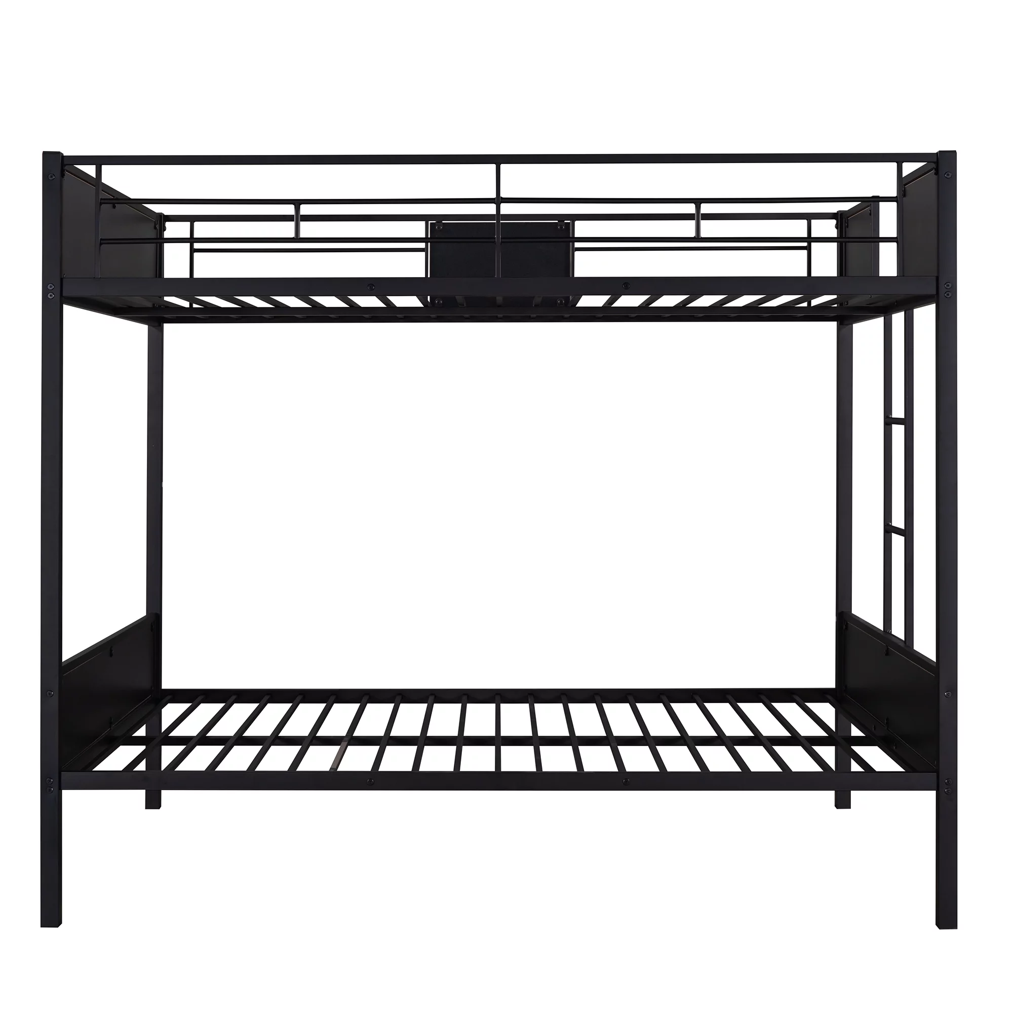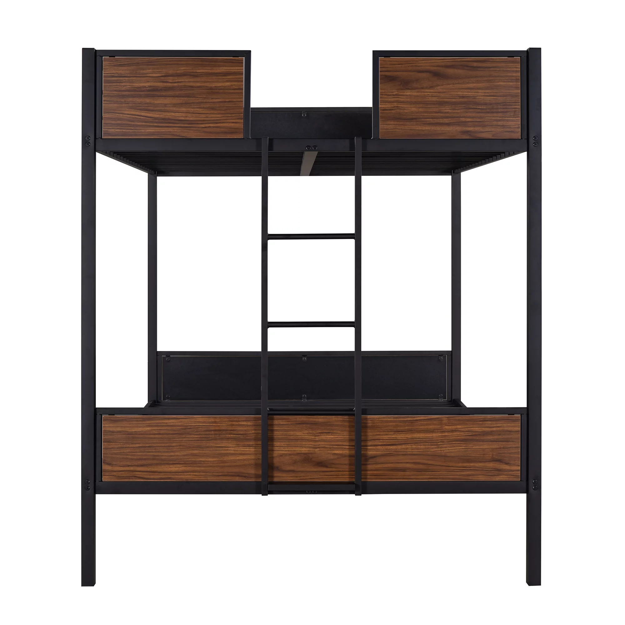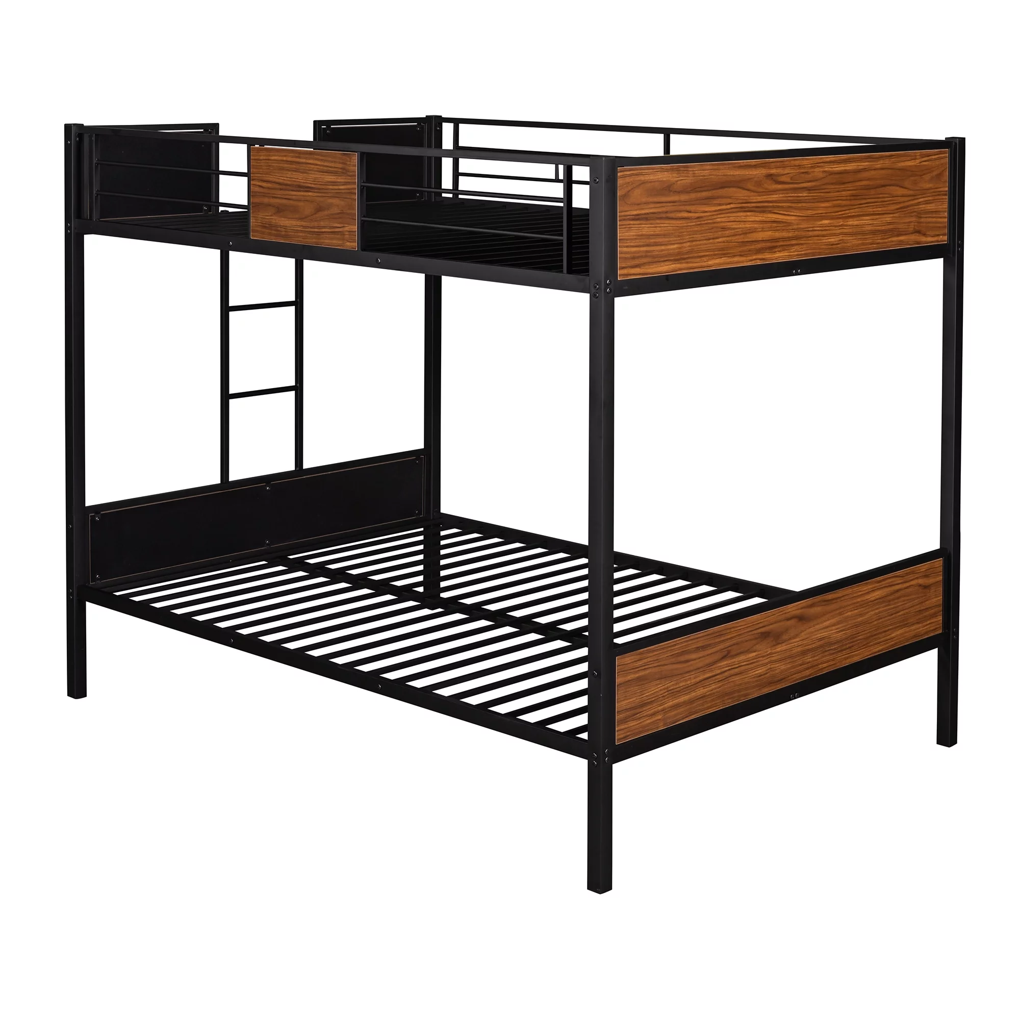Bristol Metal Bunk Bed (Full over Full) in Gunmetal with Guardrails and Ladder Dark Brown