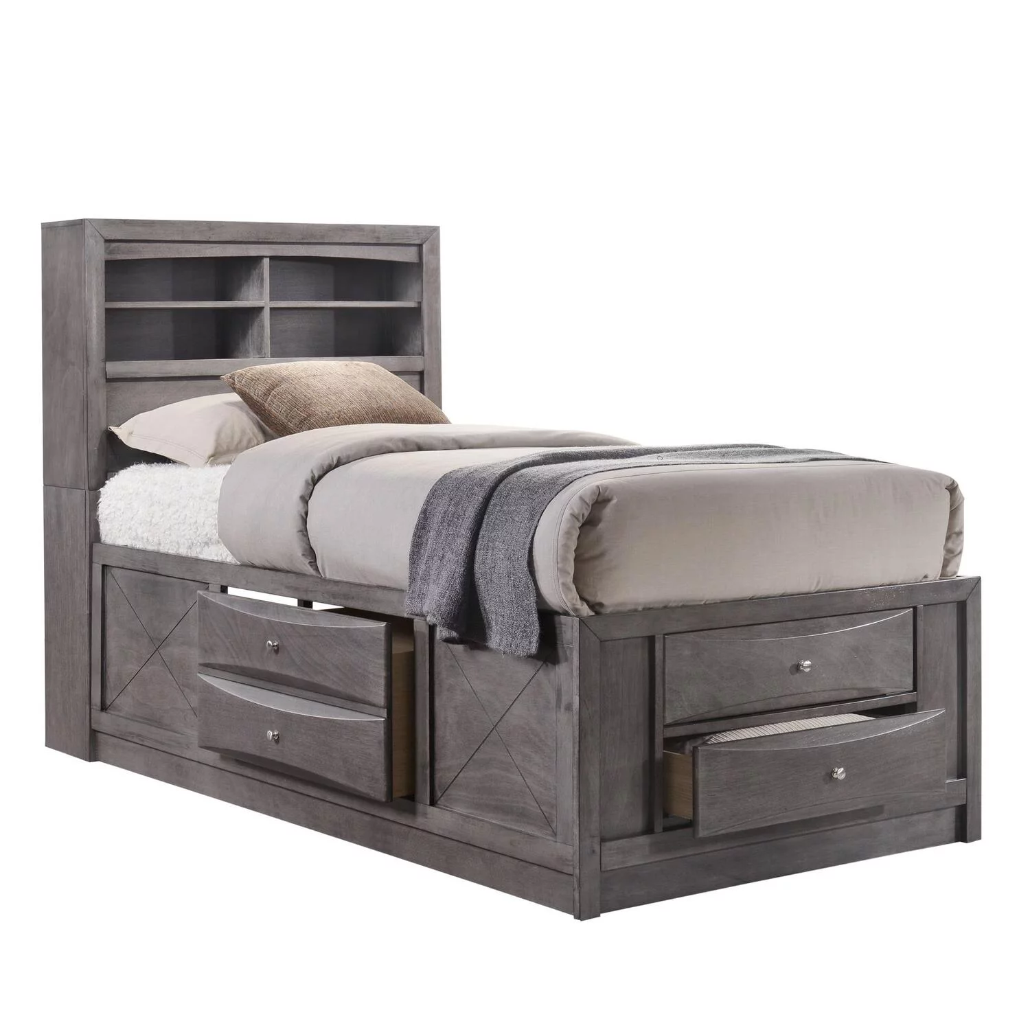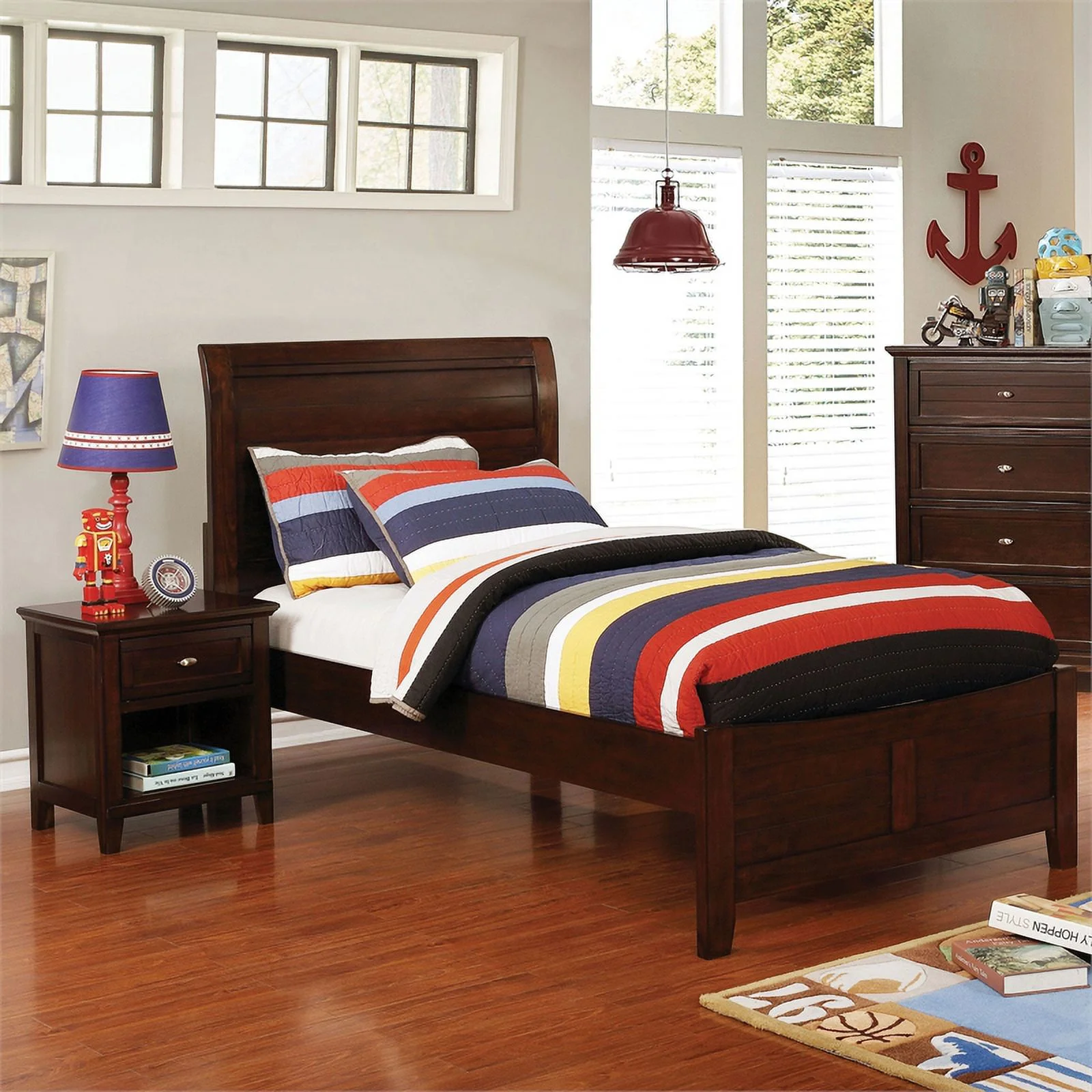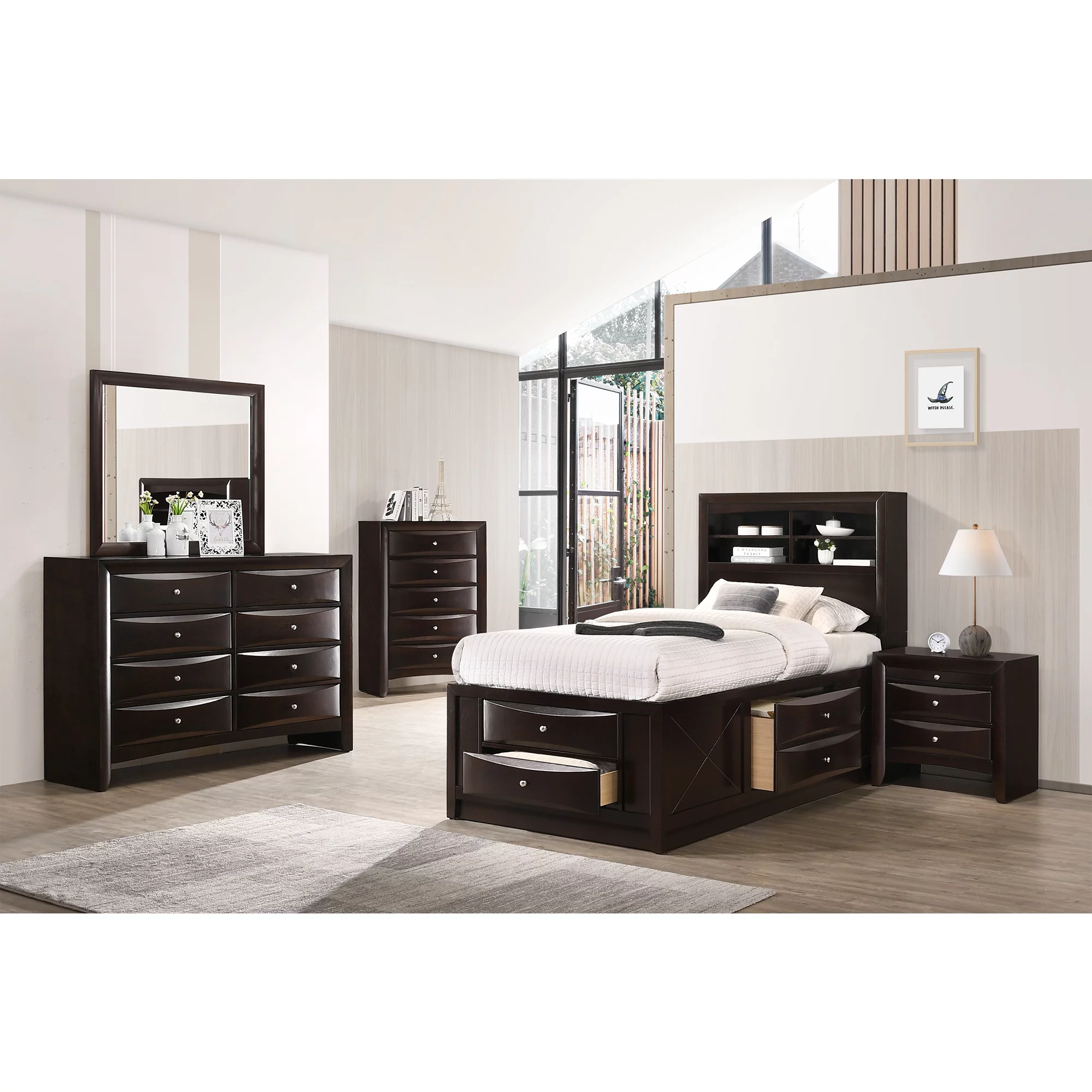 Contemporary 4pc Bedroom Set Twin Bed Nightstand Dresser Mirror Melamine Laminate Rustic Aesthetic Bedroom Furniture