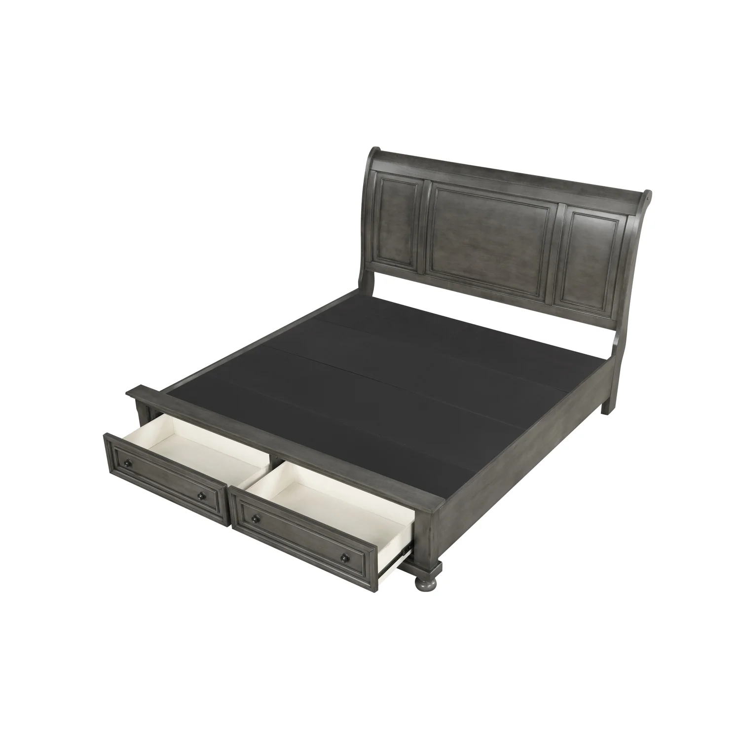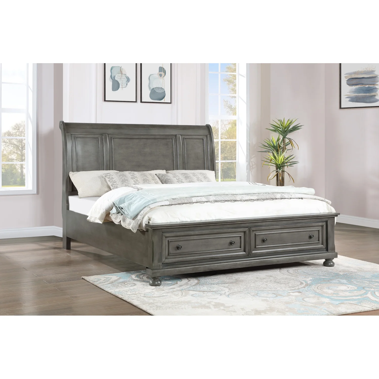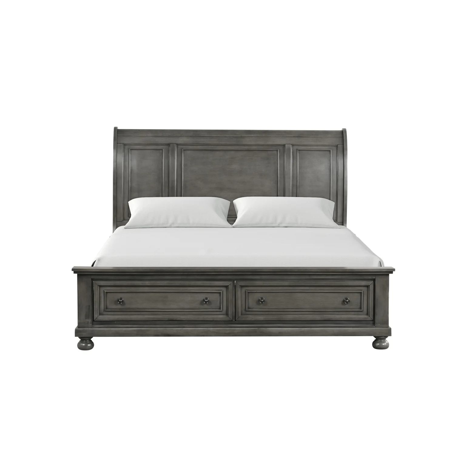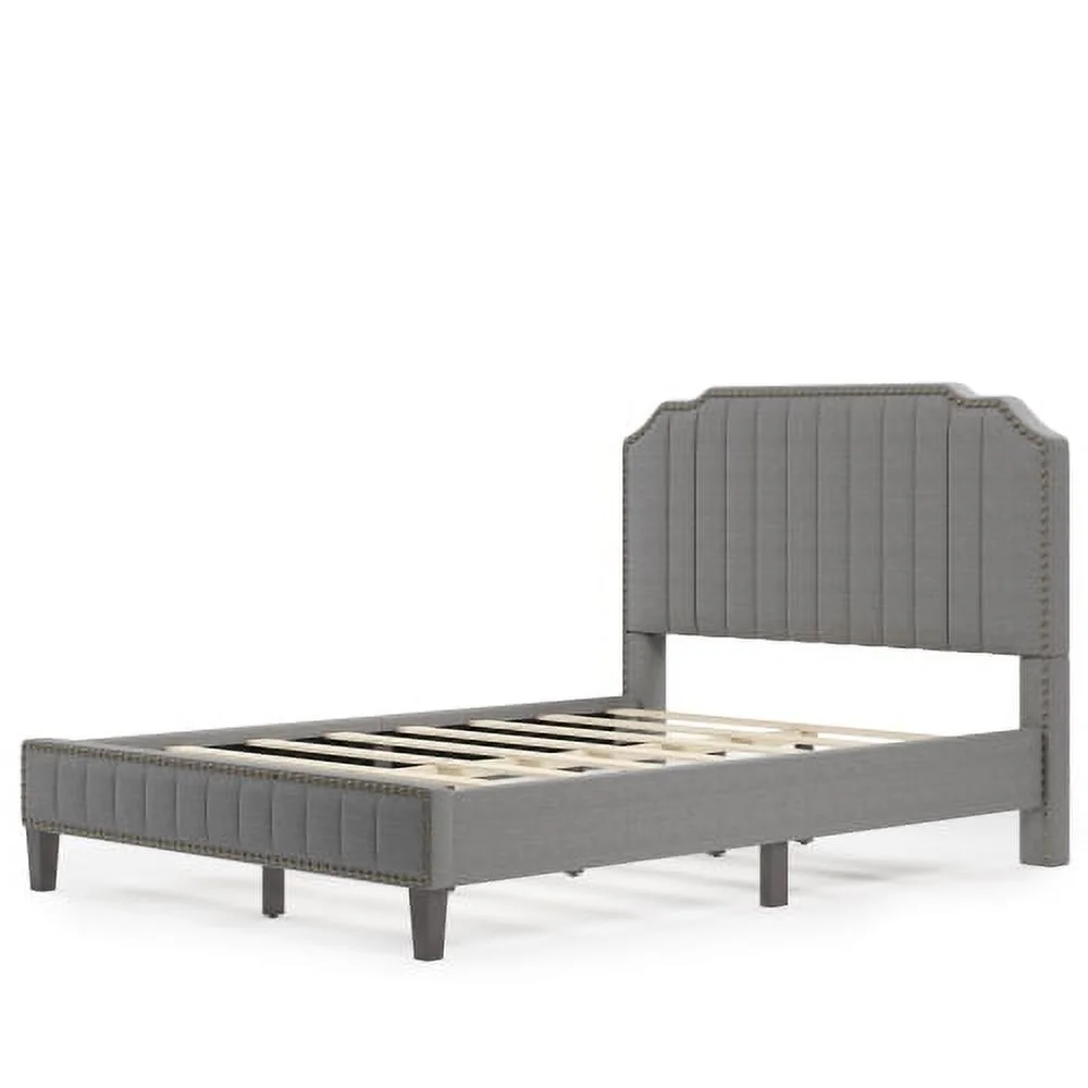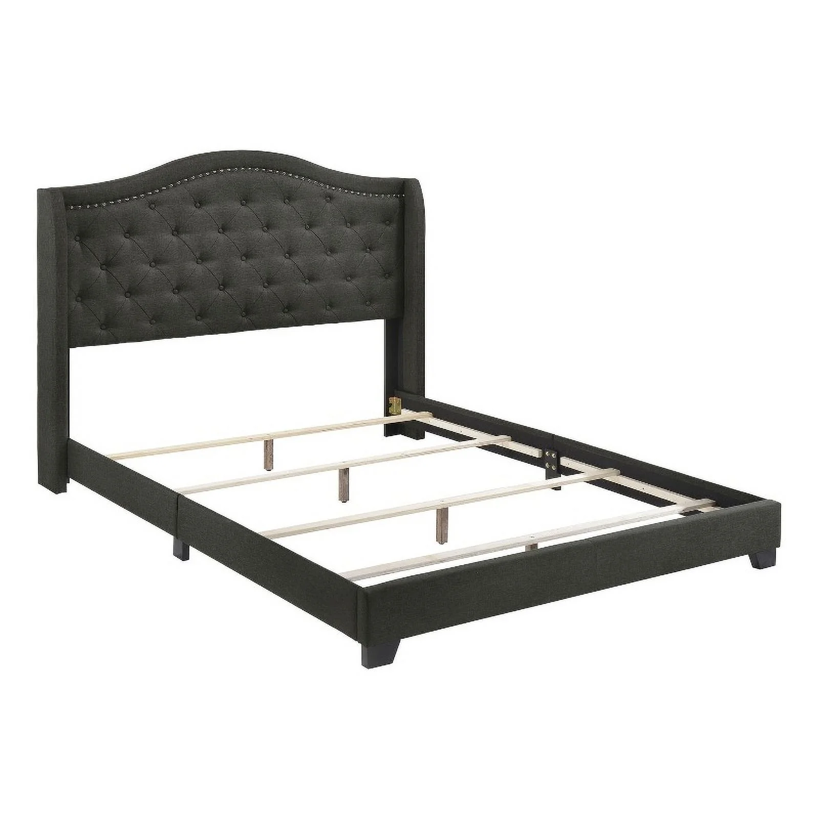 Pemberly Row Transitional Fabric Upholstered Camel Back Eastern King Bed Gray