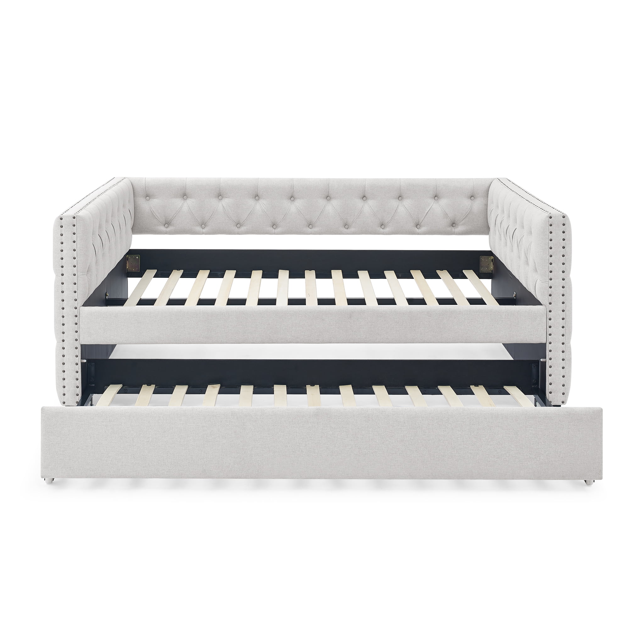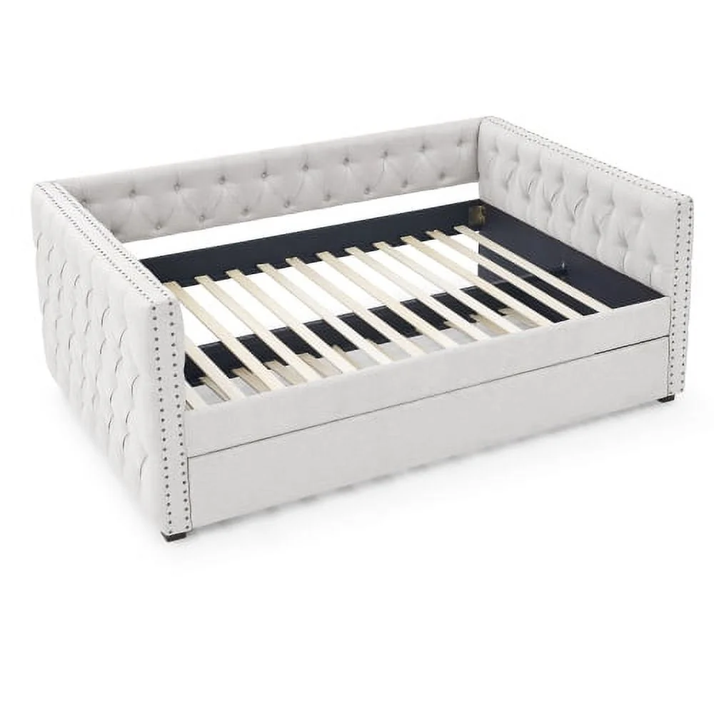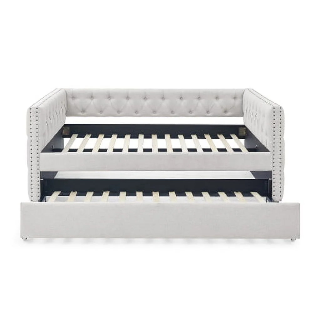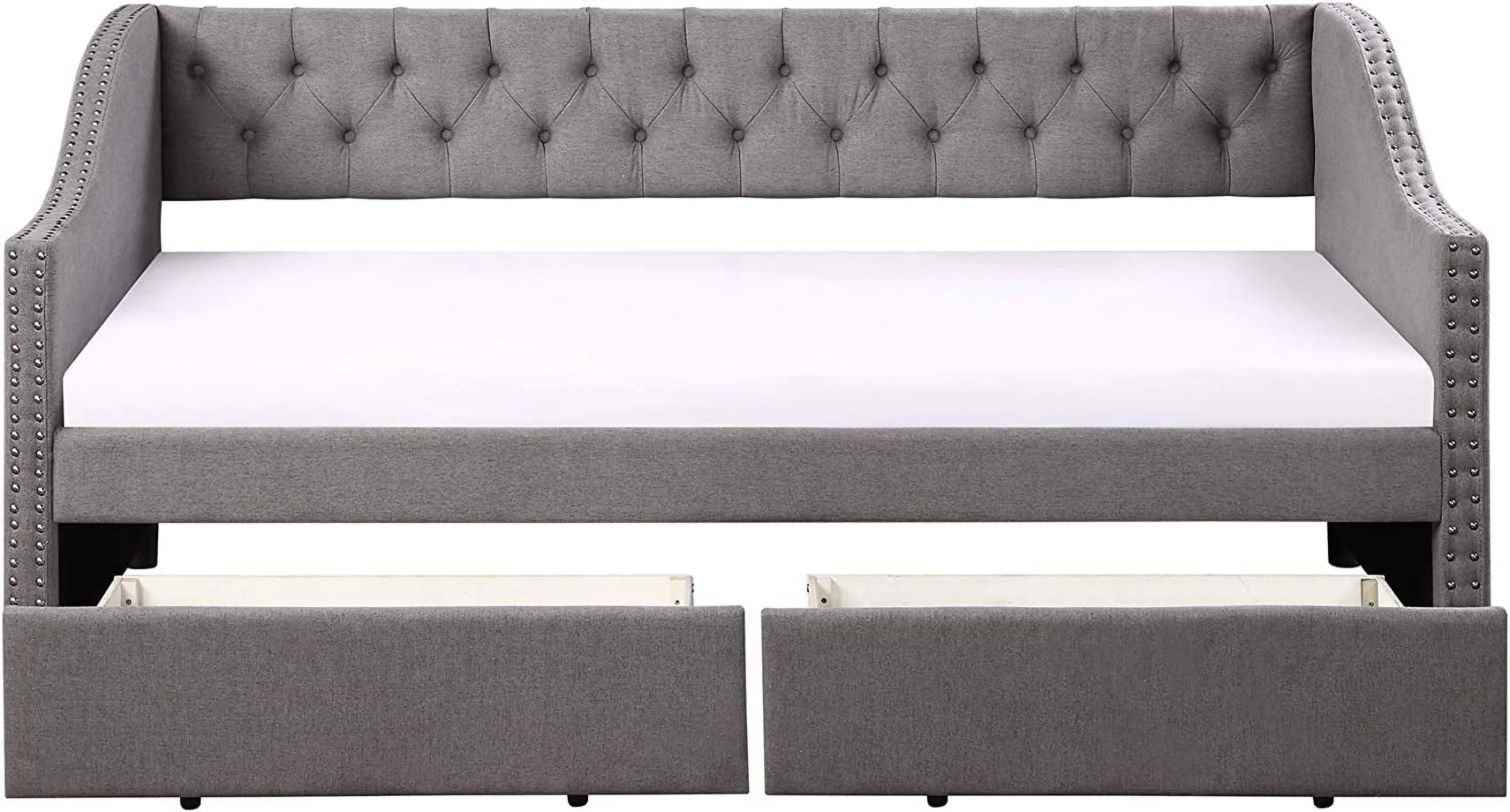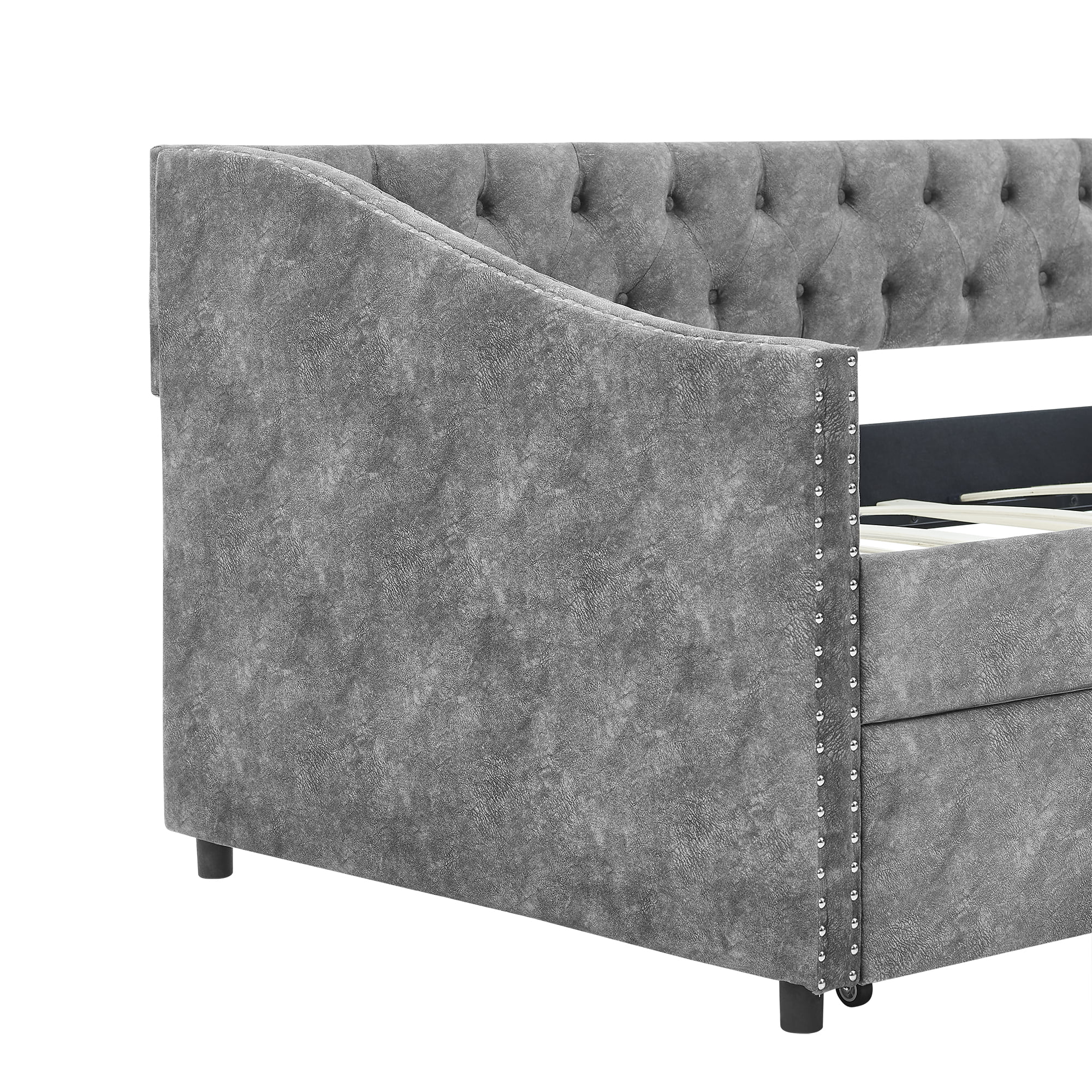 Twin Upholstered Daybed with Drawers and Wood Slat Support Sofa Bed Tufted Daybed Frame with Button Back for Living Room