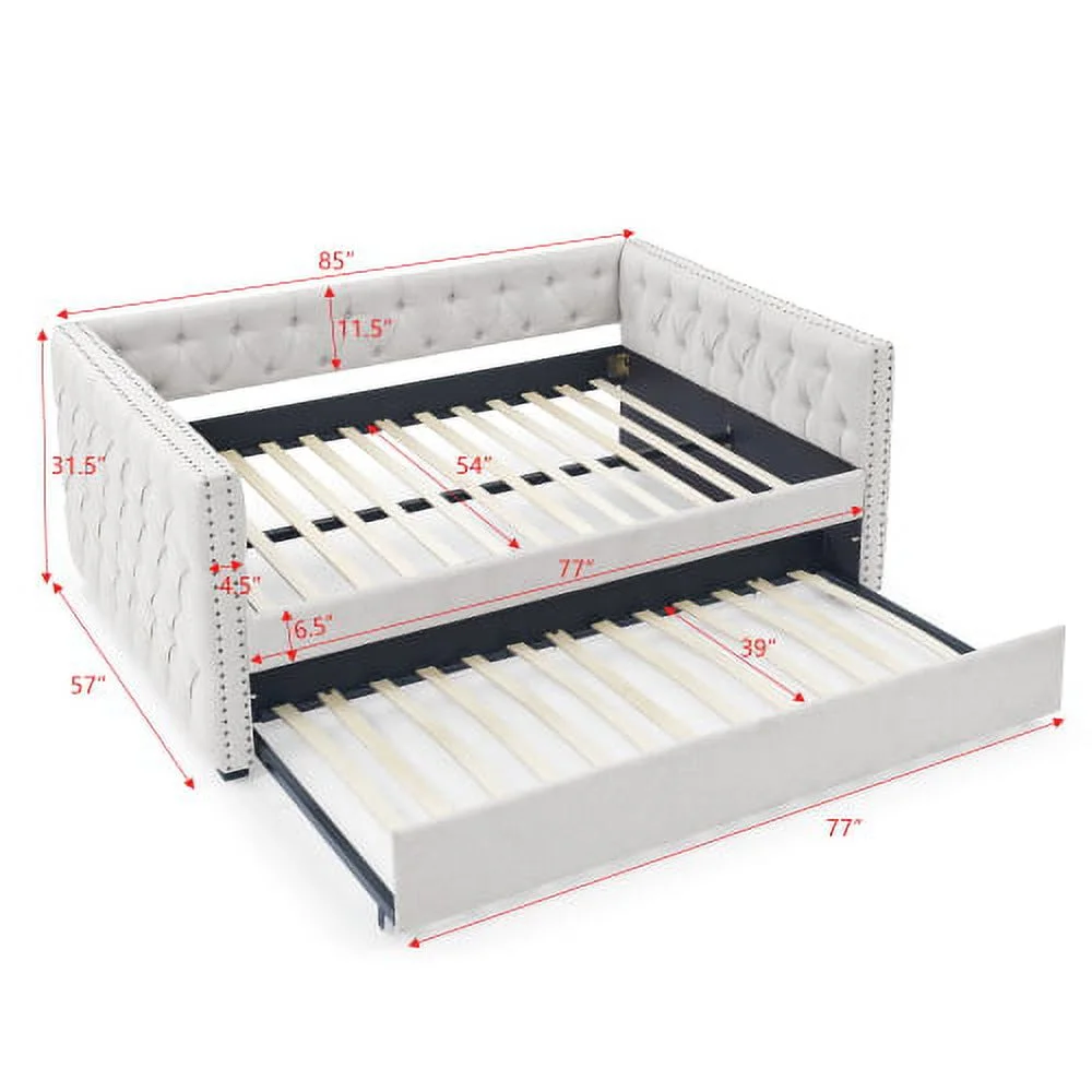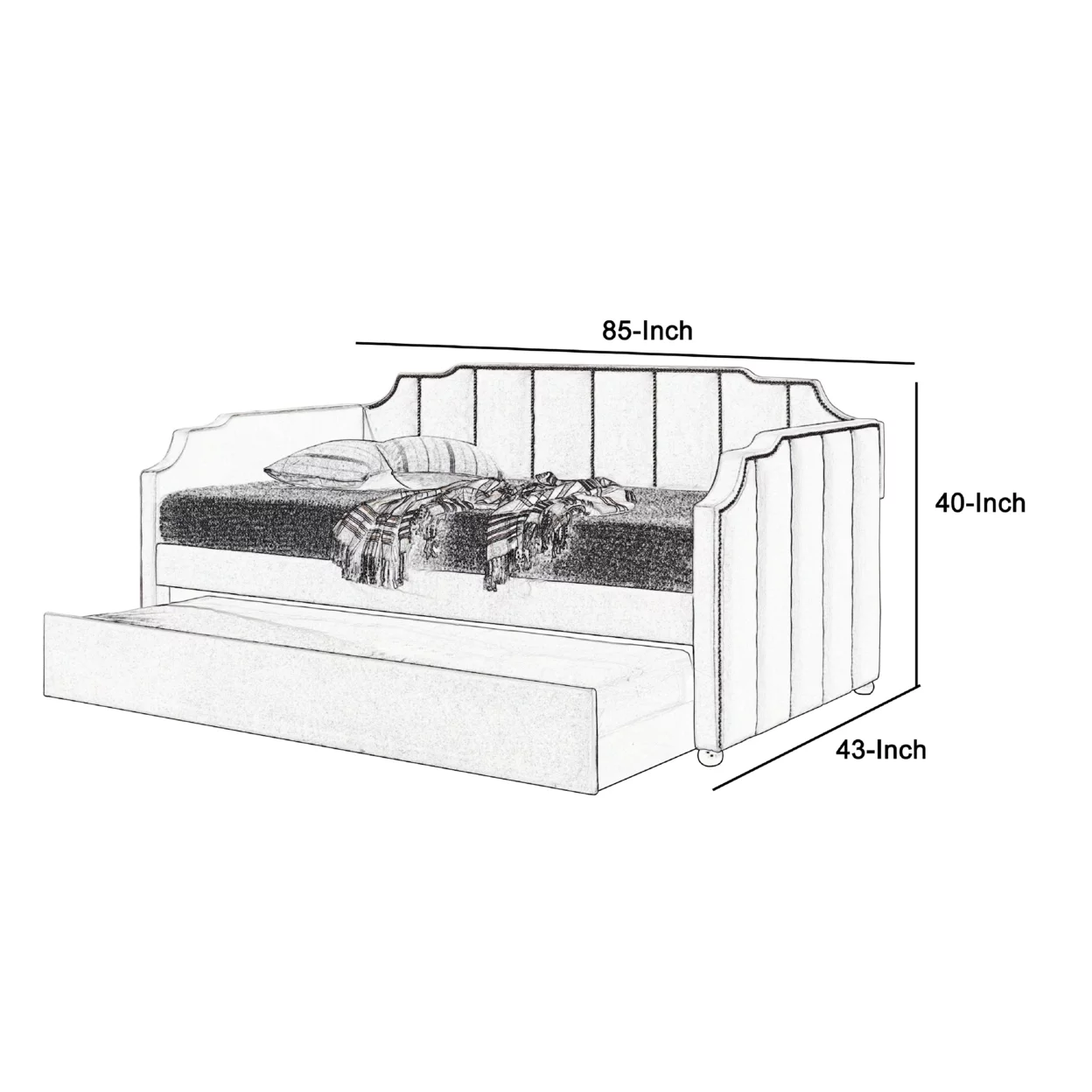 84 x 42 x 39 in. Lianna Daybed & Trundle, Fog Fabric - Full & Twin Size