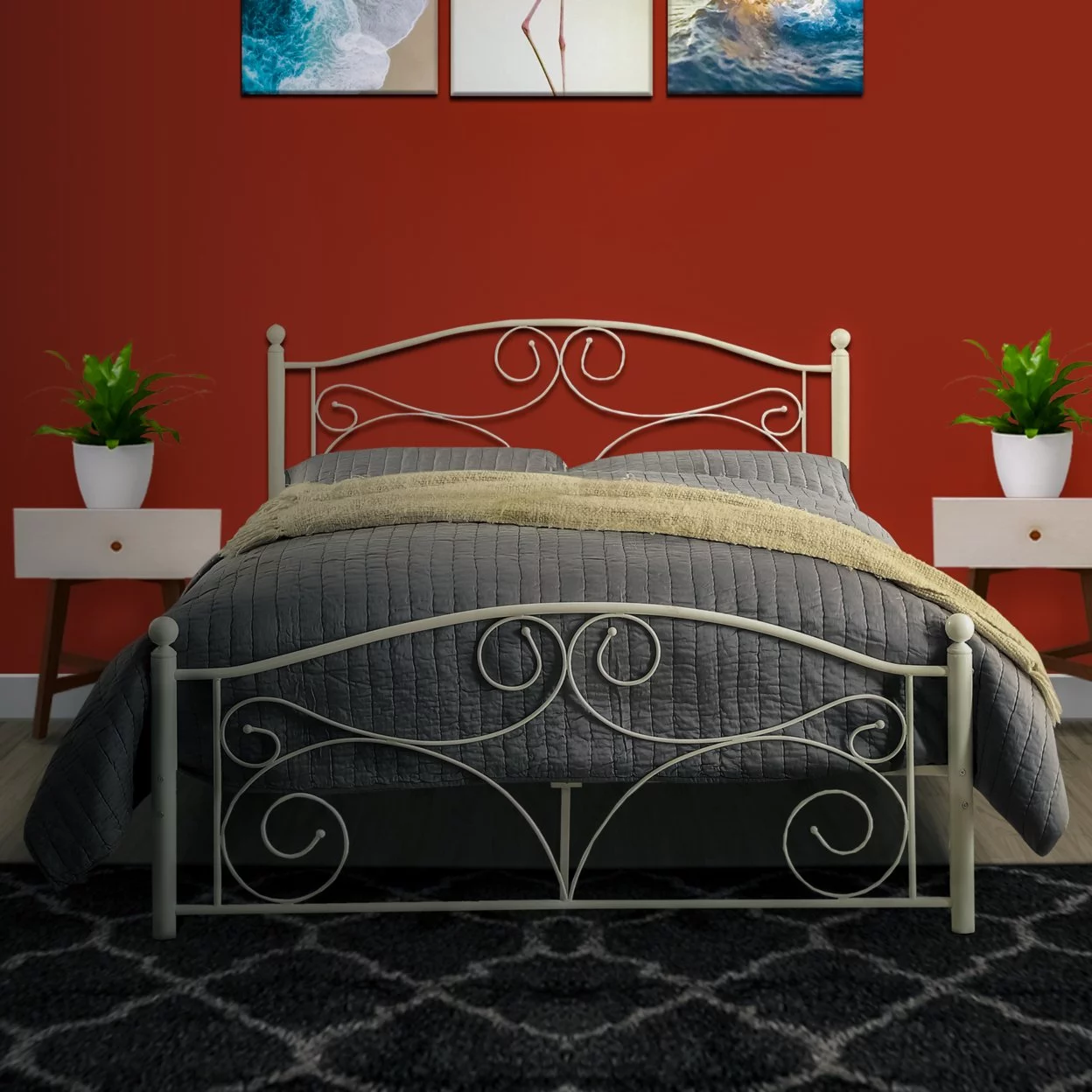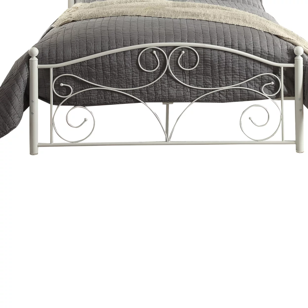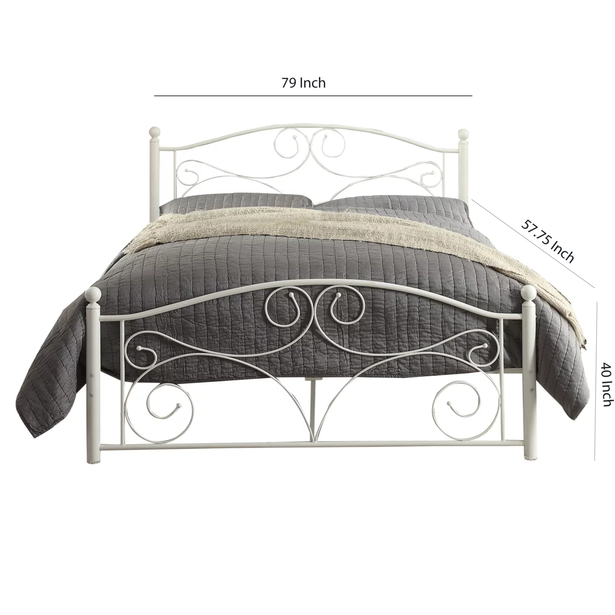 Metal Full Size Platform Bed with Scrollwork Details, White- Saltoro Sherpi