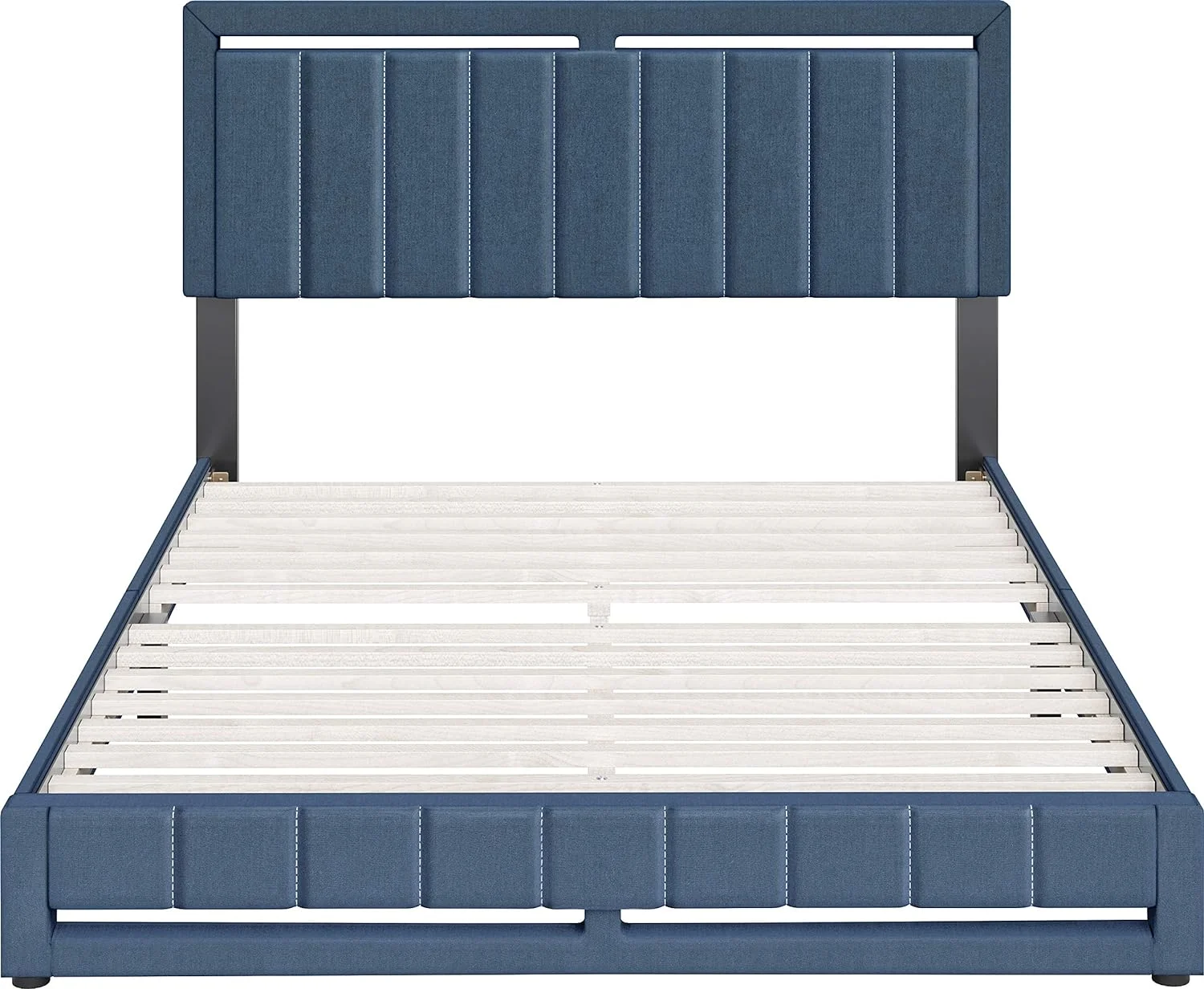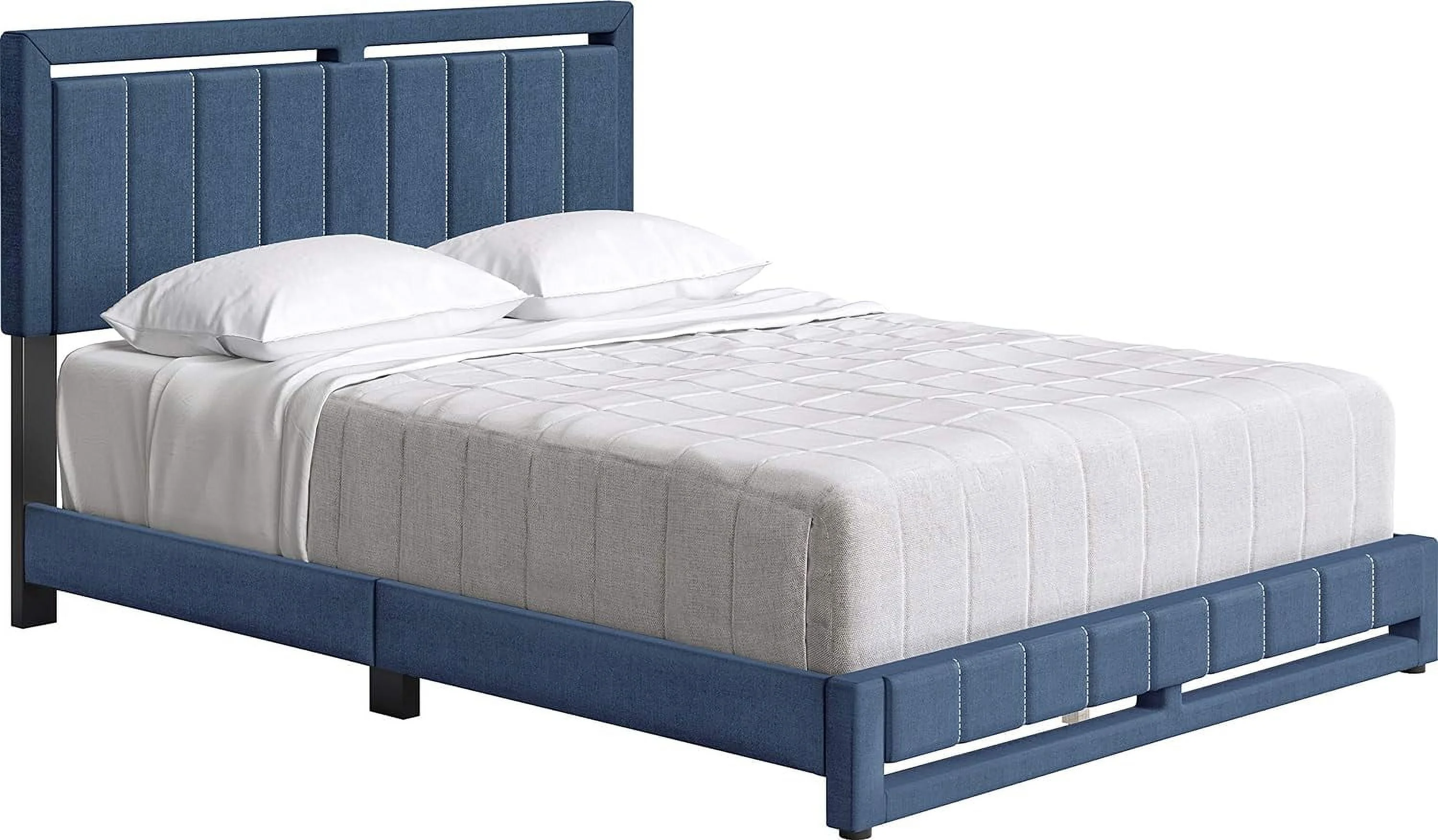 Queen Size Linen Upholstered Bed Platform Bed Frame, Wood Slat Support