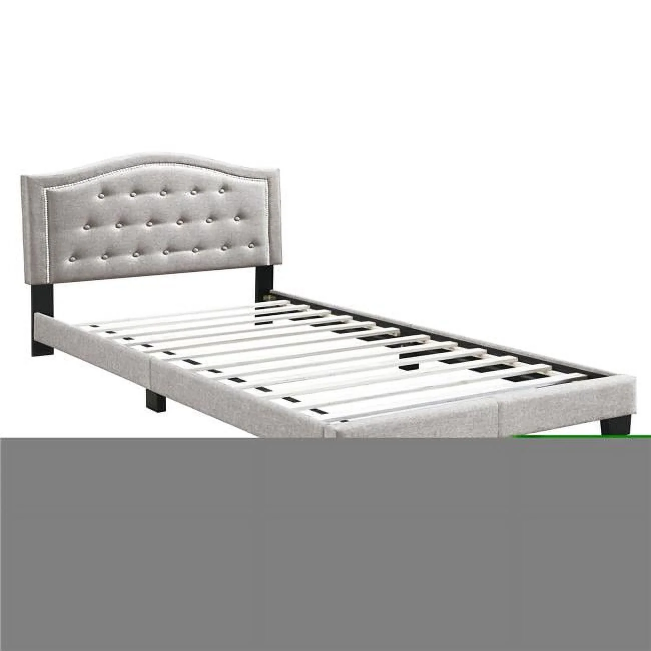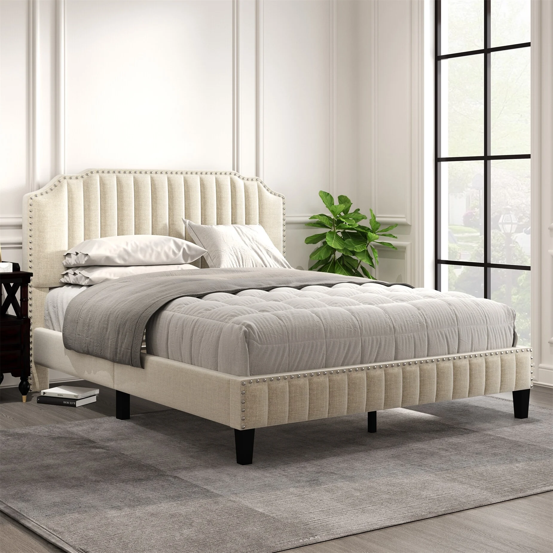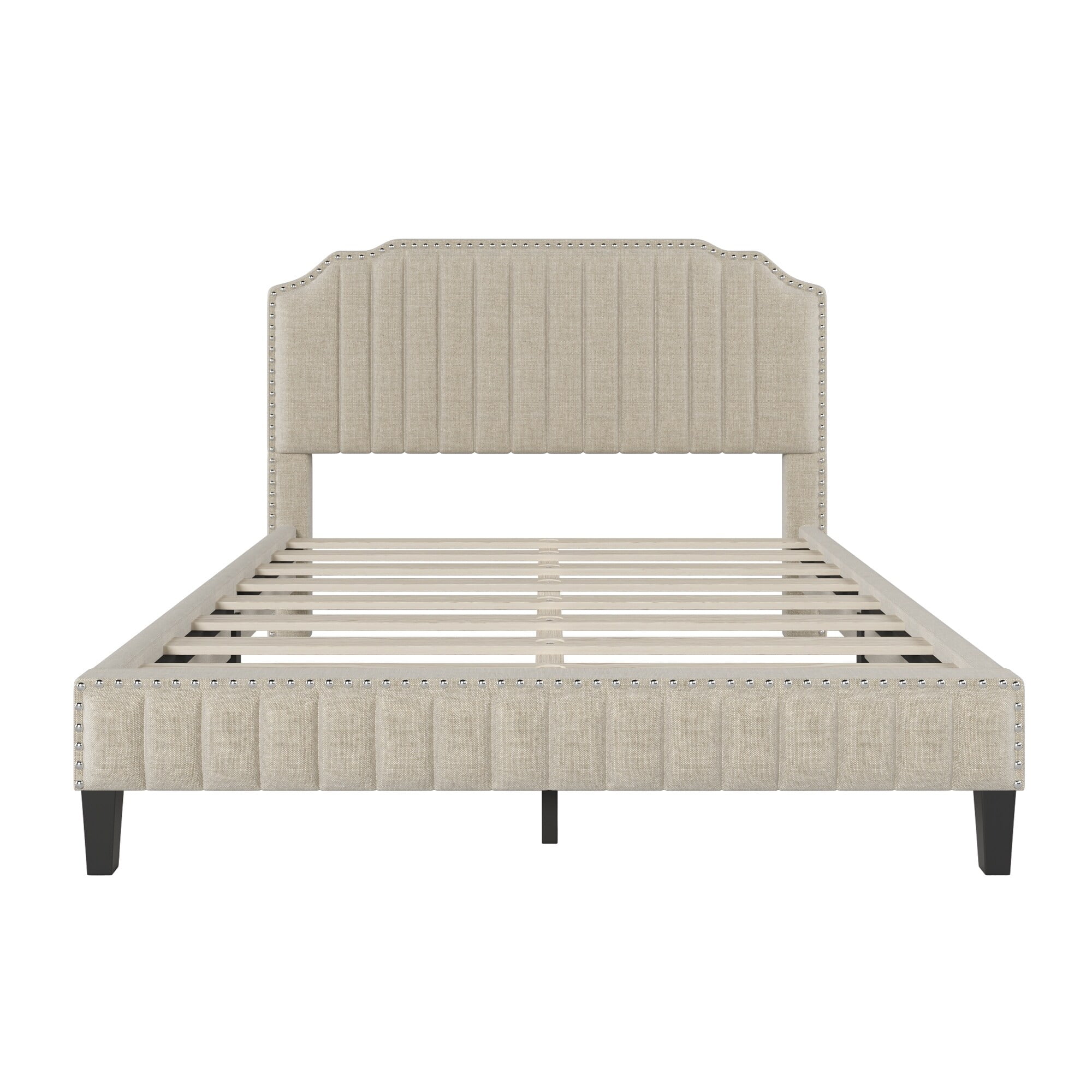 Linen Curved Upholstered Platform Bed with Solid Wood Frame&Nailhead Trim (Full)