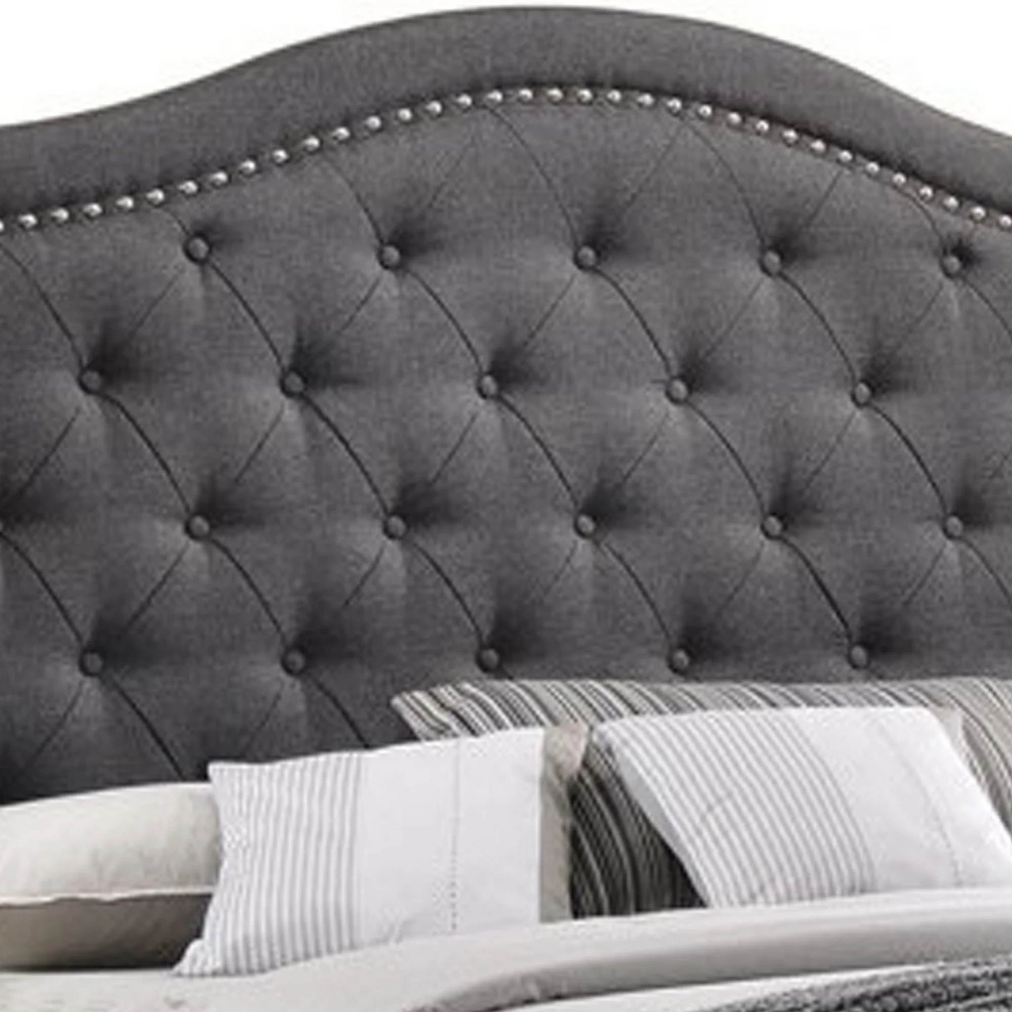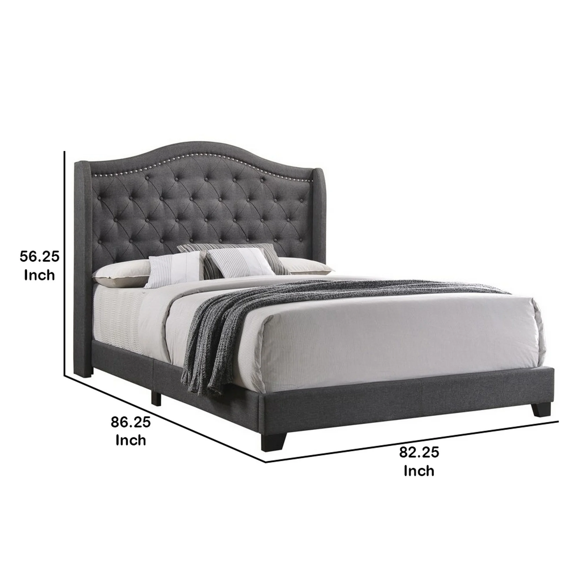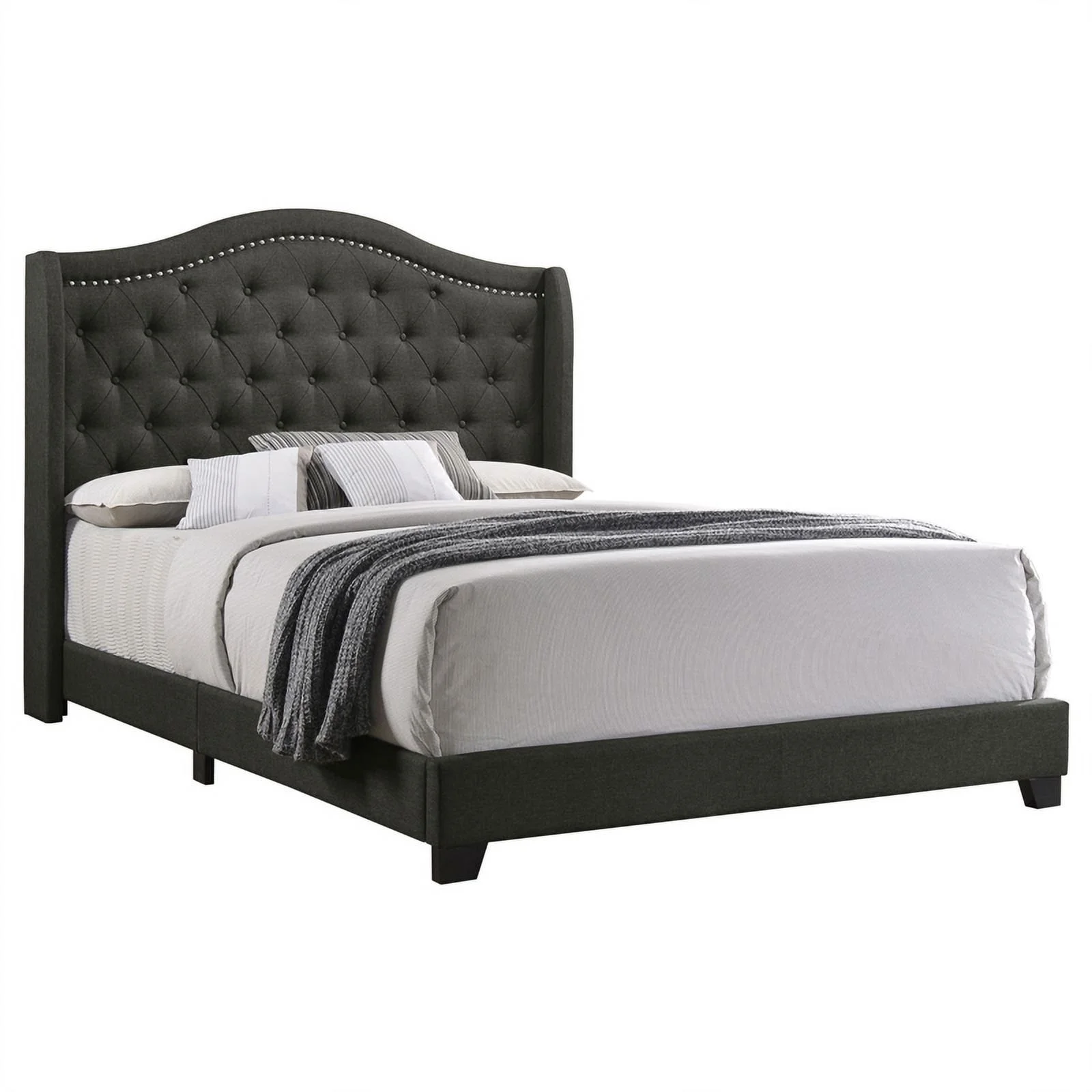 Pemberly Row Transitional Fabric Upholstered Camel Back Queen Bed Gray