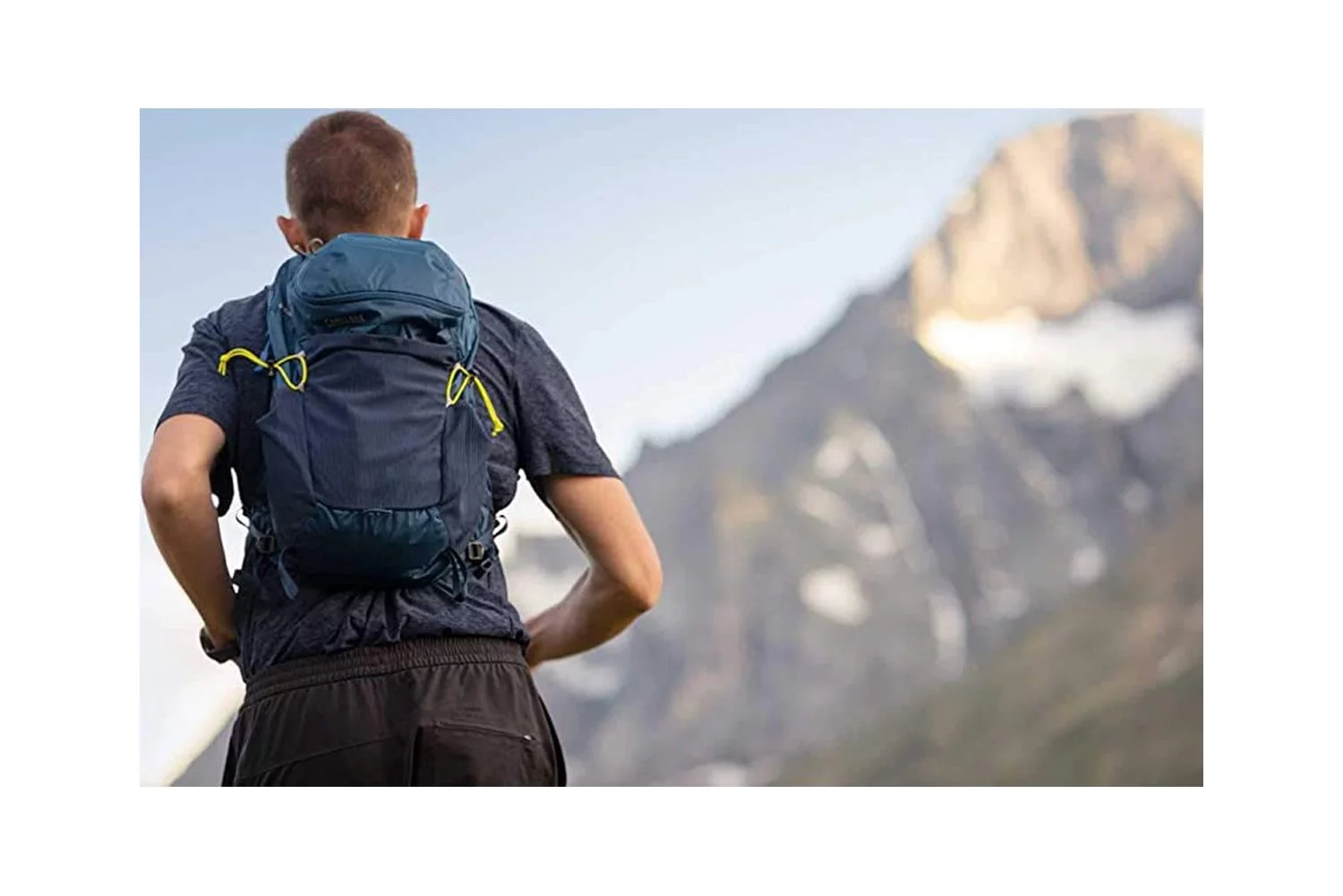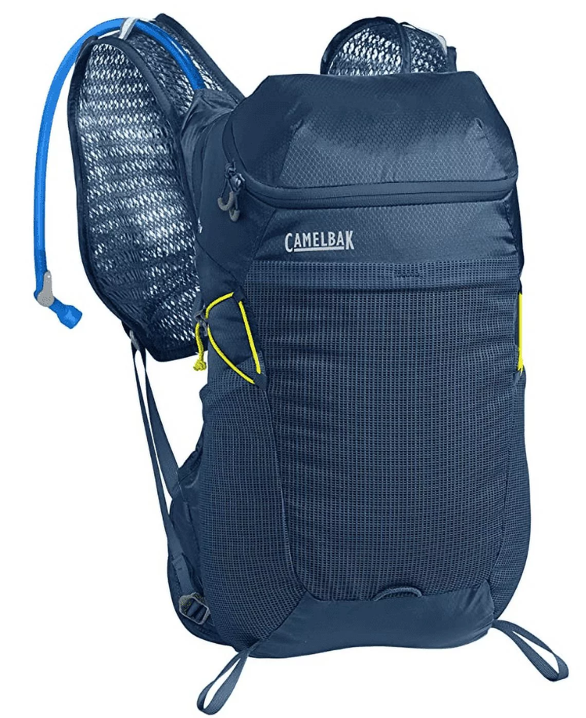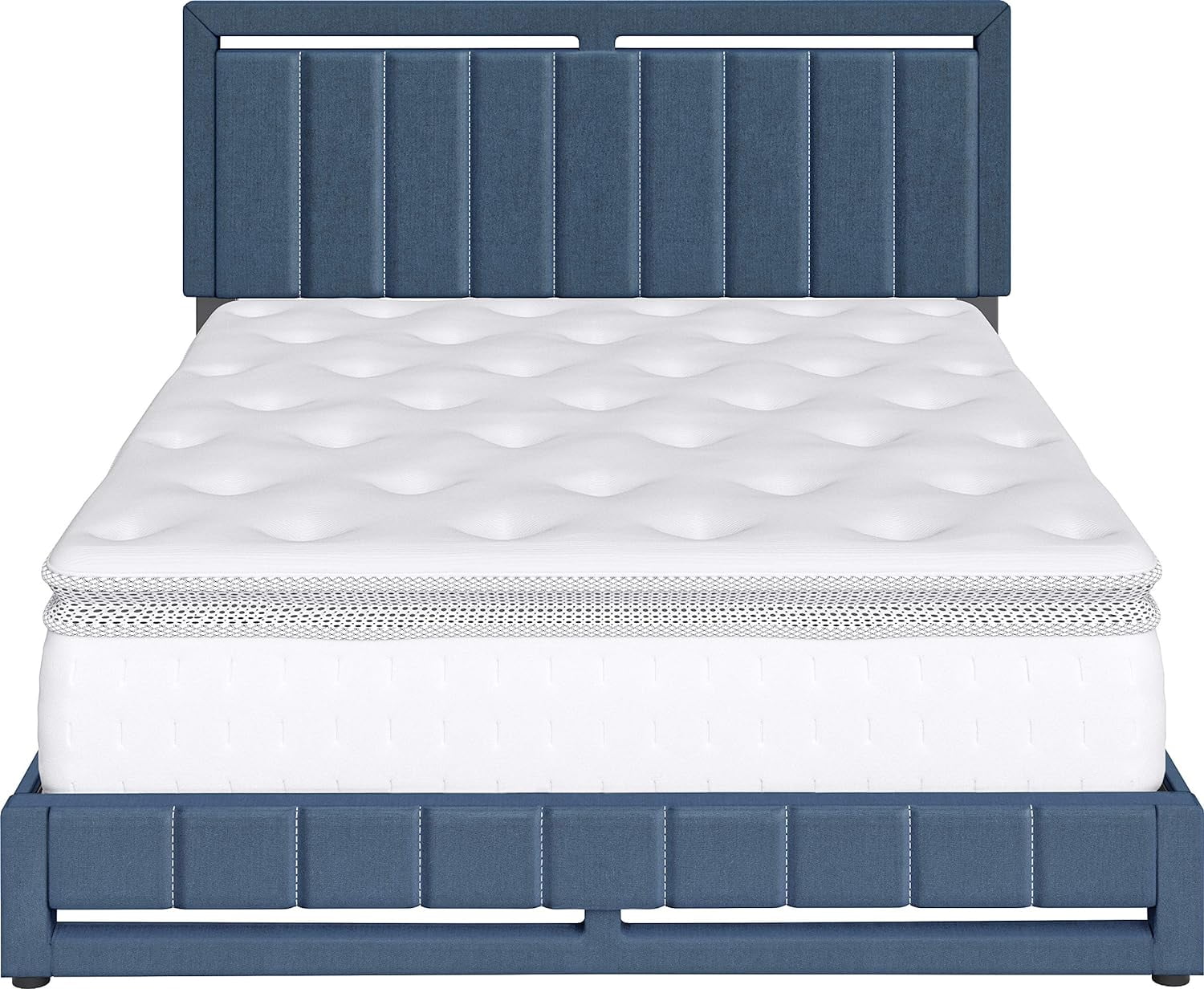 Fabric Upholstered Wooden Demi Wing Queen Bed with Camelback Headboard,Blue- Saltoro Sherpi